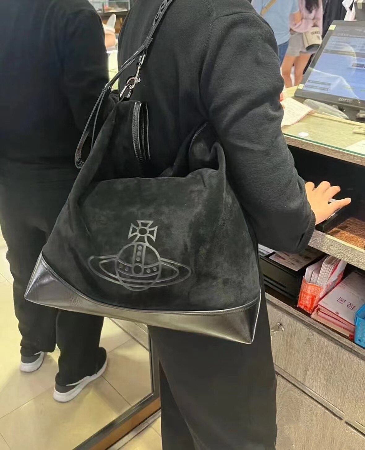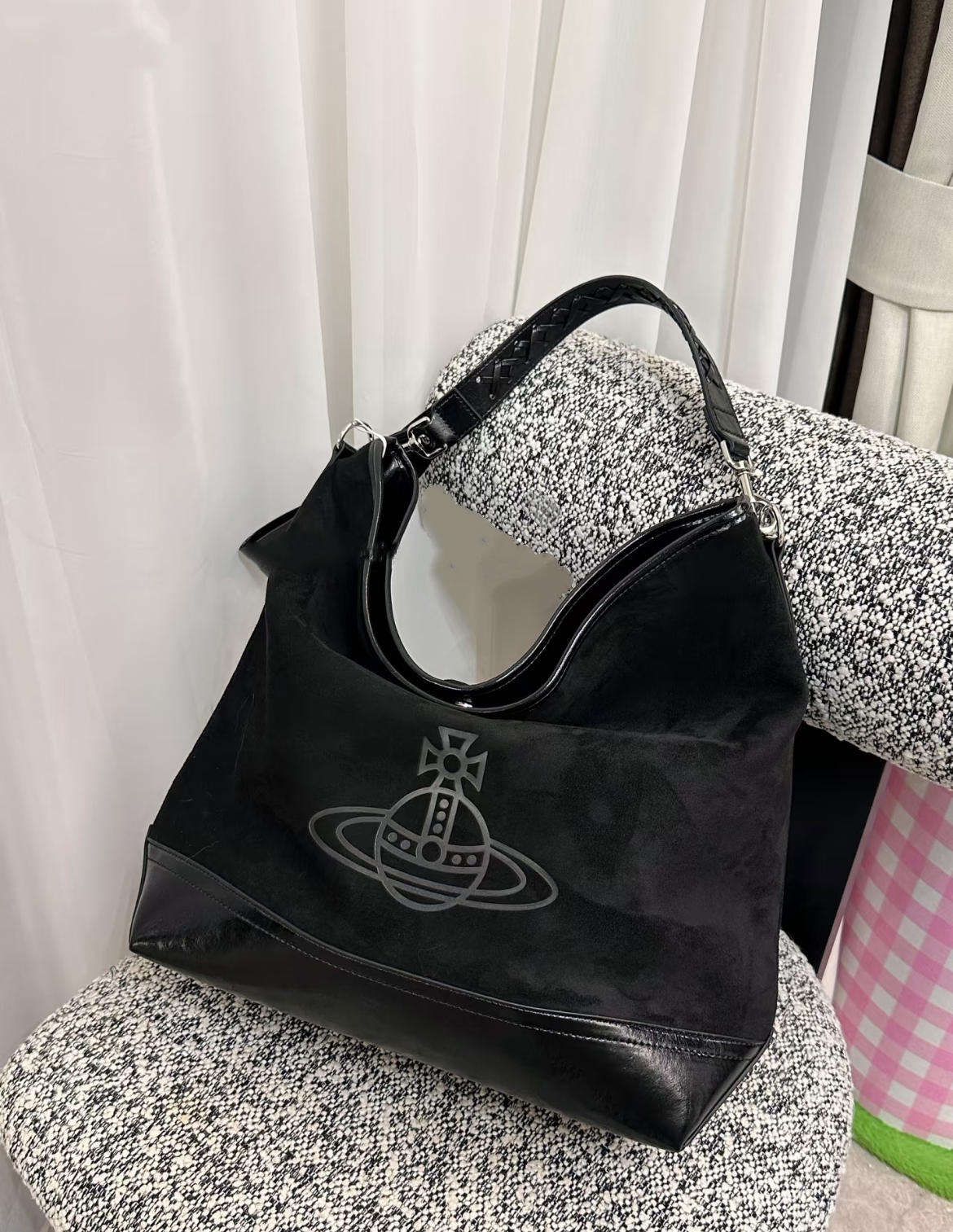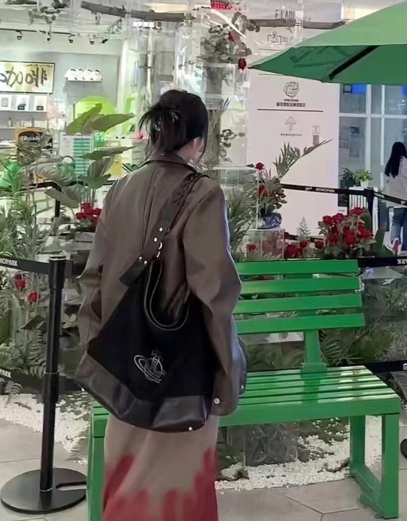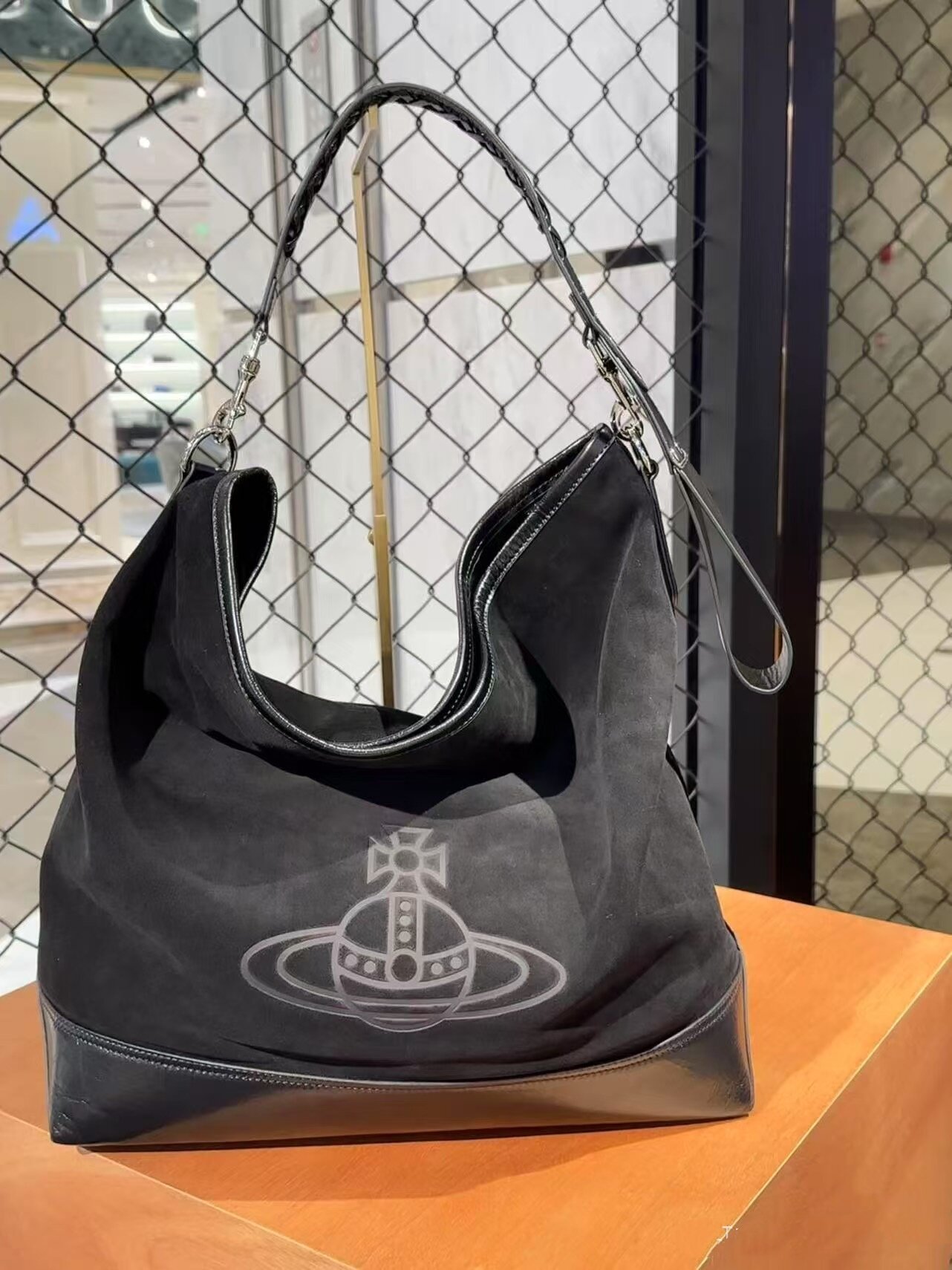 網紅同款麂皮絨印花hobo流浪包復古大容量通勤托特包單肩腋下包女