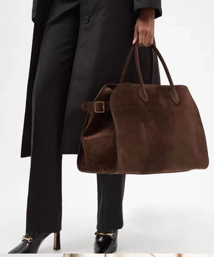 新款row風包包margaux15手提包牛皮托特包旅行包麂皮單肩包高級感