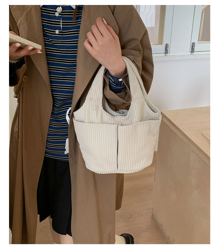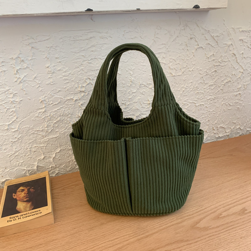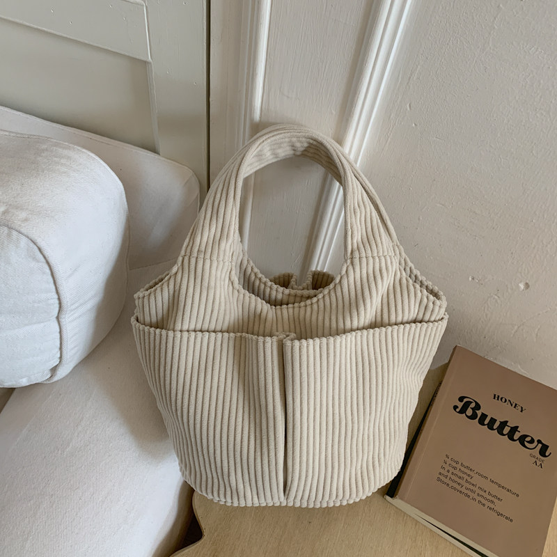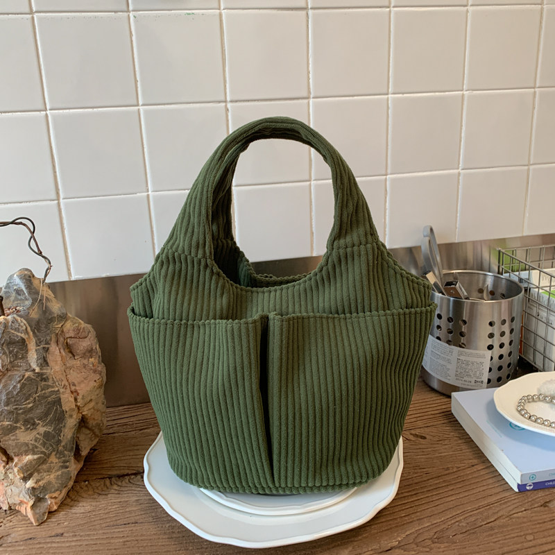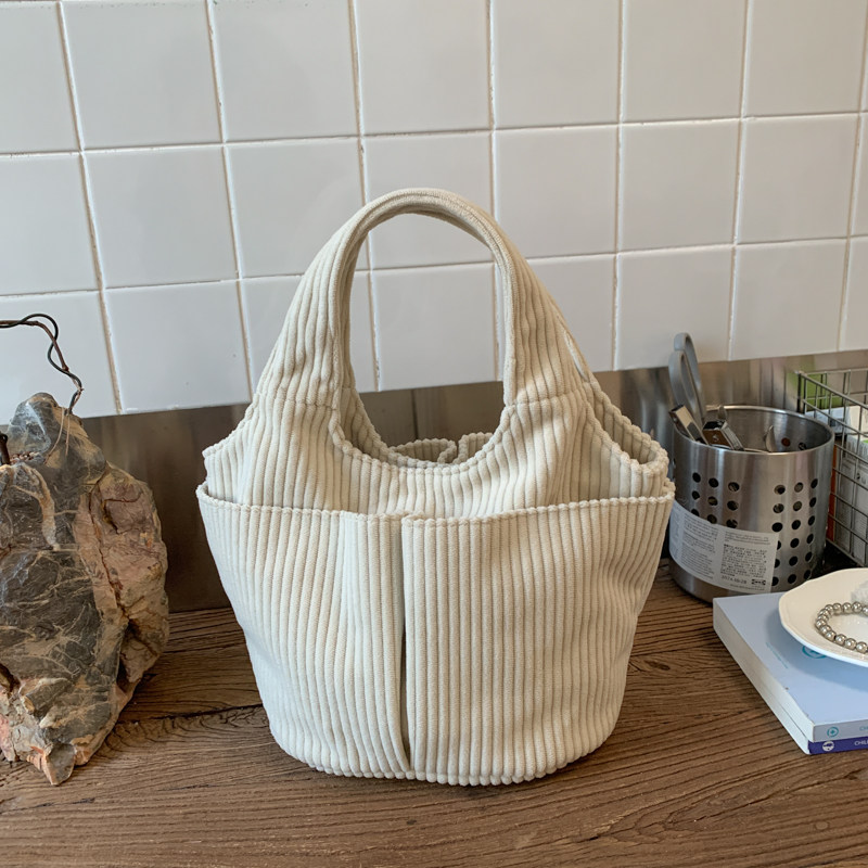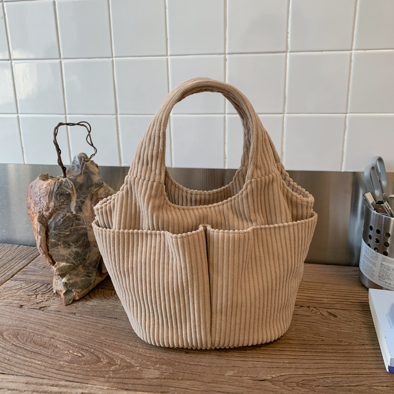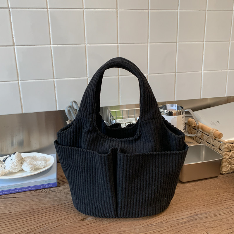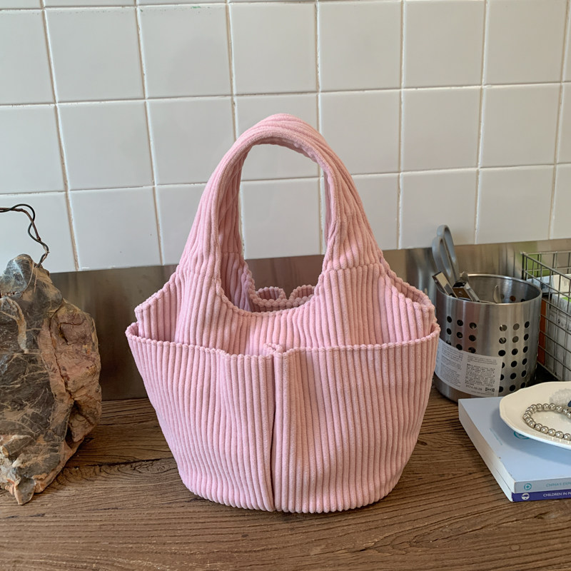 秋冬季超火燈芯絨手提水桶包女外出雜物輕便小拎包上班飯盒便當包