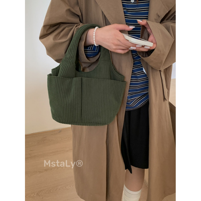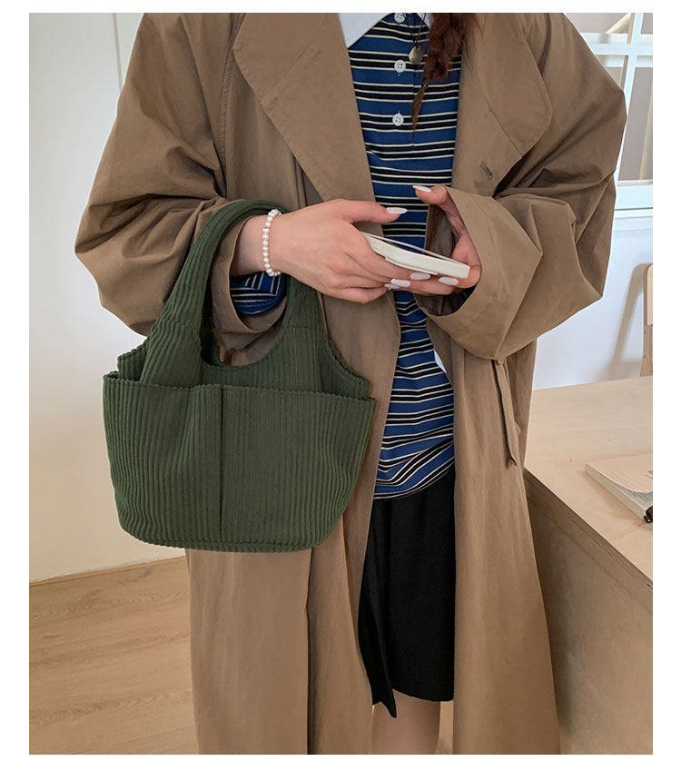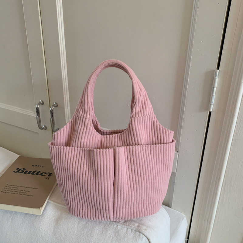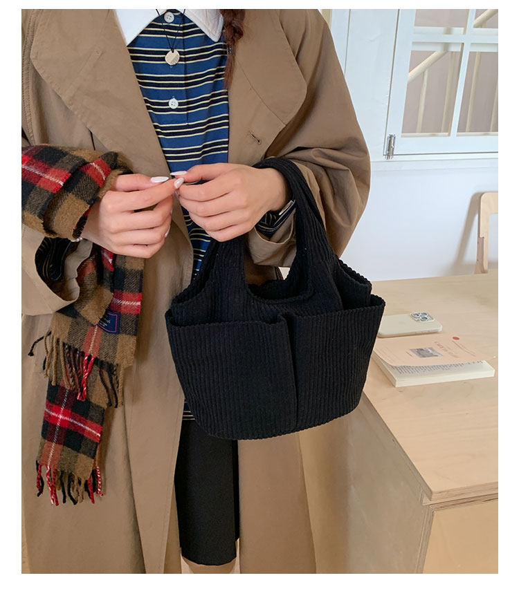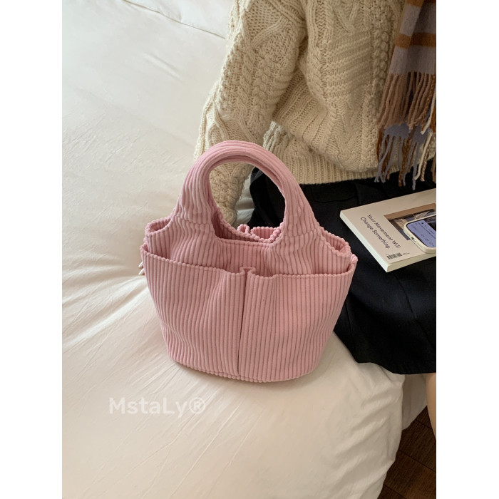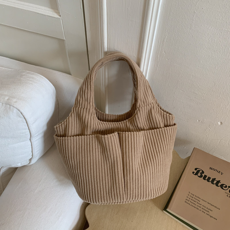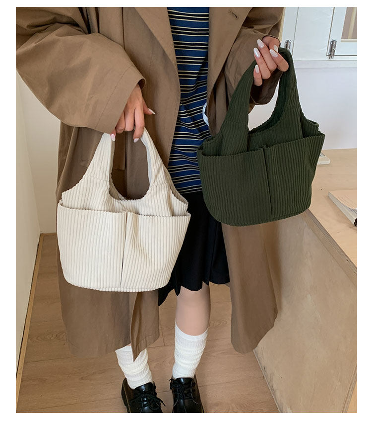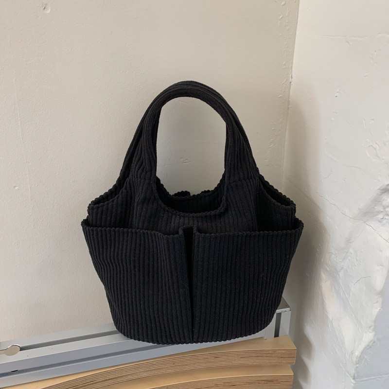秋冬季超火燈芯絨手提水桶包女外出雜物輕便小拎包上班飯盒便當包
