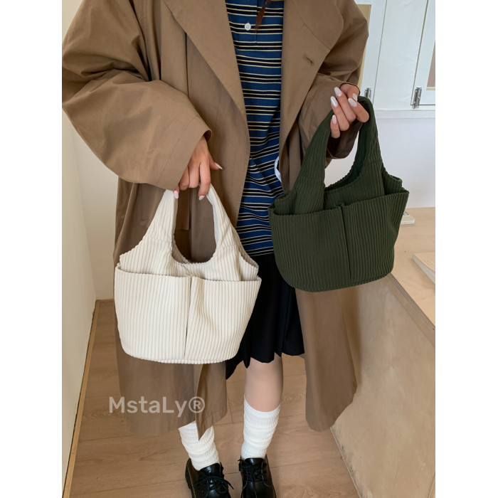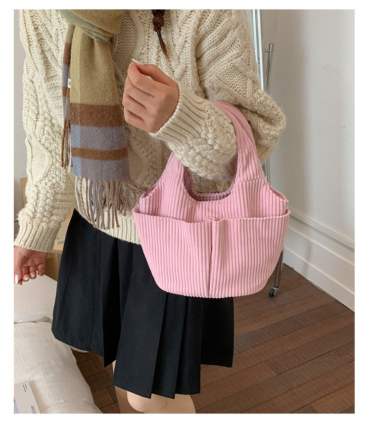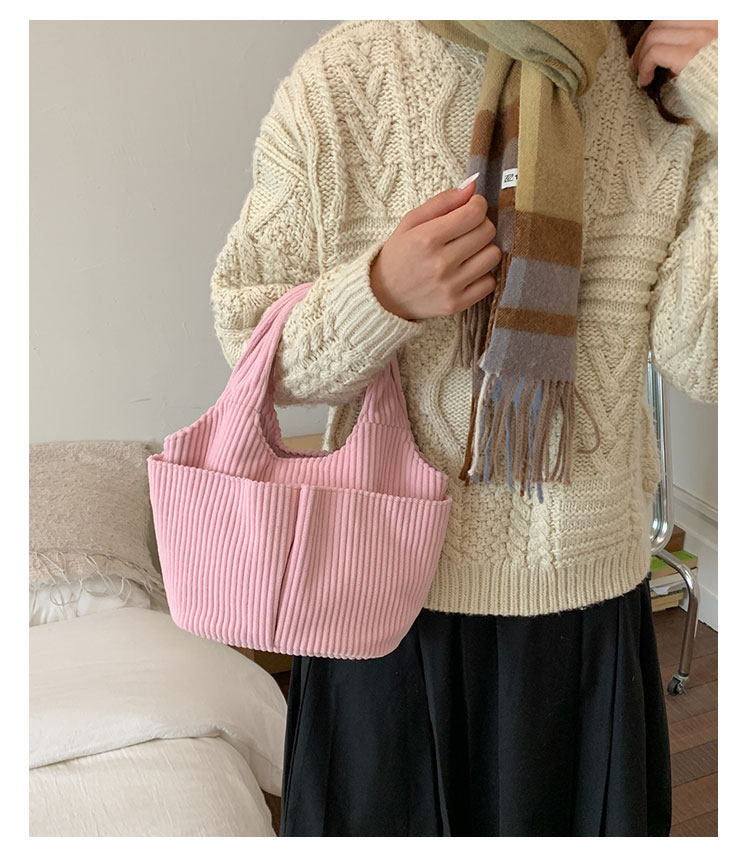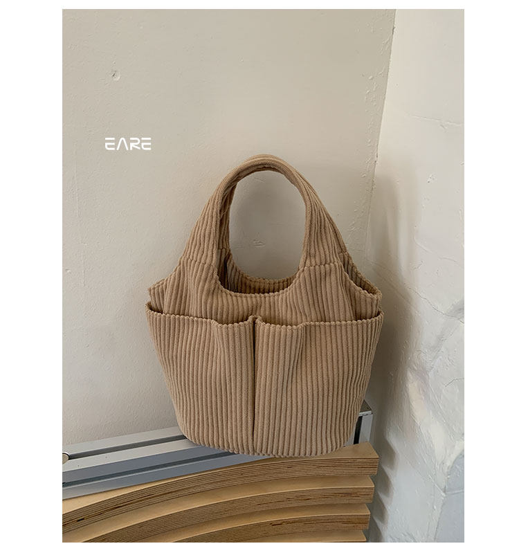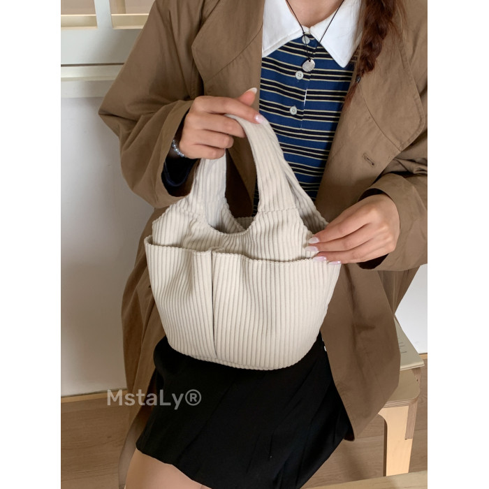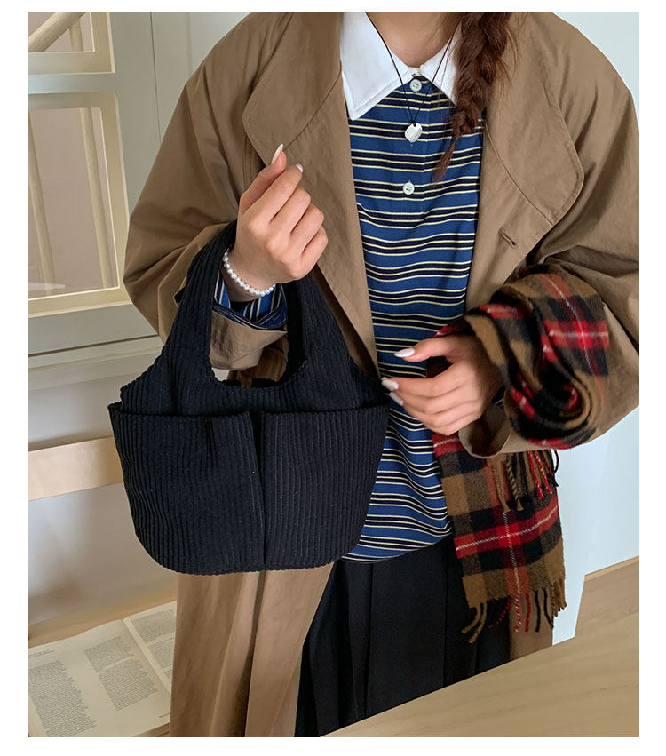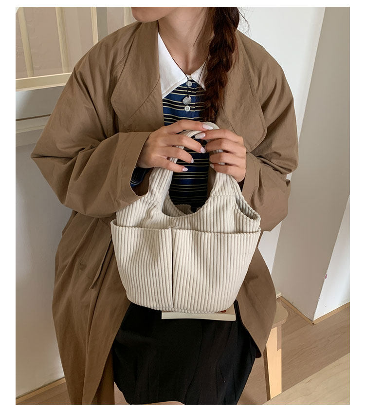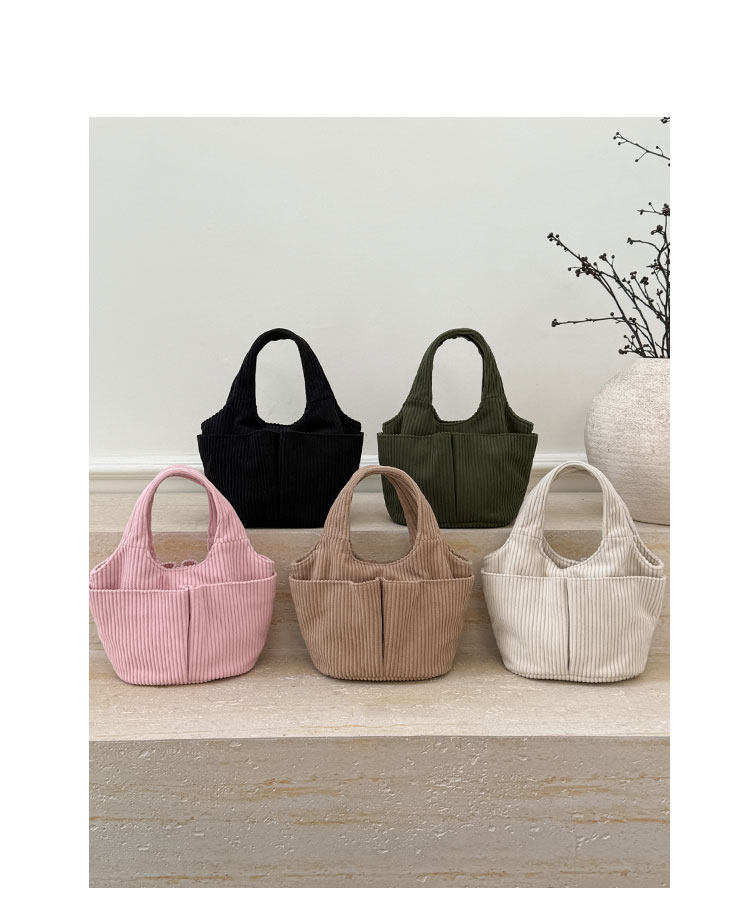 秋冬季超火燈芯絨手提水桶包女外出雜物輕便小拎包上班飯盒便當包