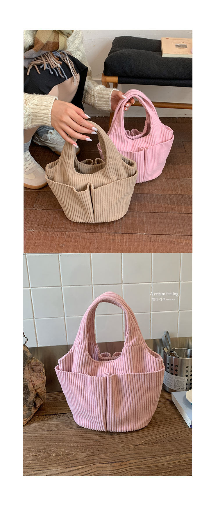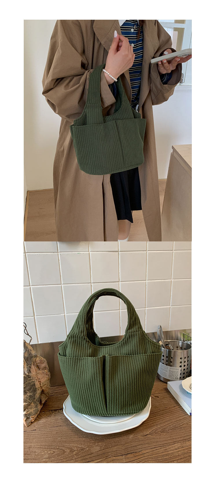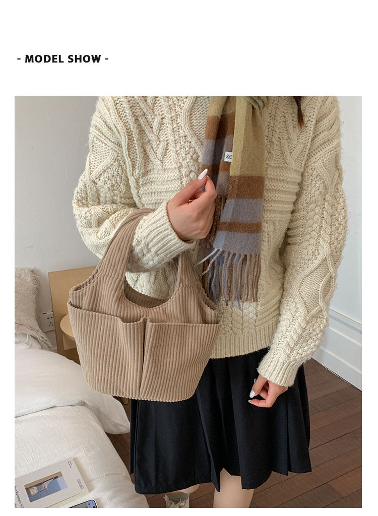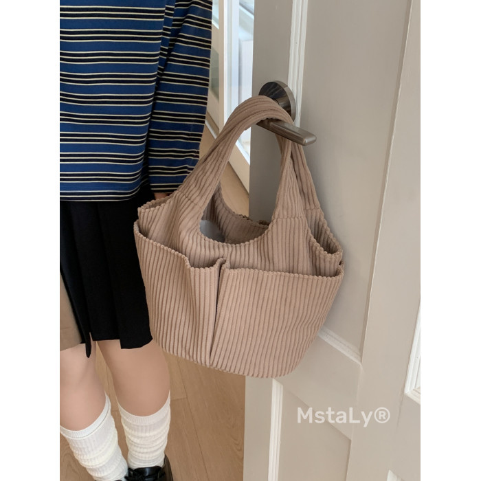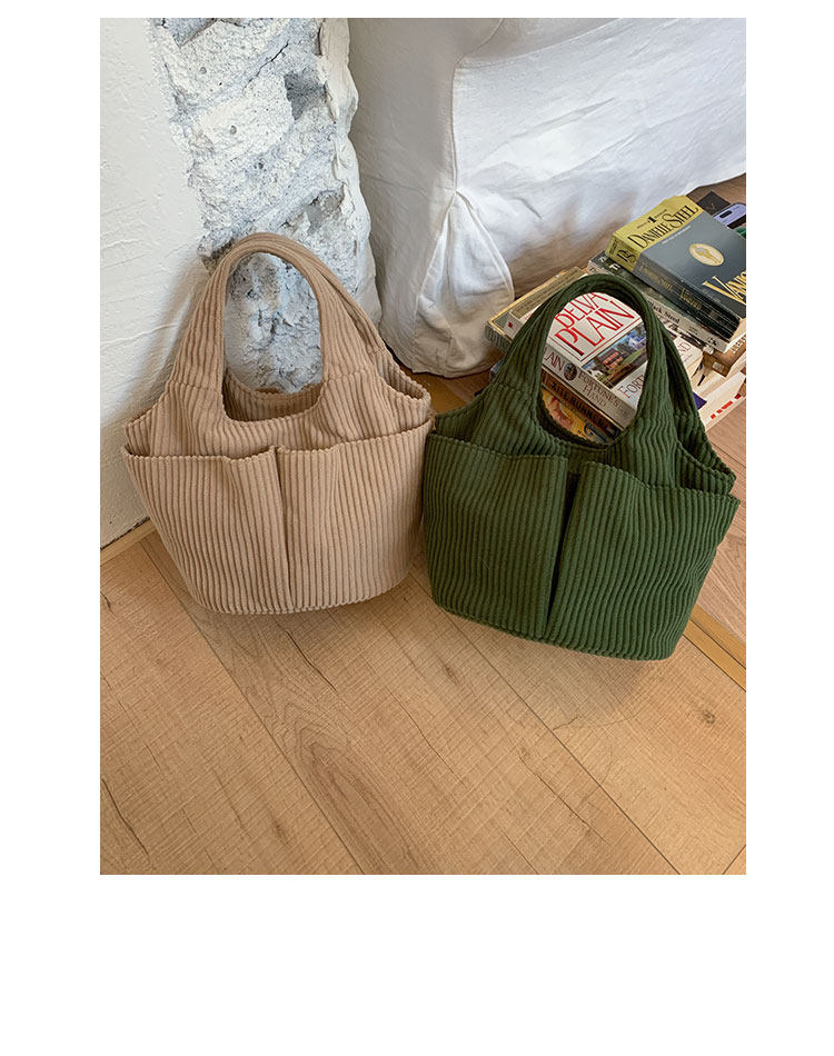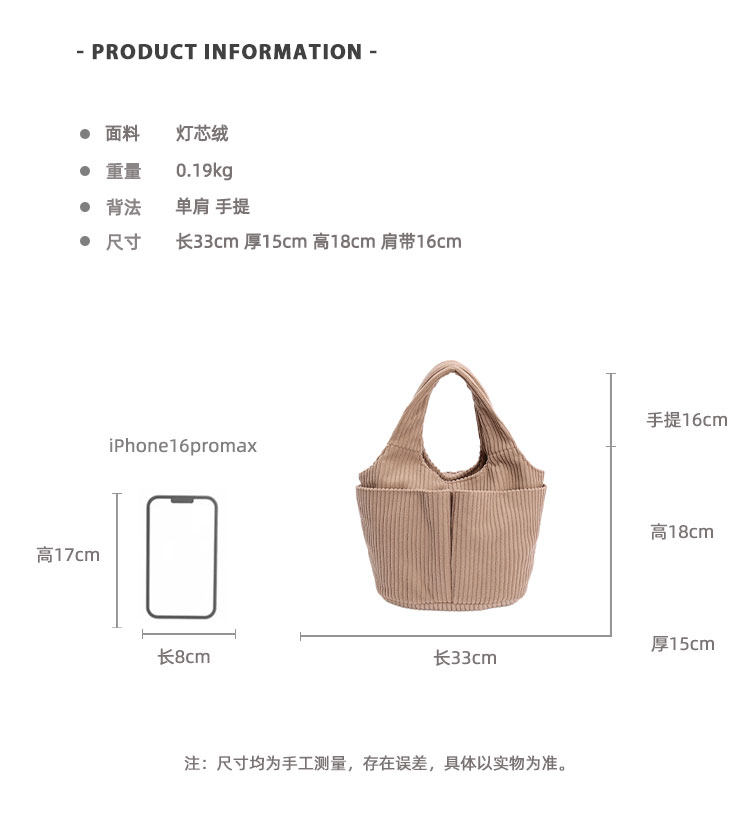 秋冬季超火燈芯絨手提水桶包女外出雜物輕便小拎包上班飯盒便當包