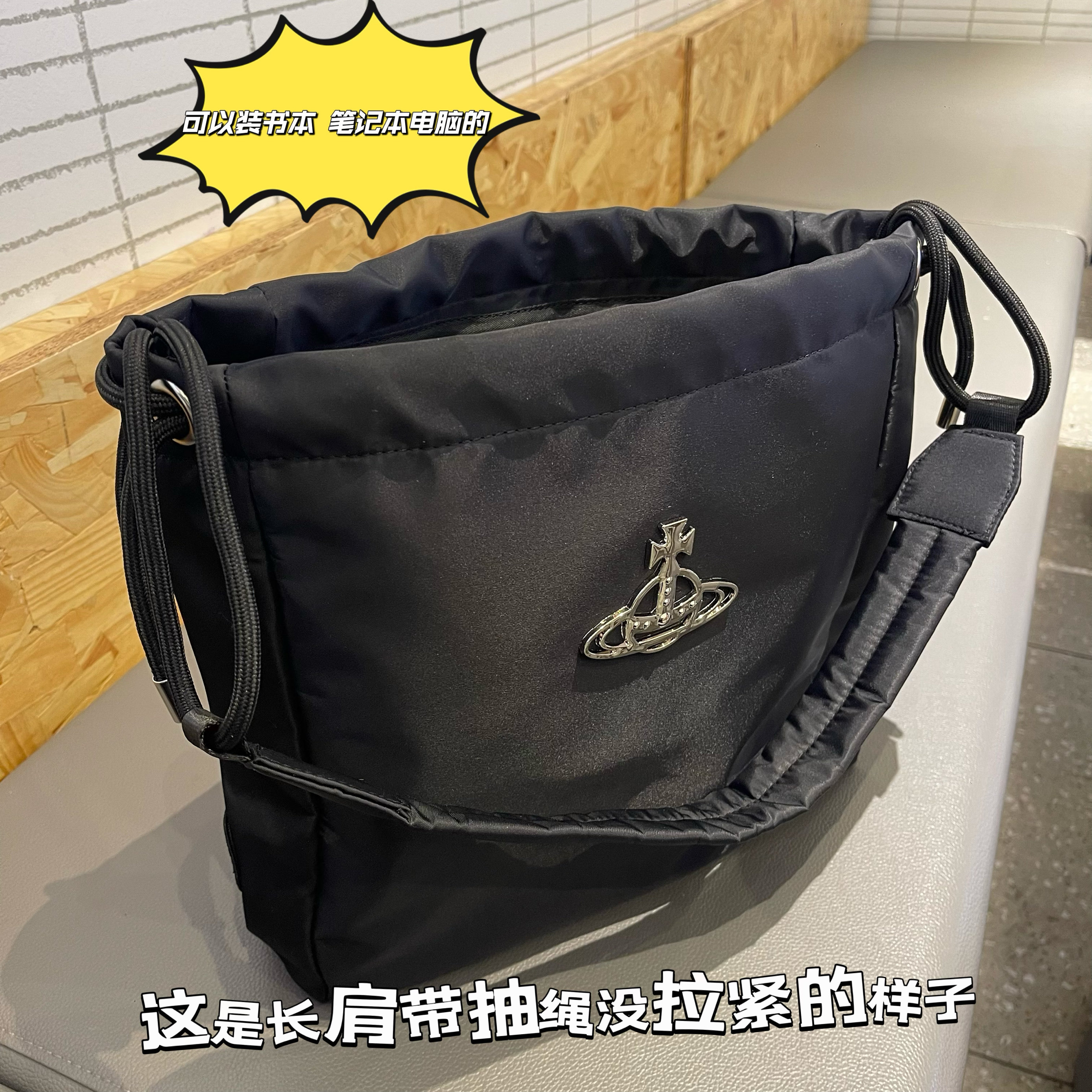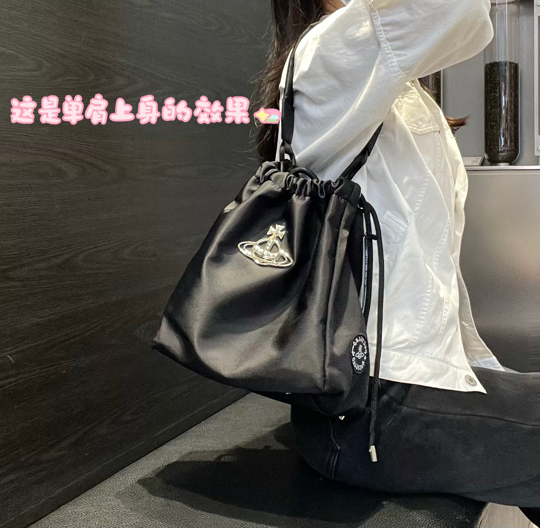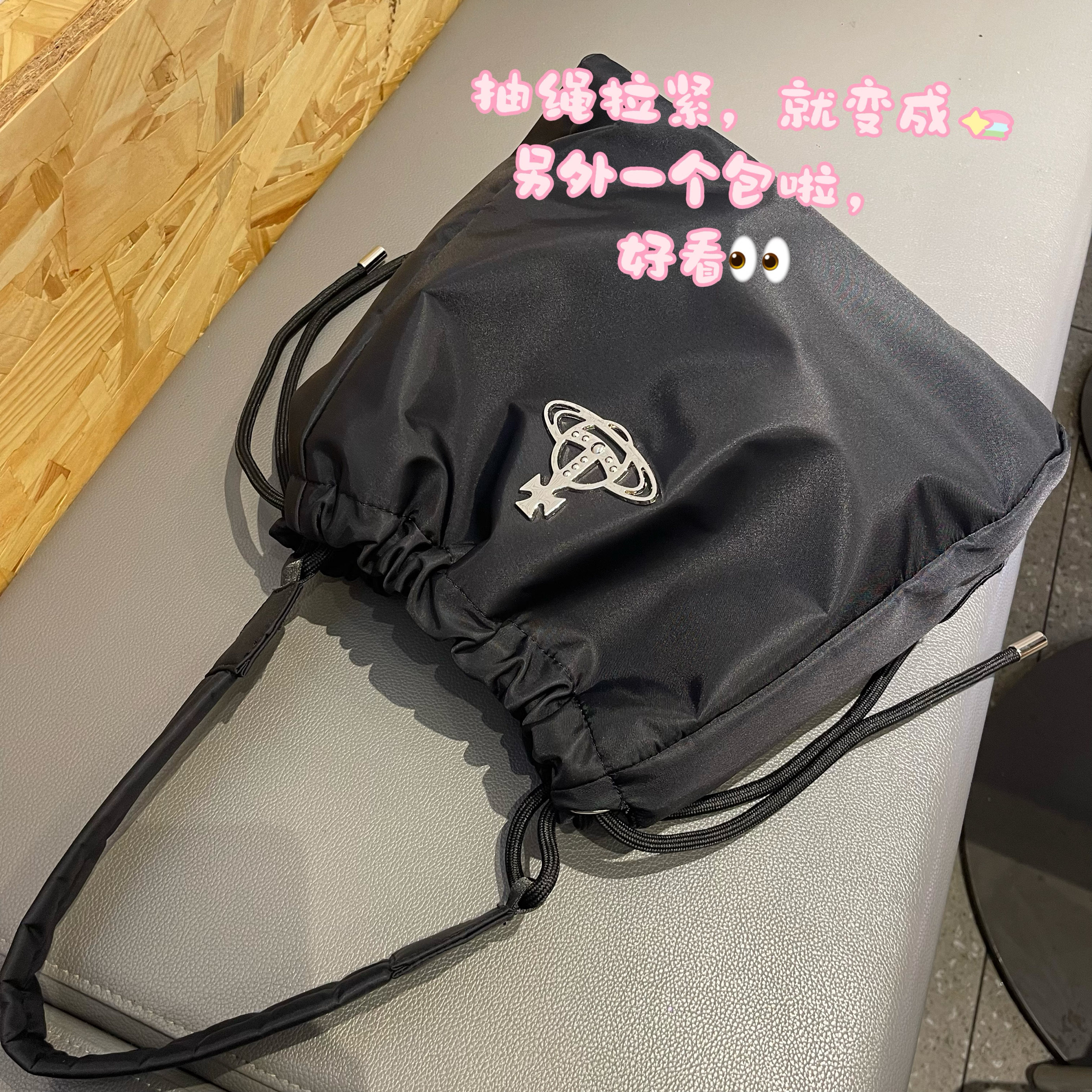 2026新款西西西土星尼龍抽繩水桶包簡約單肩腋下包大容量托特包女