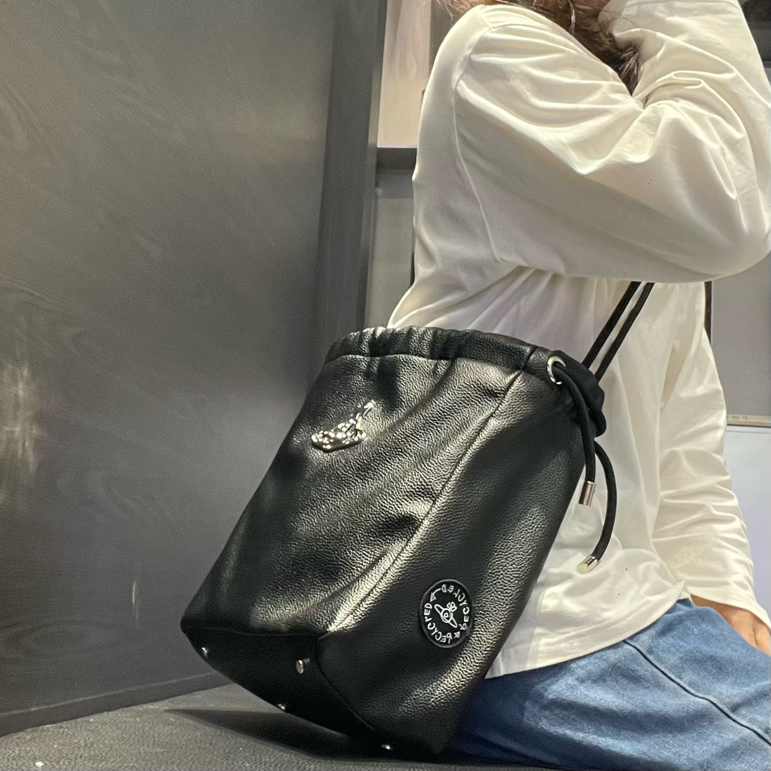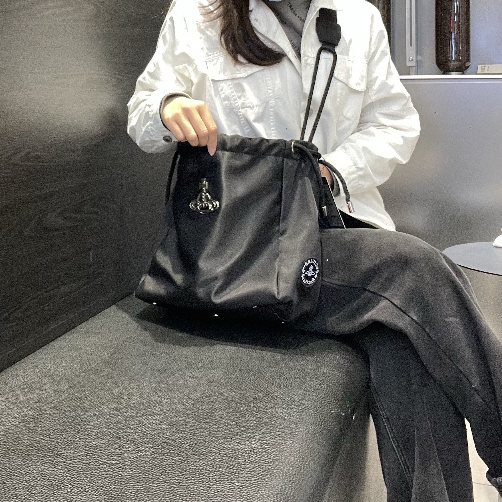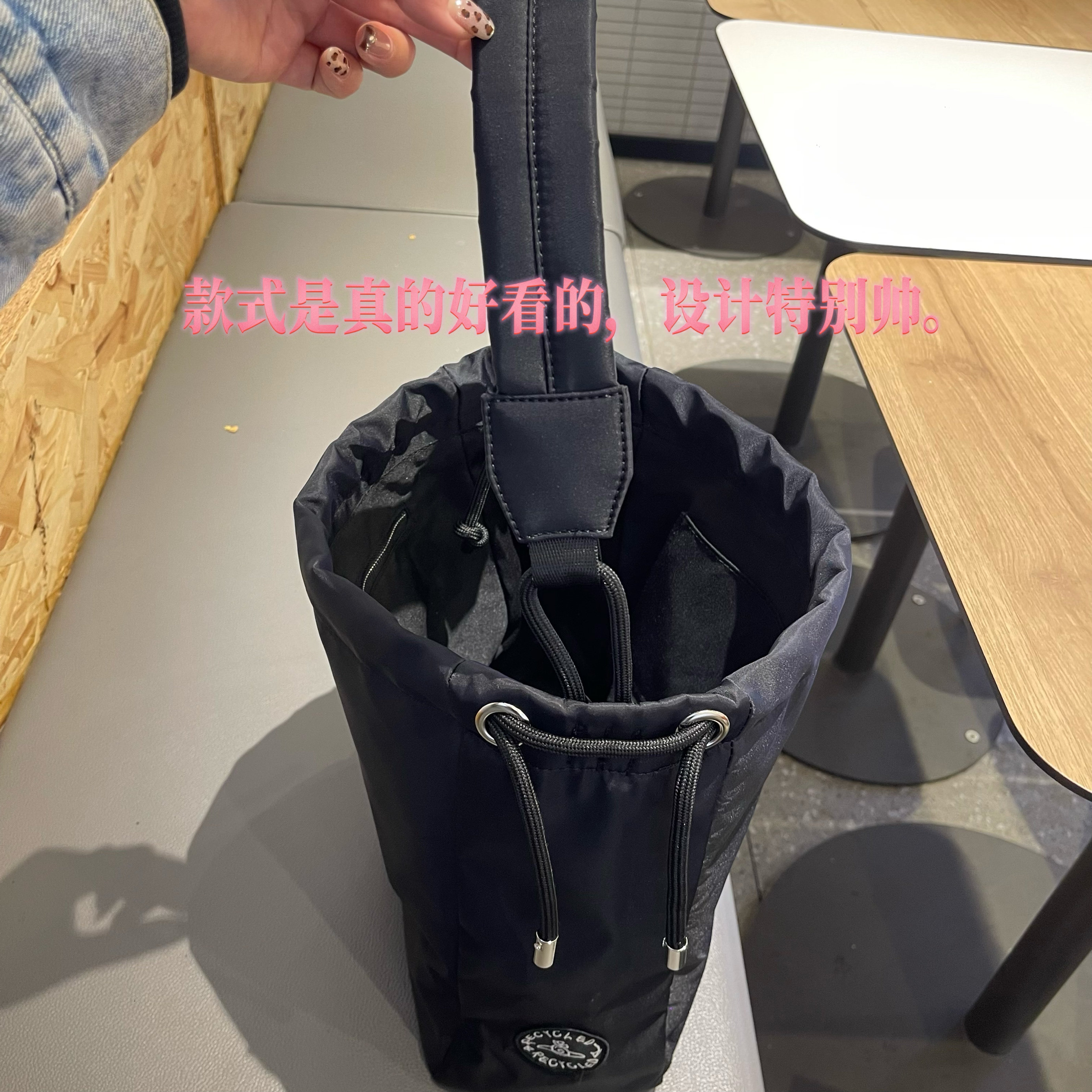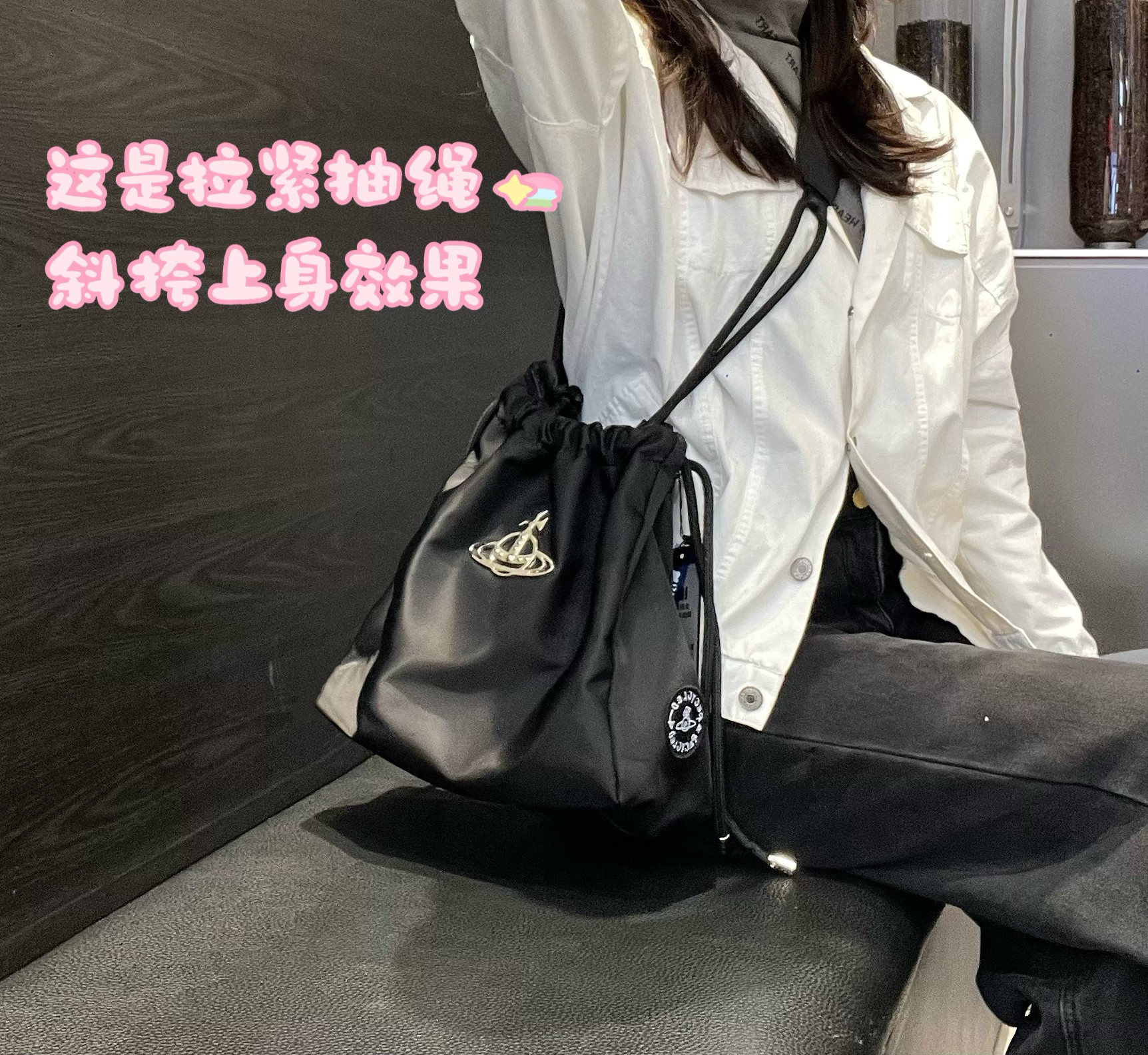2026新款西西西土星尼龍抽繩水桶包簡約單肩腋下包大容量托特包女