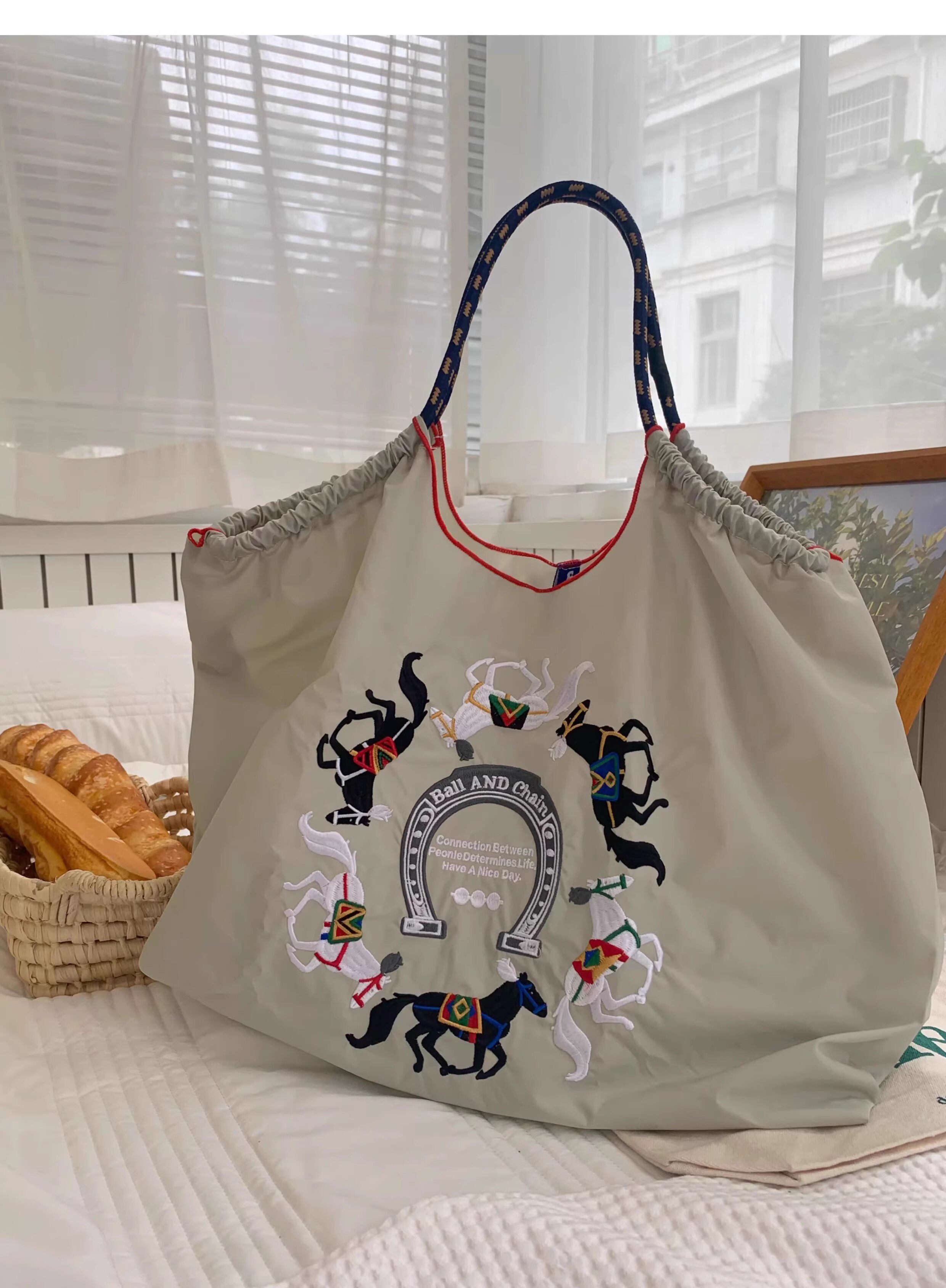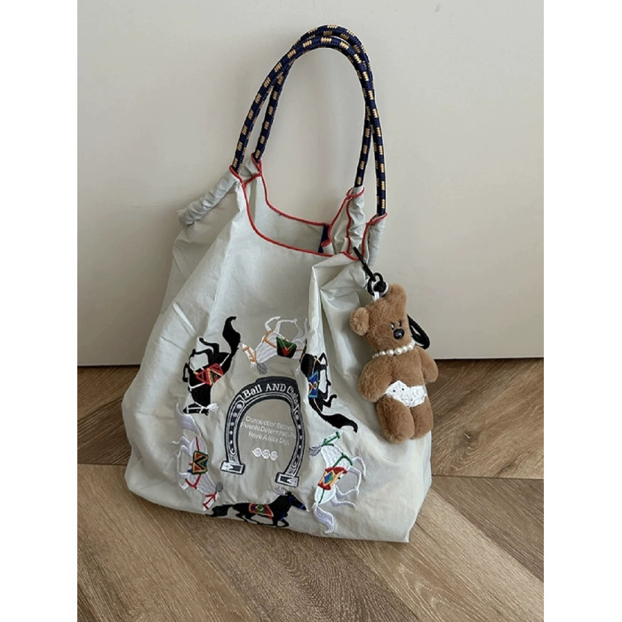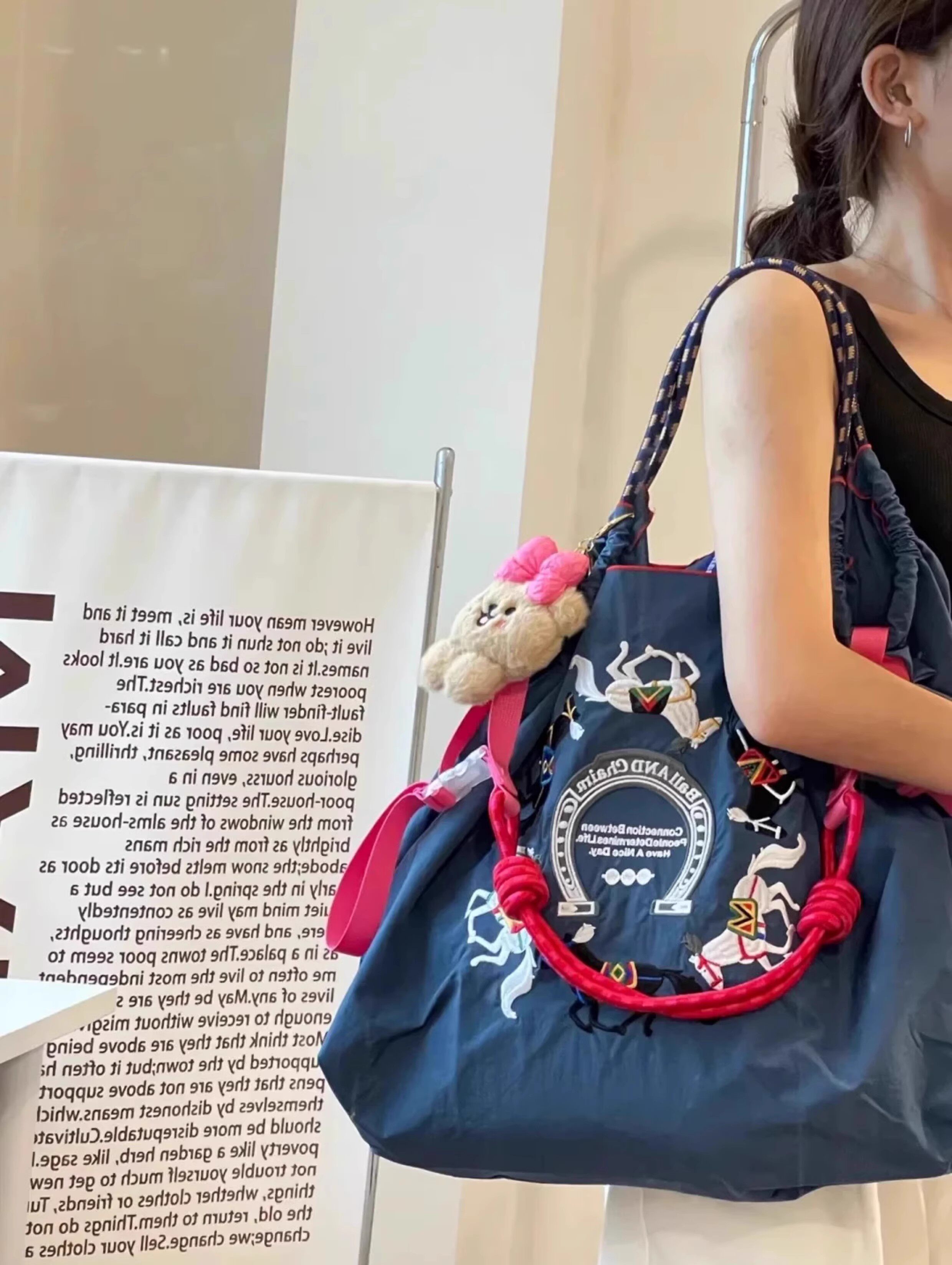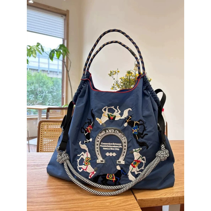 日本ball chain購物袋高圓圓楊紫同款尼龍刺綉帆布環保袋斜背女包