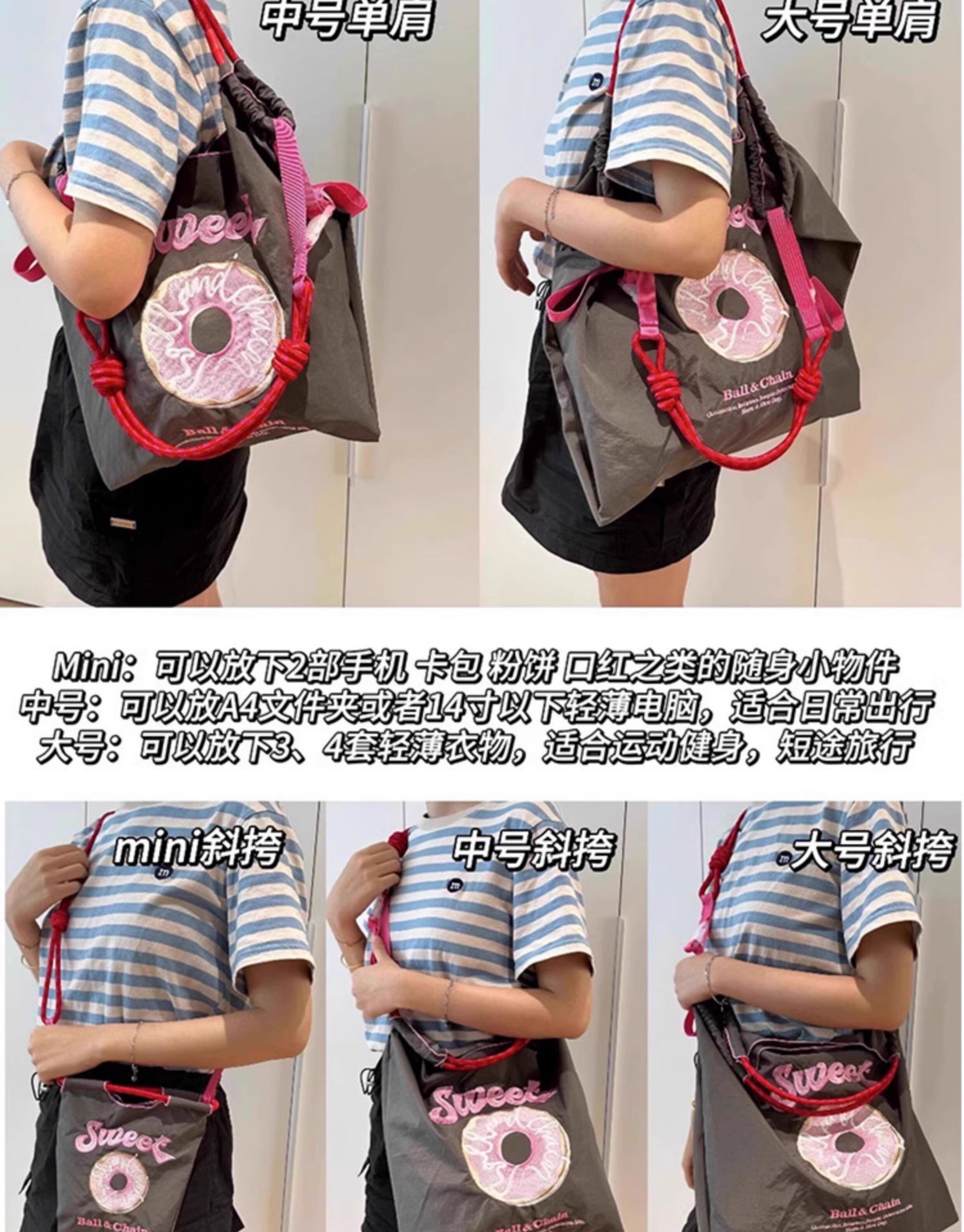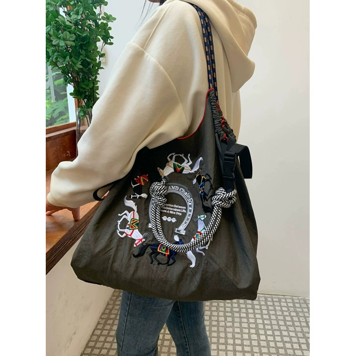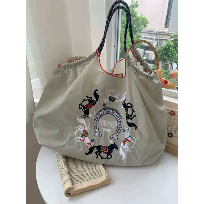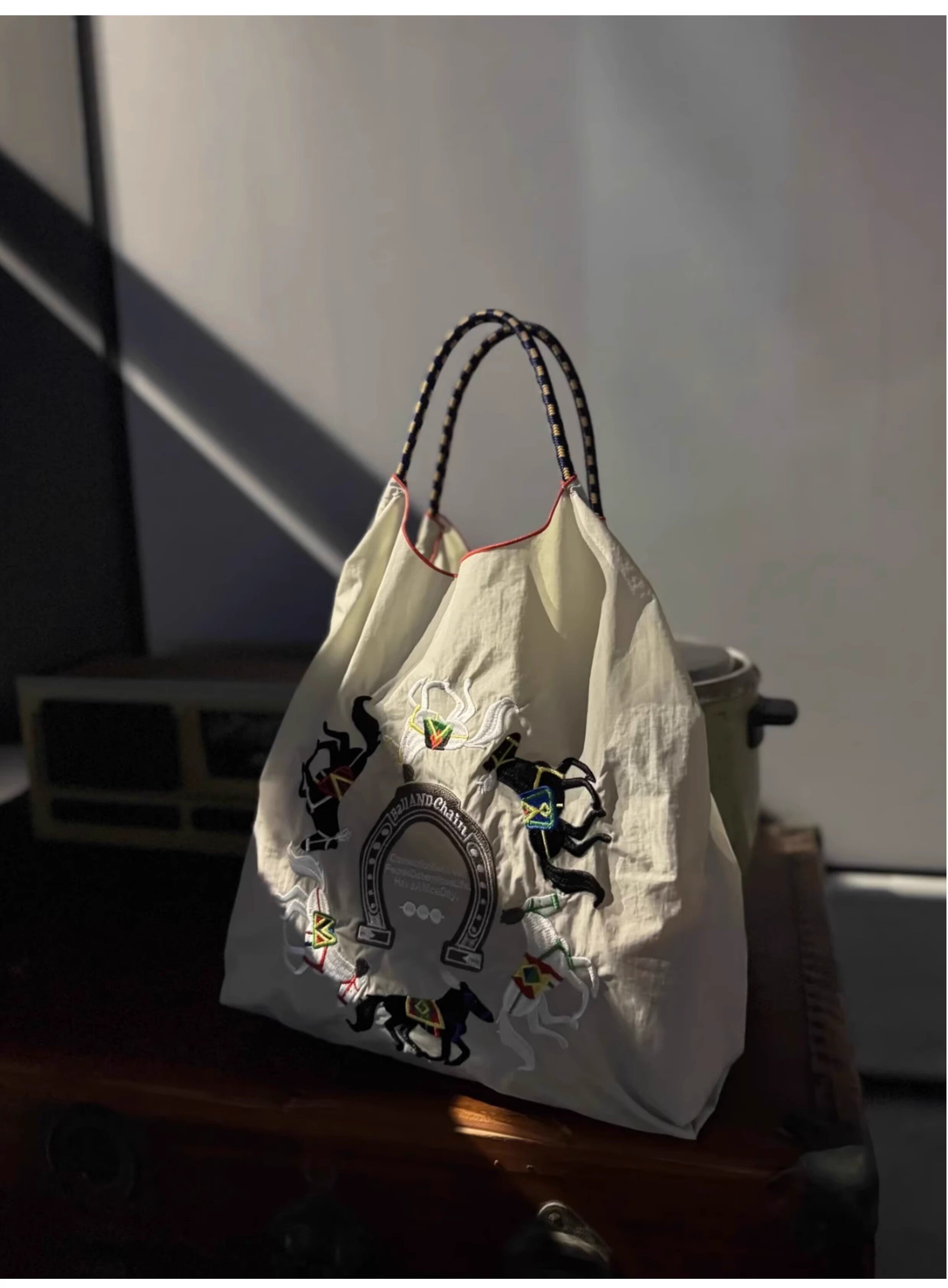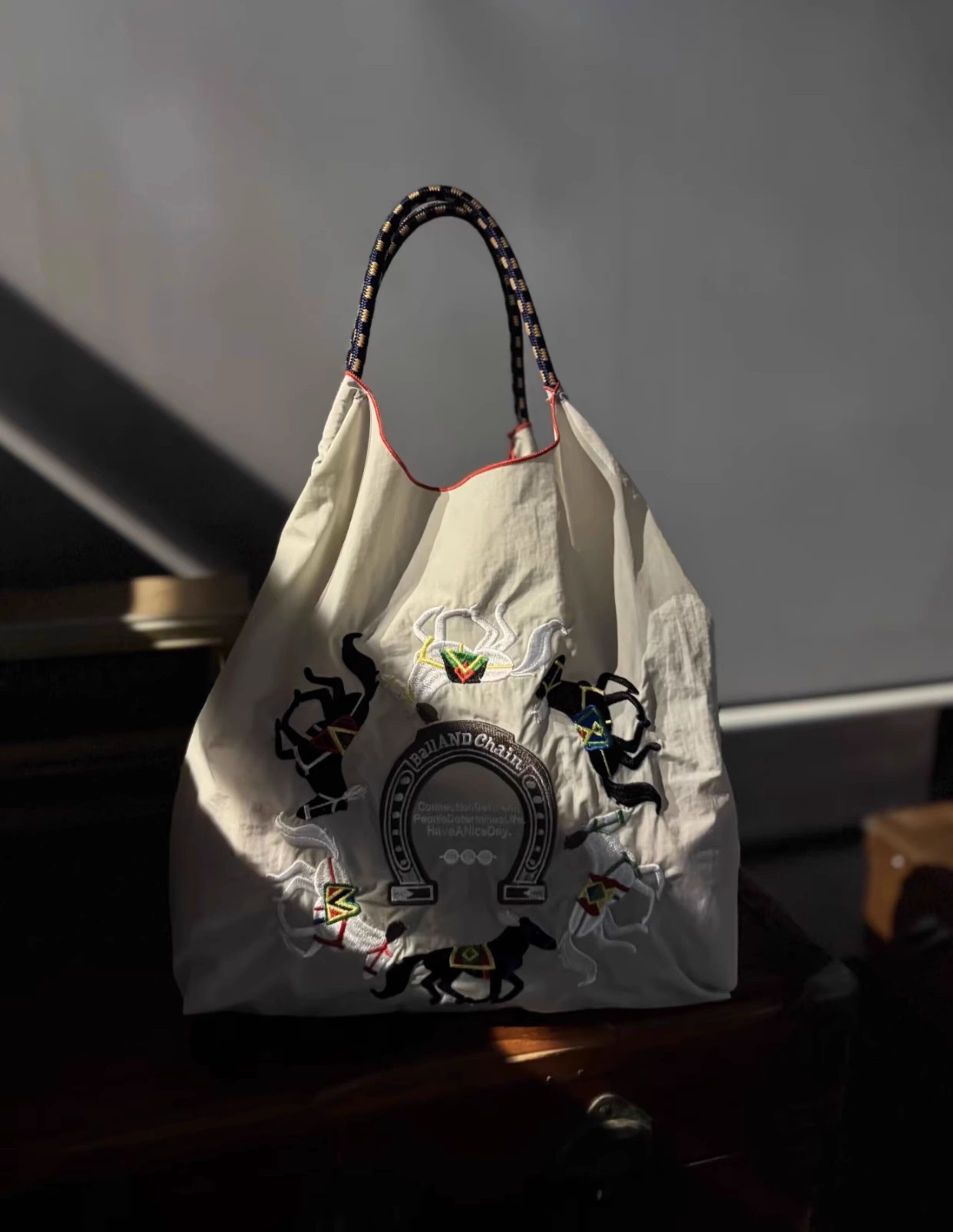 日本ball chain購物袋高圓圓楊紫同款尼龍刺綉帆布環保袋斜背女包