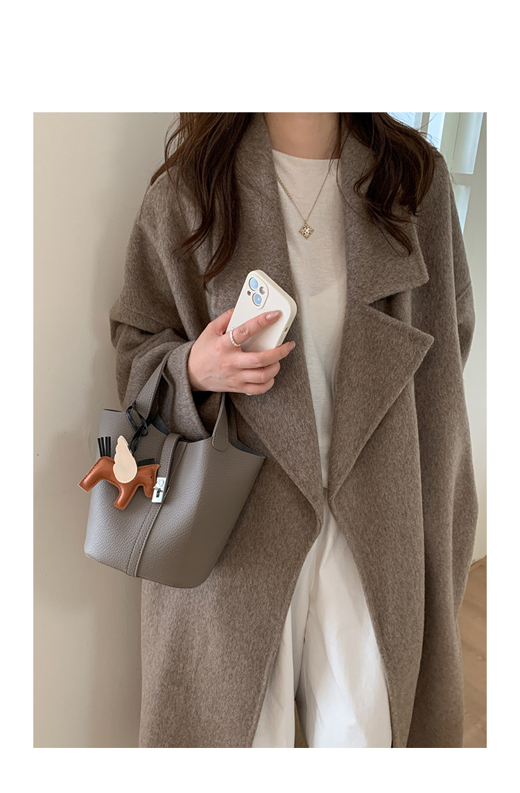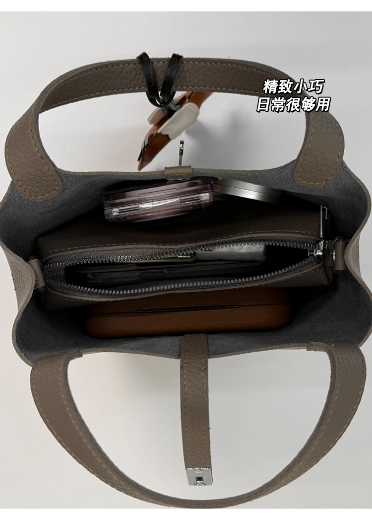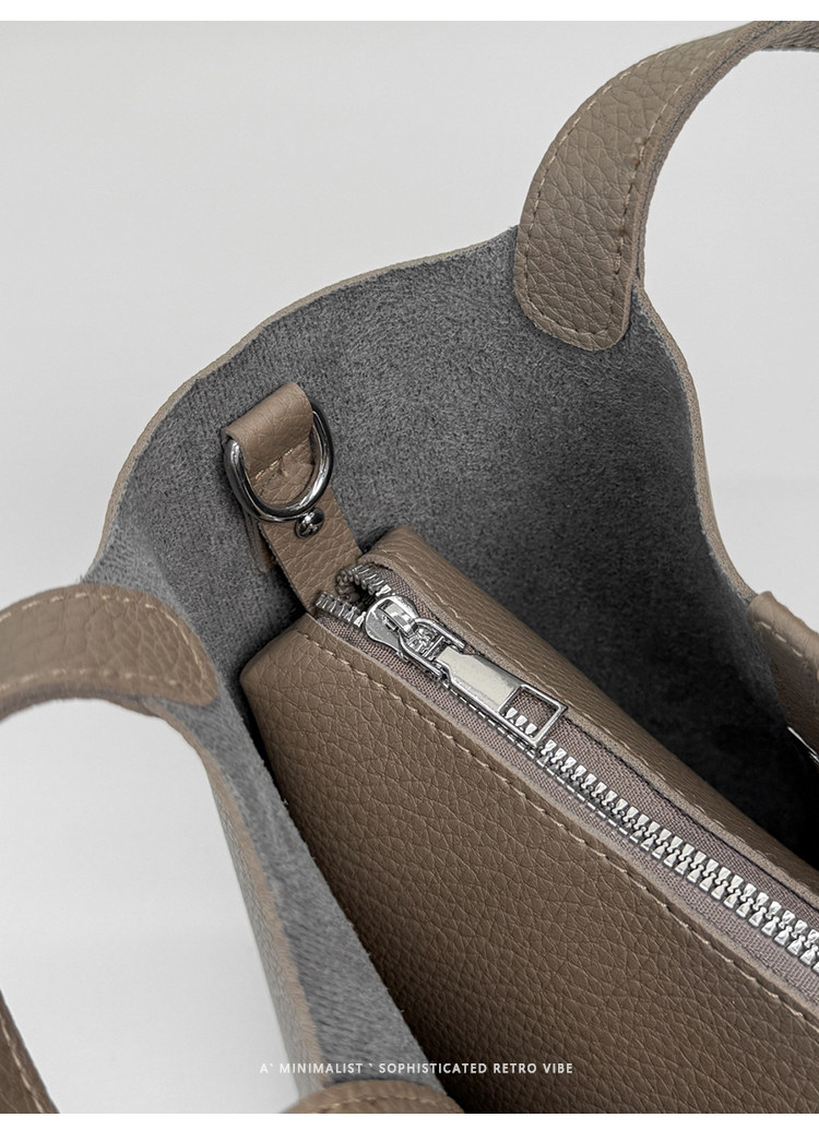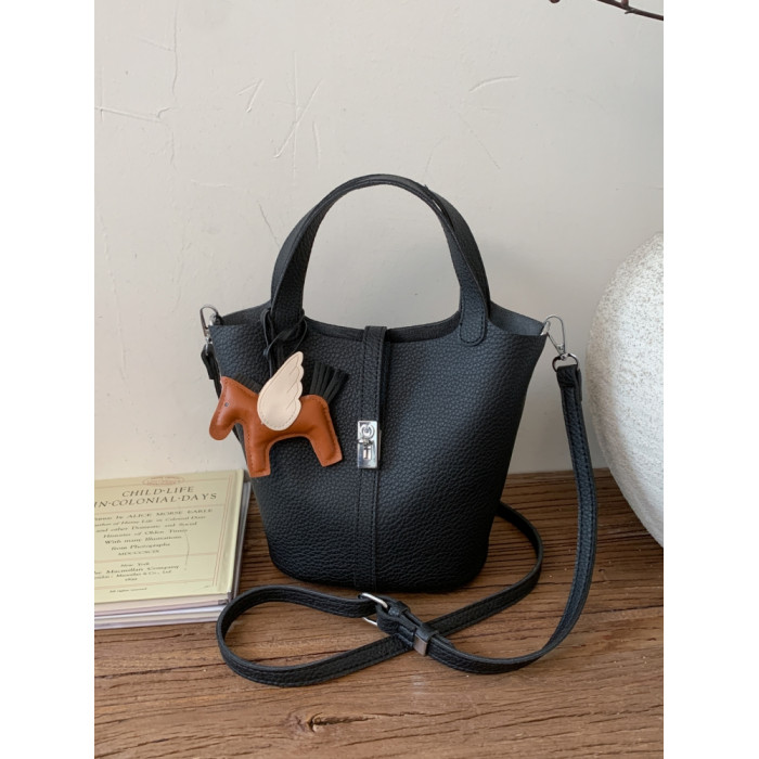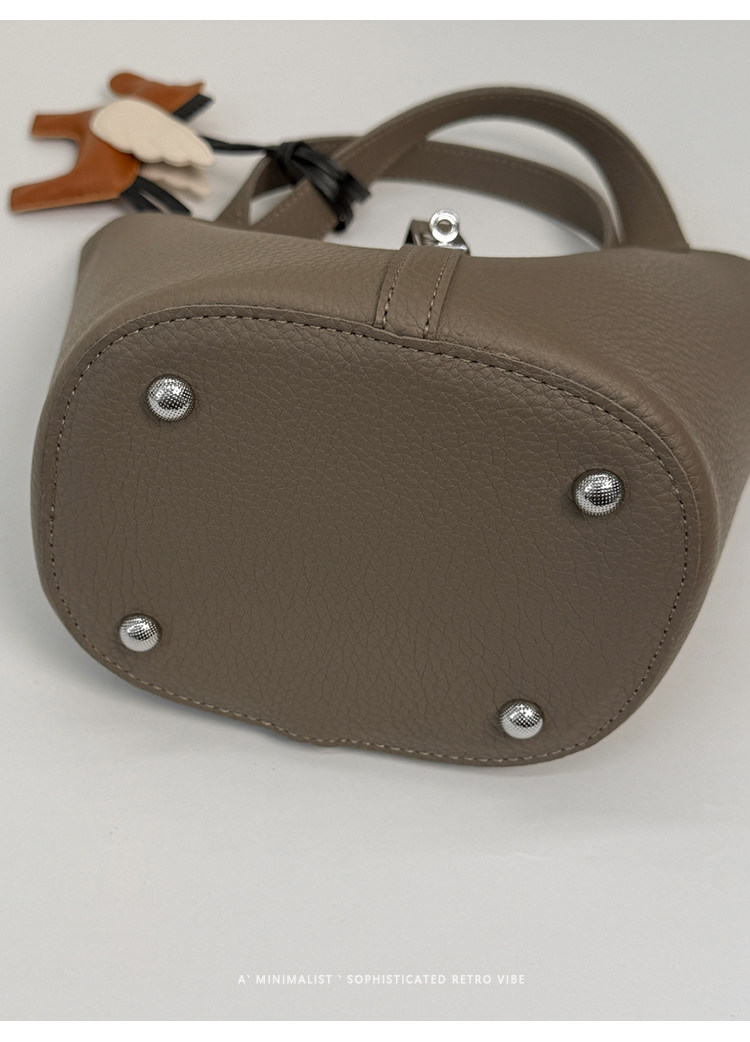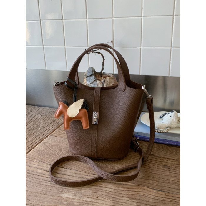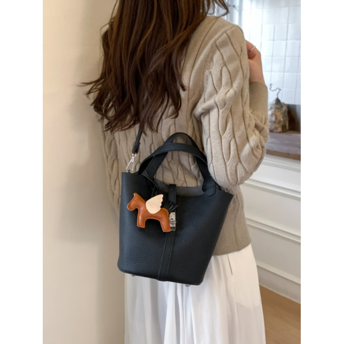 韓國小衆手提水桶包女2025新款復古荔枝紋菜籃子包鎖釦單肩斜後後背包