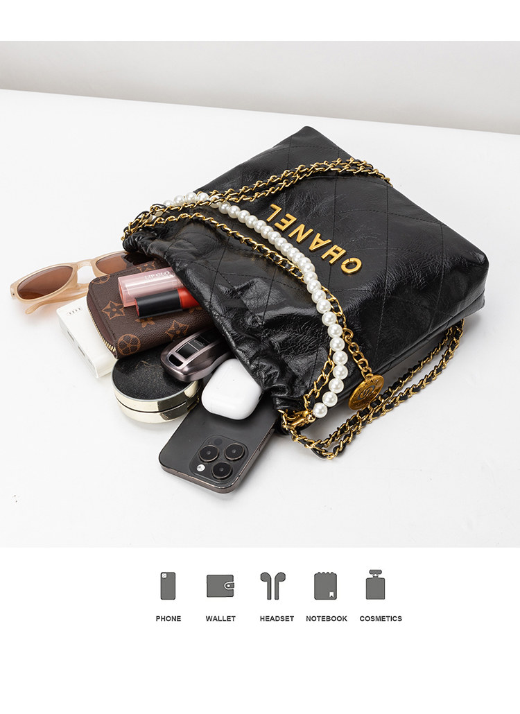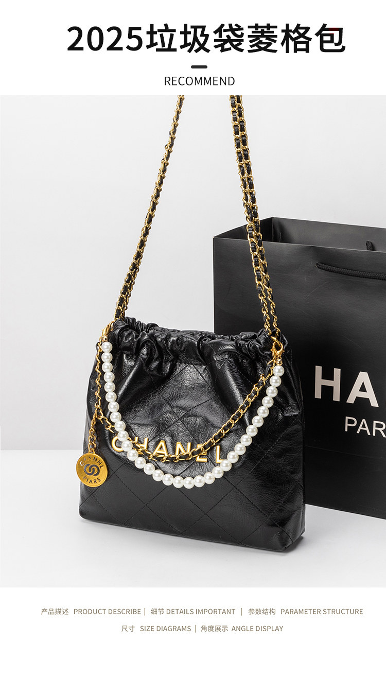 小香風菱格鏈條包包女2025春夏新款垃圾袋包通勤斜背手提托特包