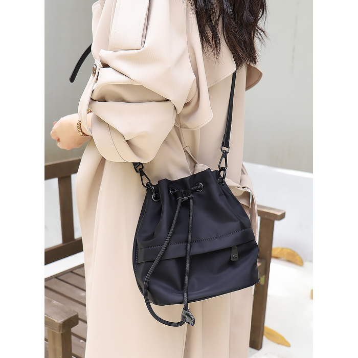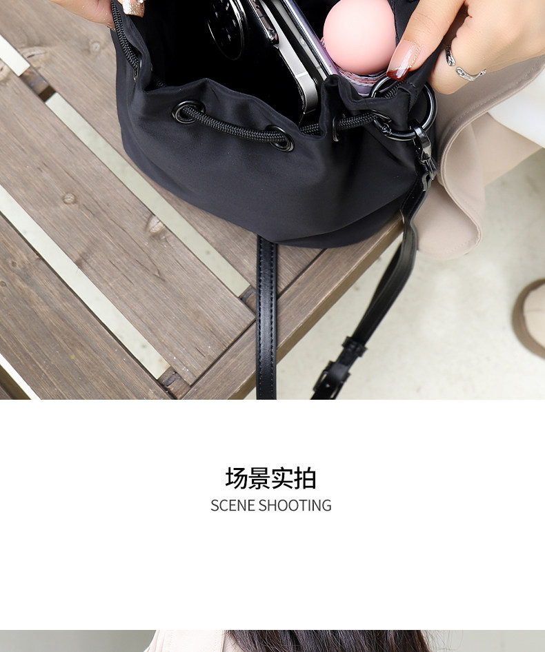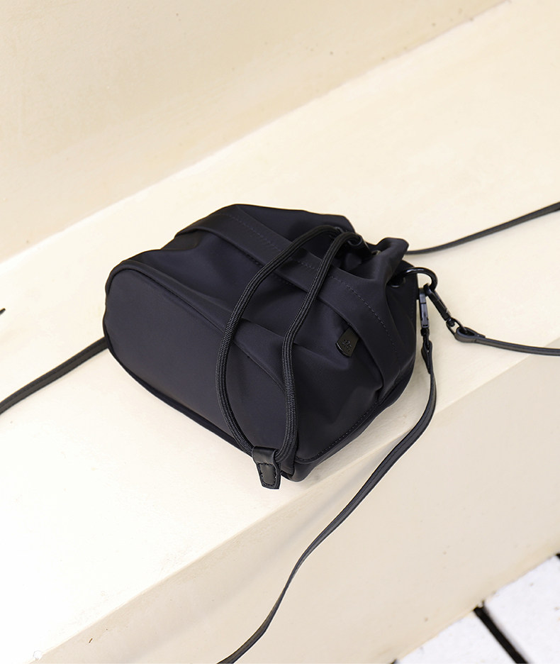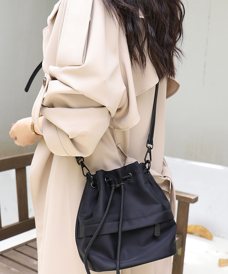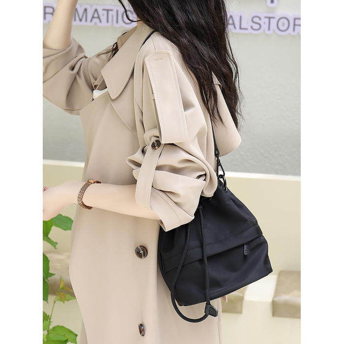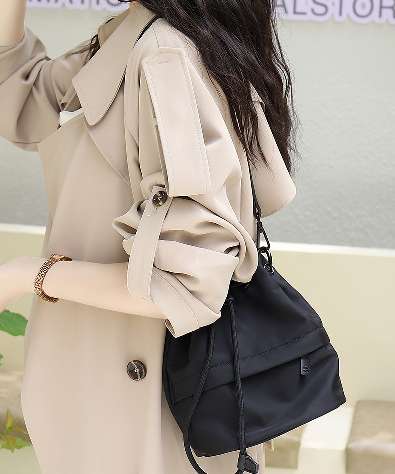 水桶包女新款2026高級感小衆抽帶斜後後背包輕便時尚布包女運動戶外包