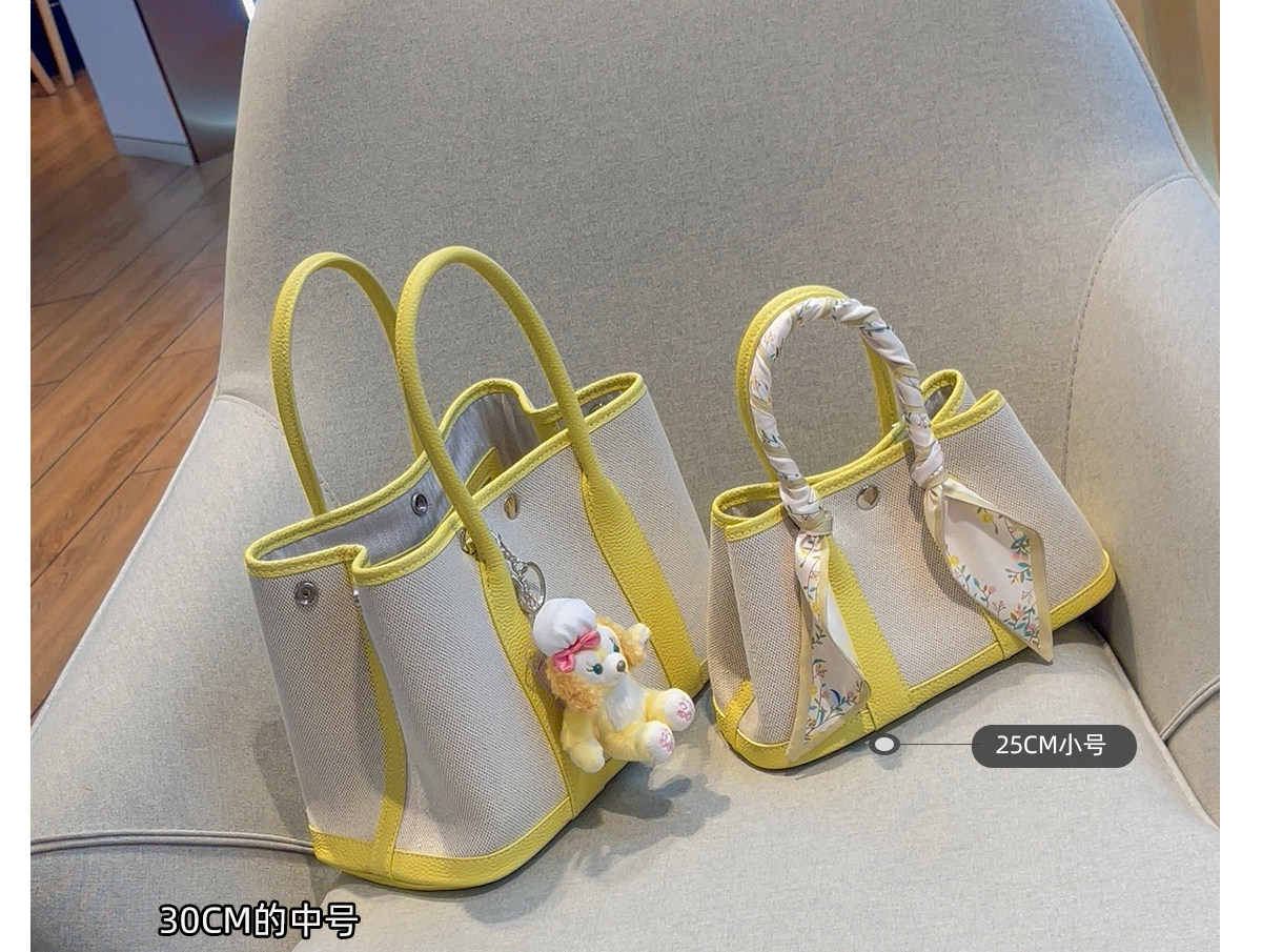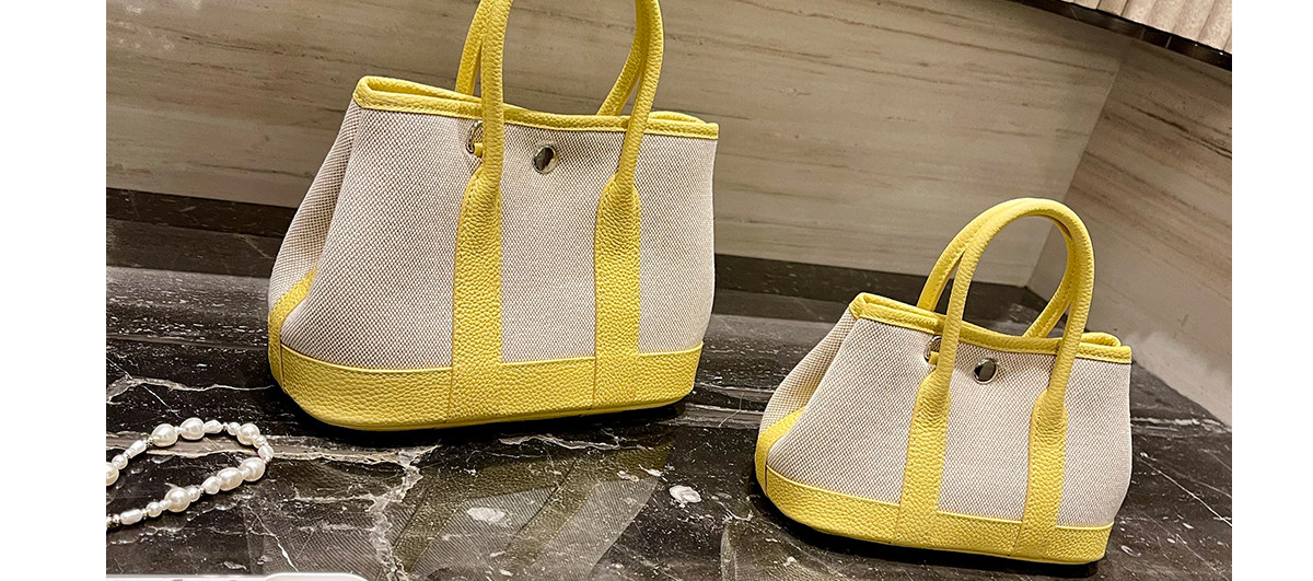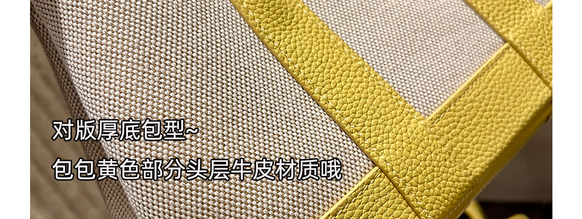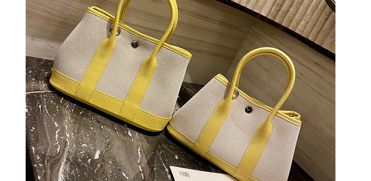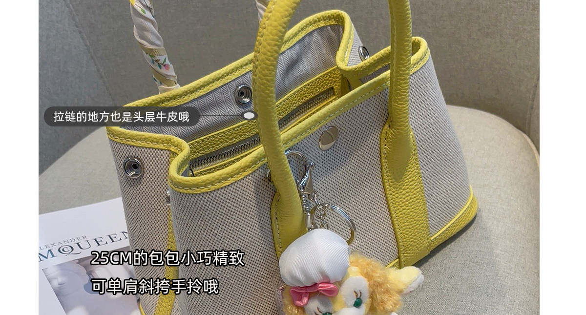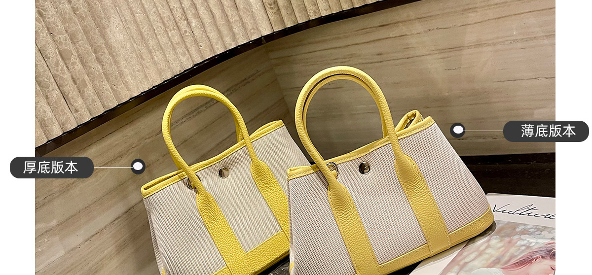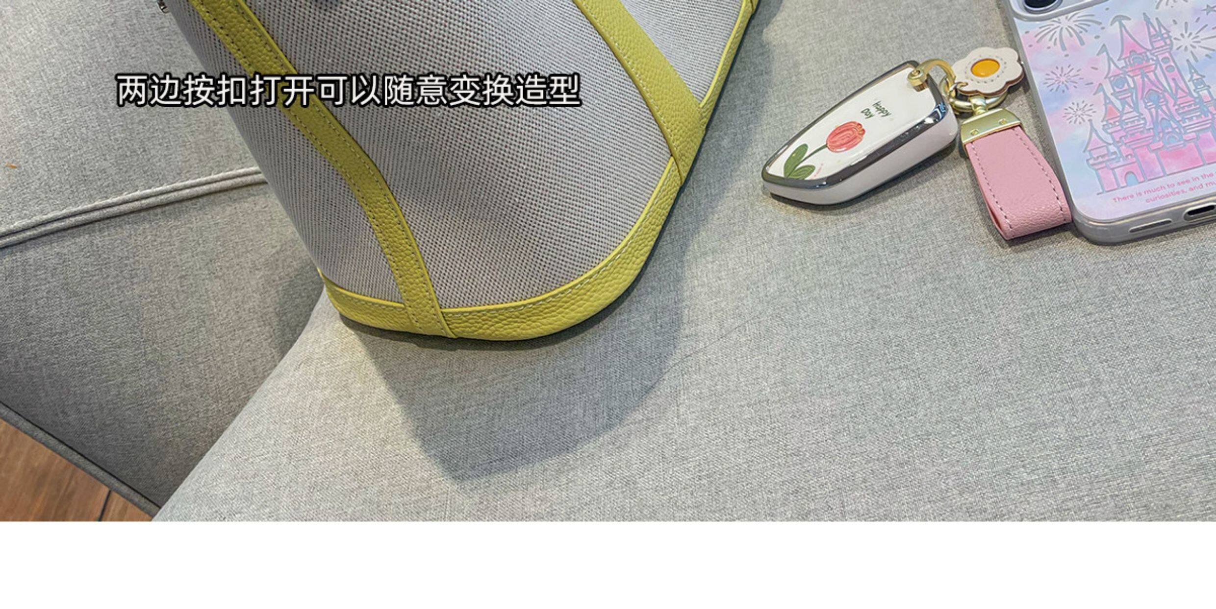 2026新款帆布拼頭層牛皮大容量花園包女真皮手提包黃色單肩斜後後背包