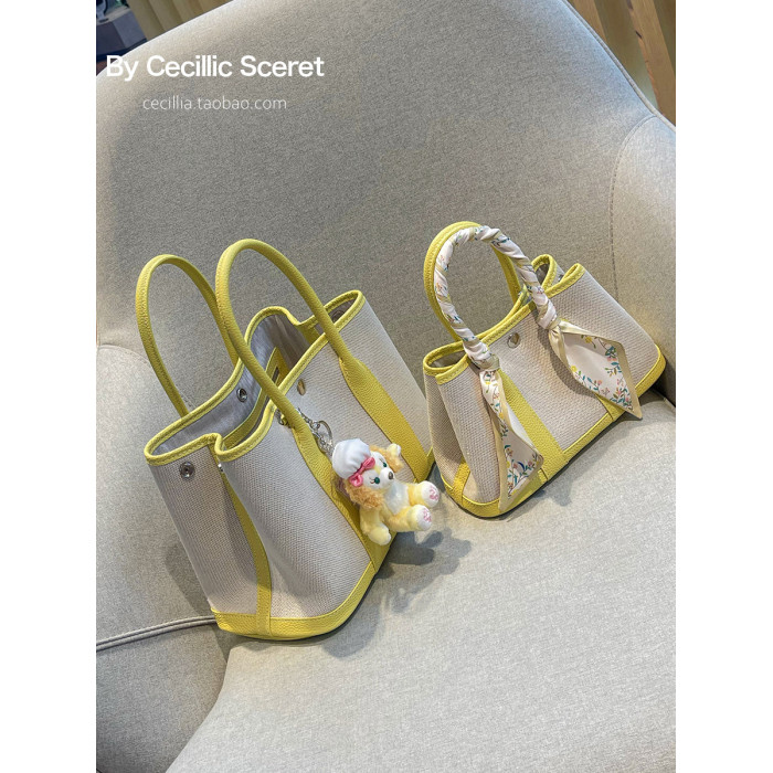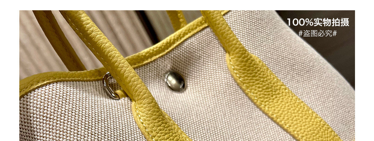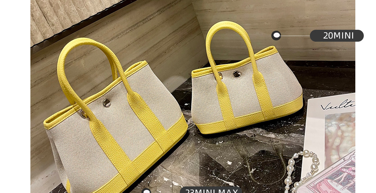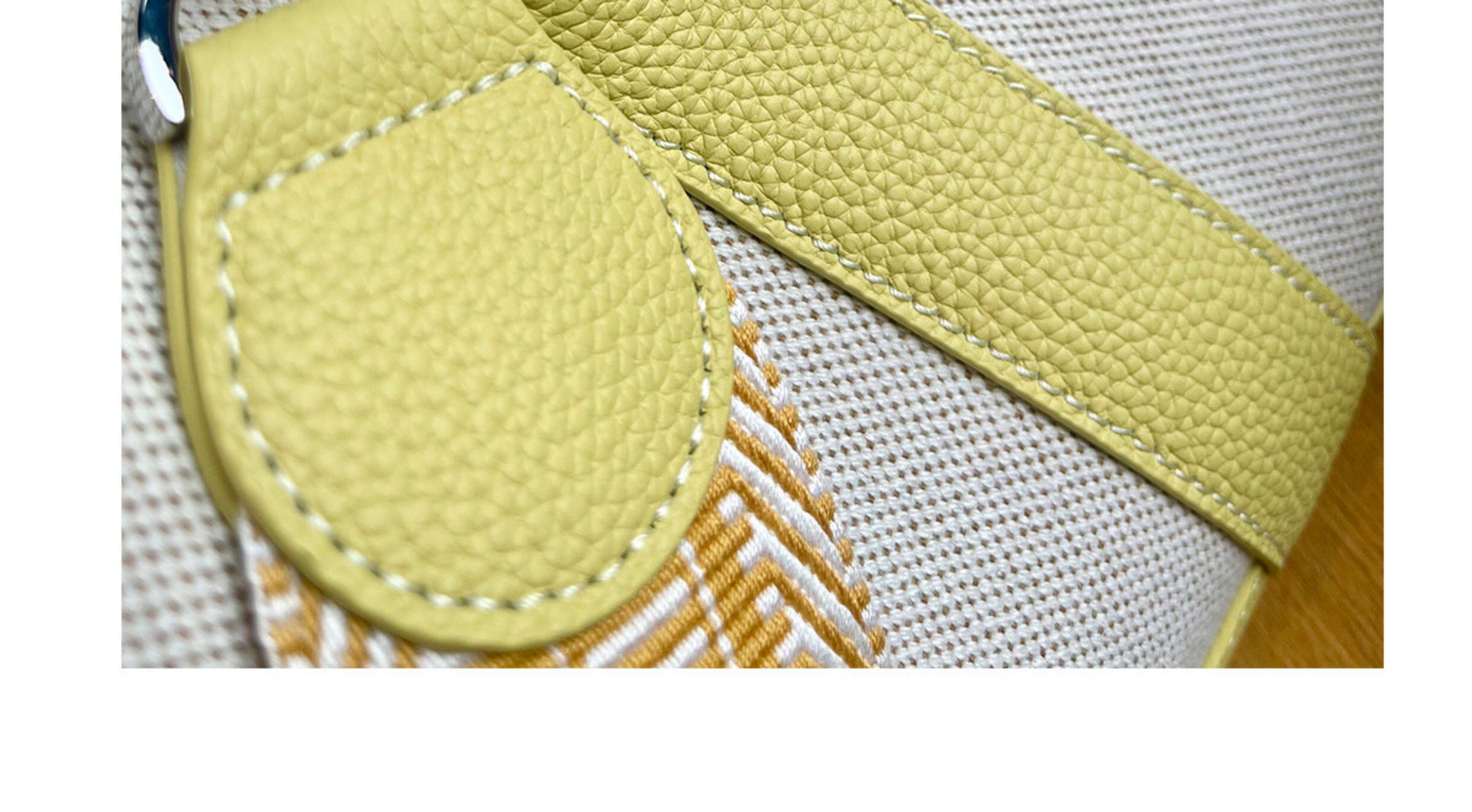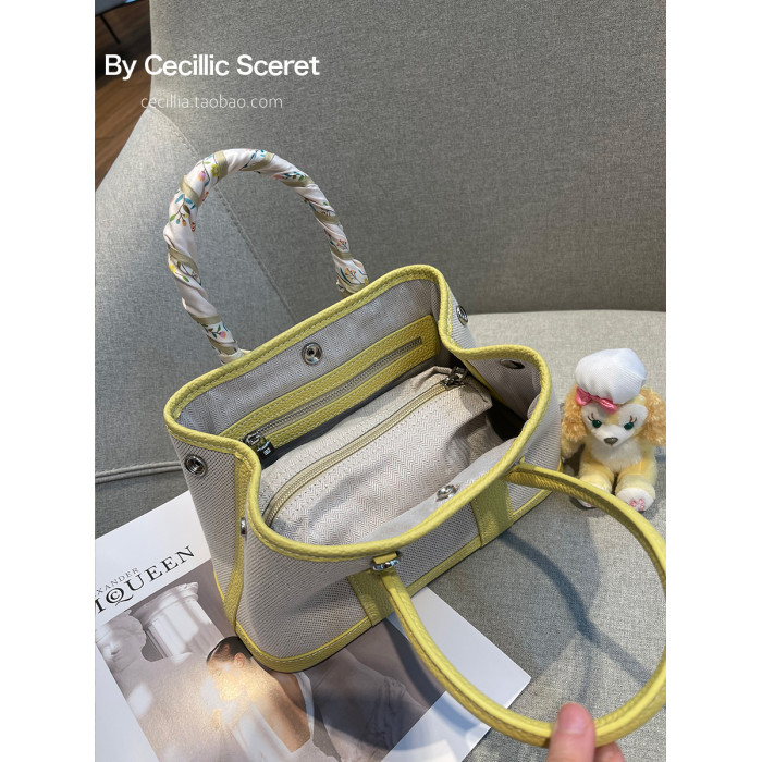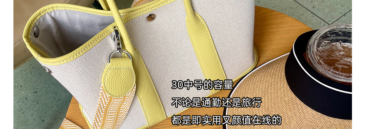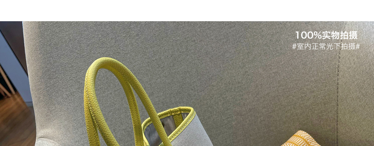 2026新款帆布拼頭層牛皮大容量花園包女真皮手提包黃色單肩斜後後背包