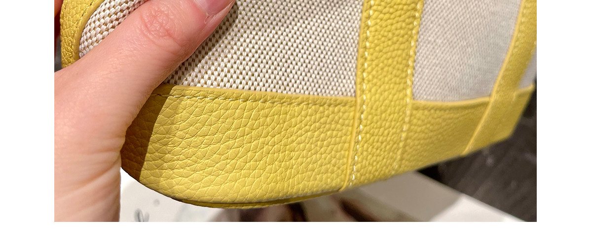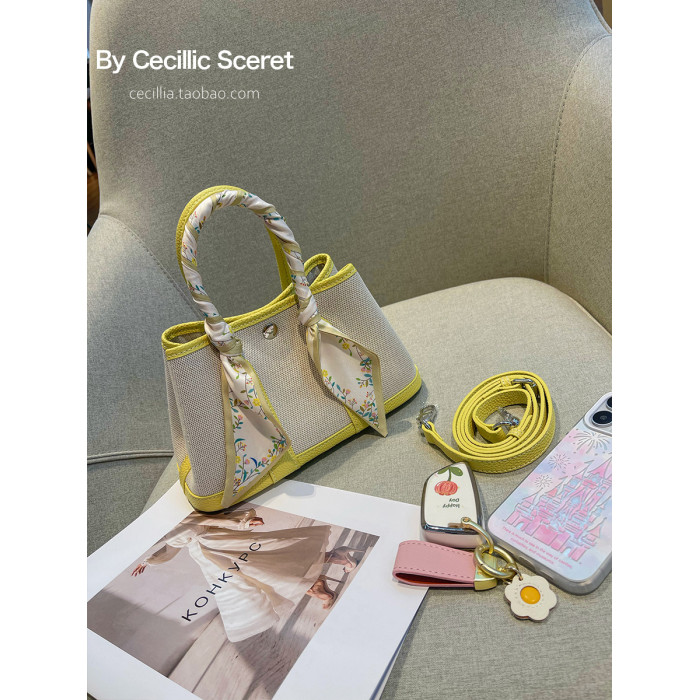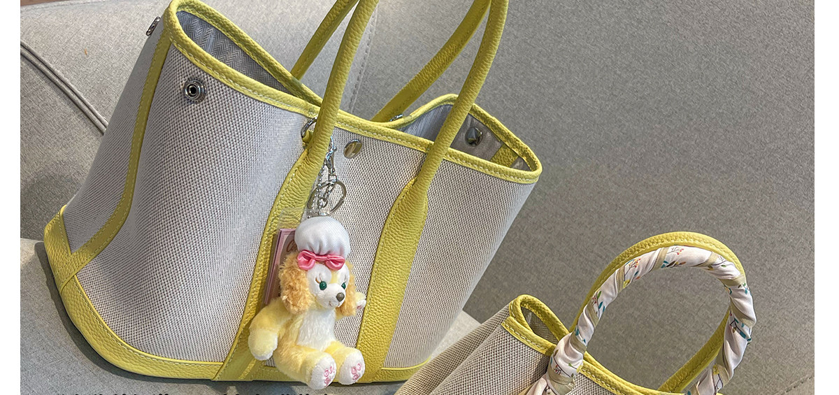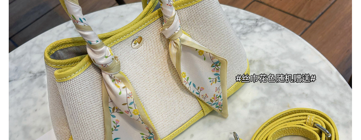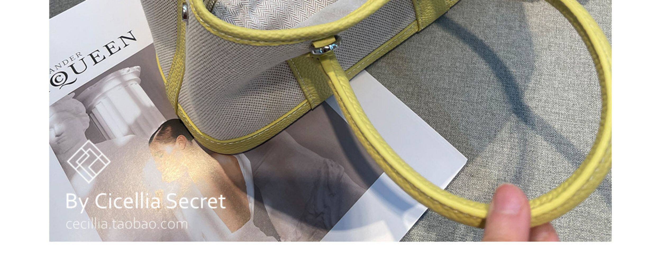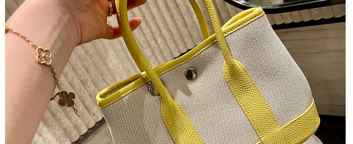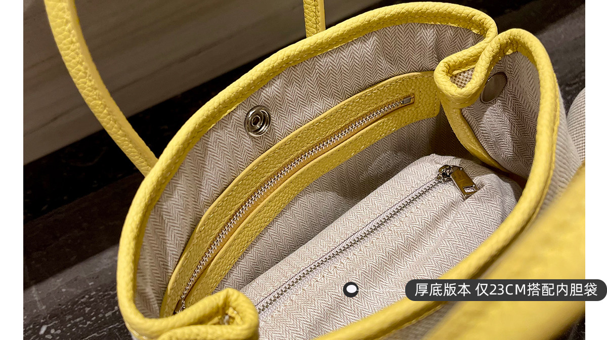 2026新款帆布拼頭層牛皮大容量花園包女真皮手提包黃色單肩斜後後背包