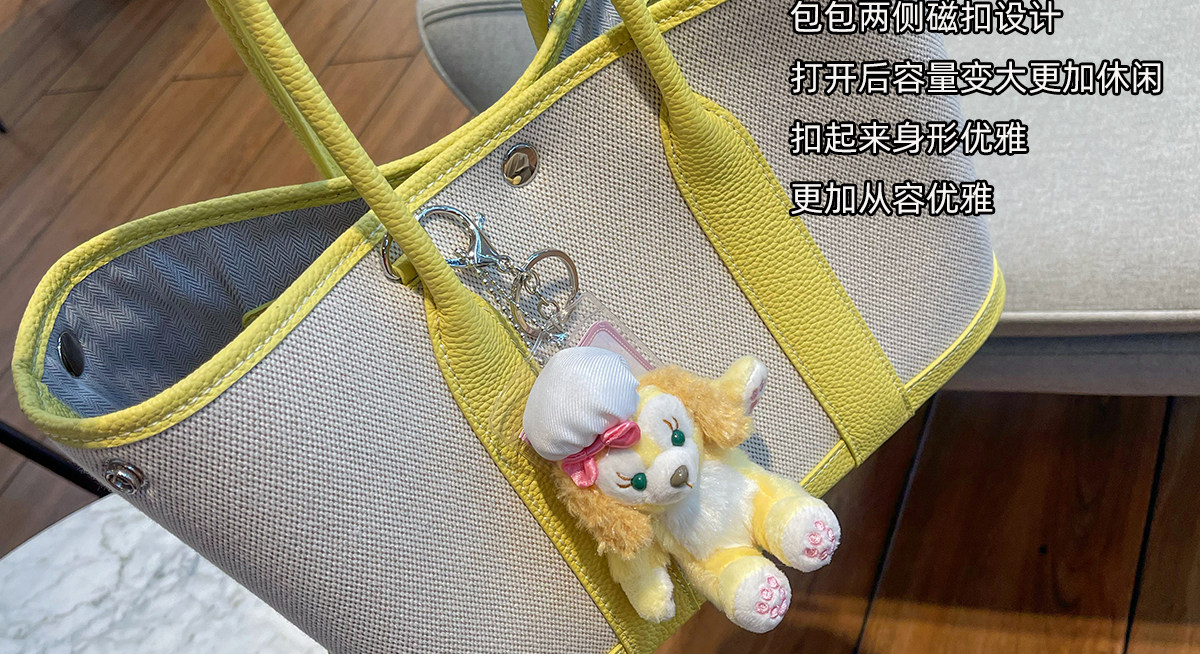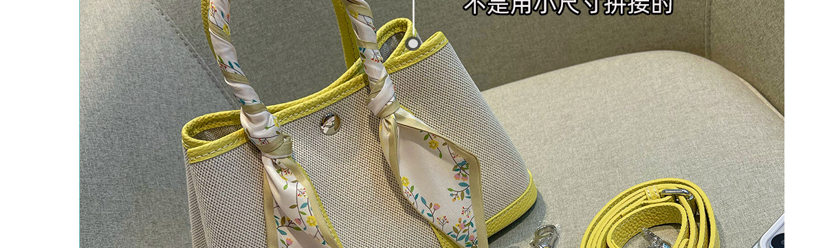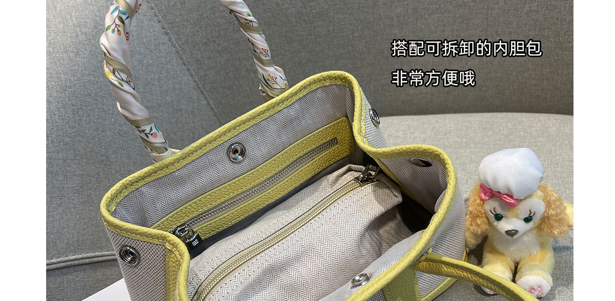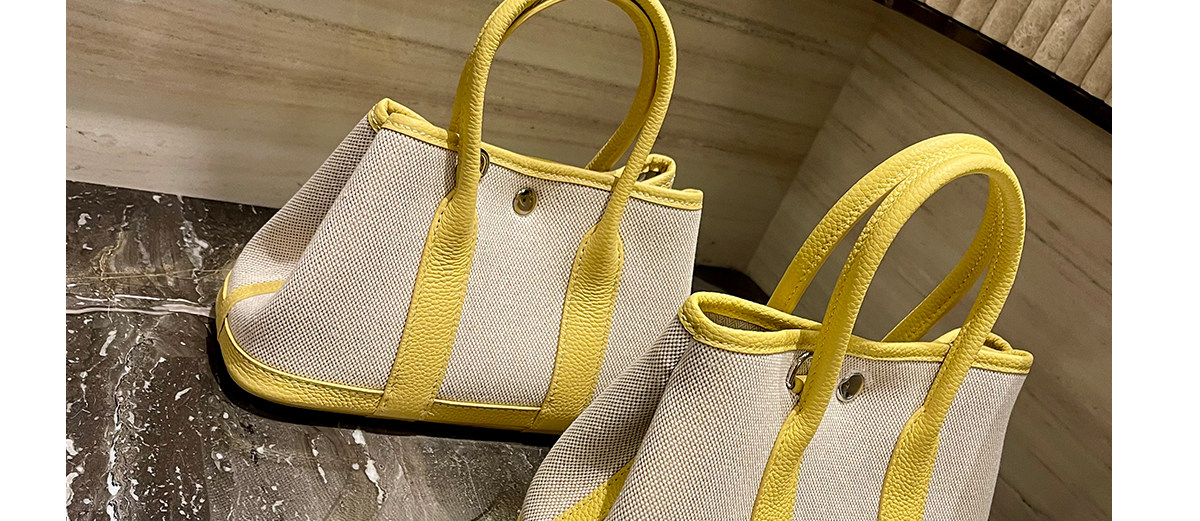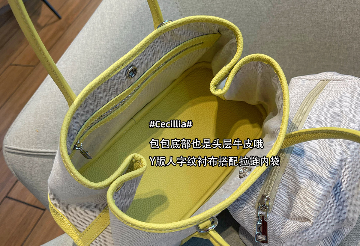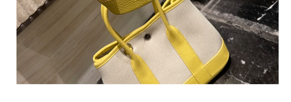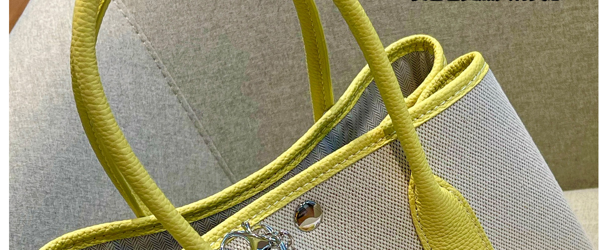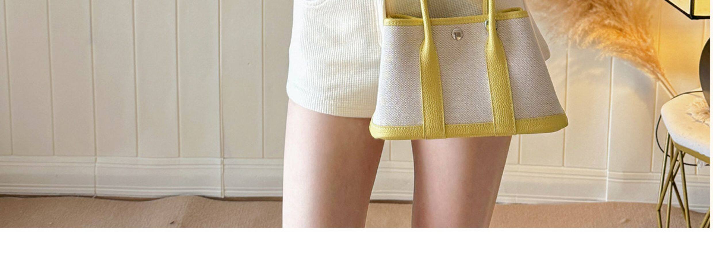 2026新款帆布拼頭層牛皮大容量花園包女真皮手提包黃色單肩斜後後背包
