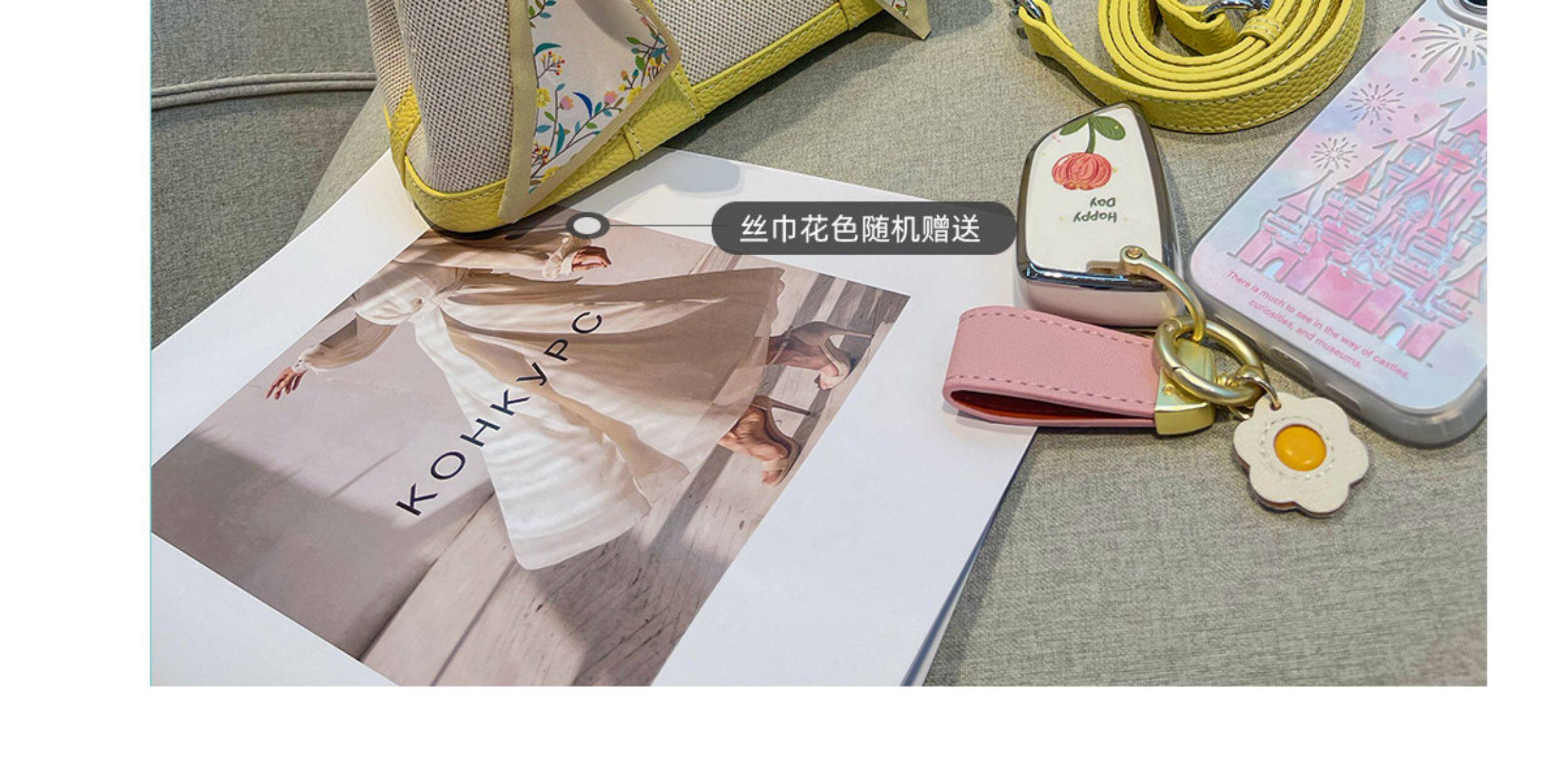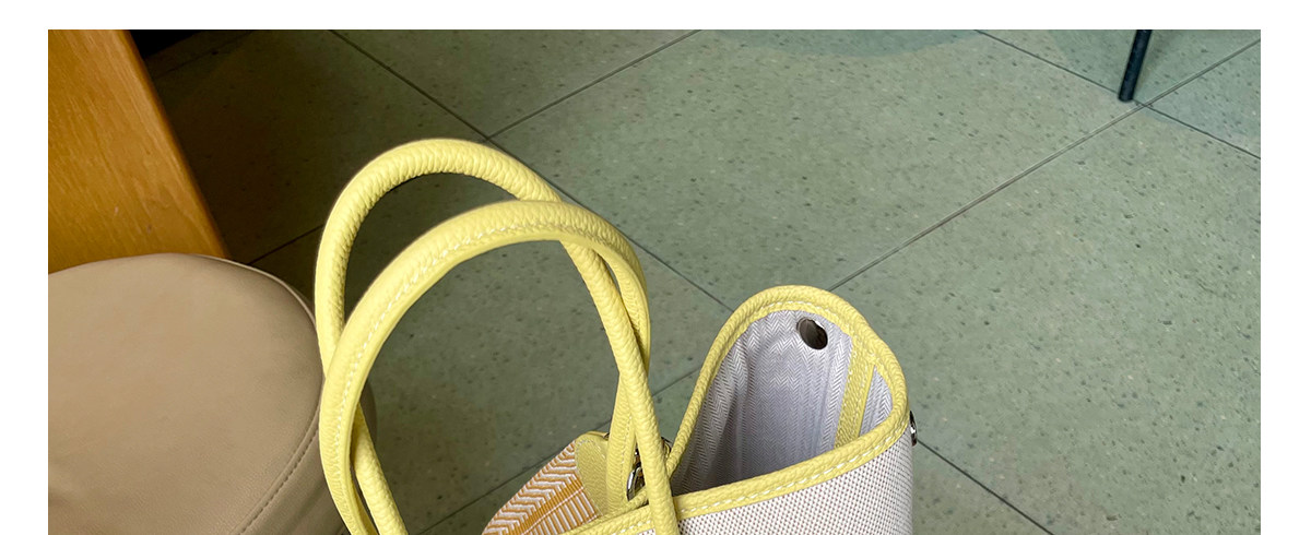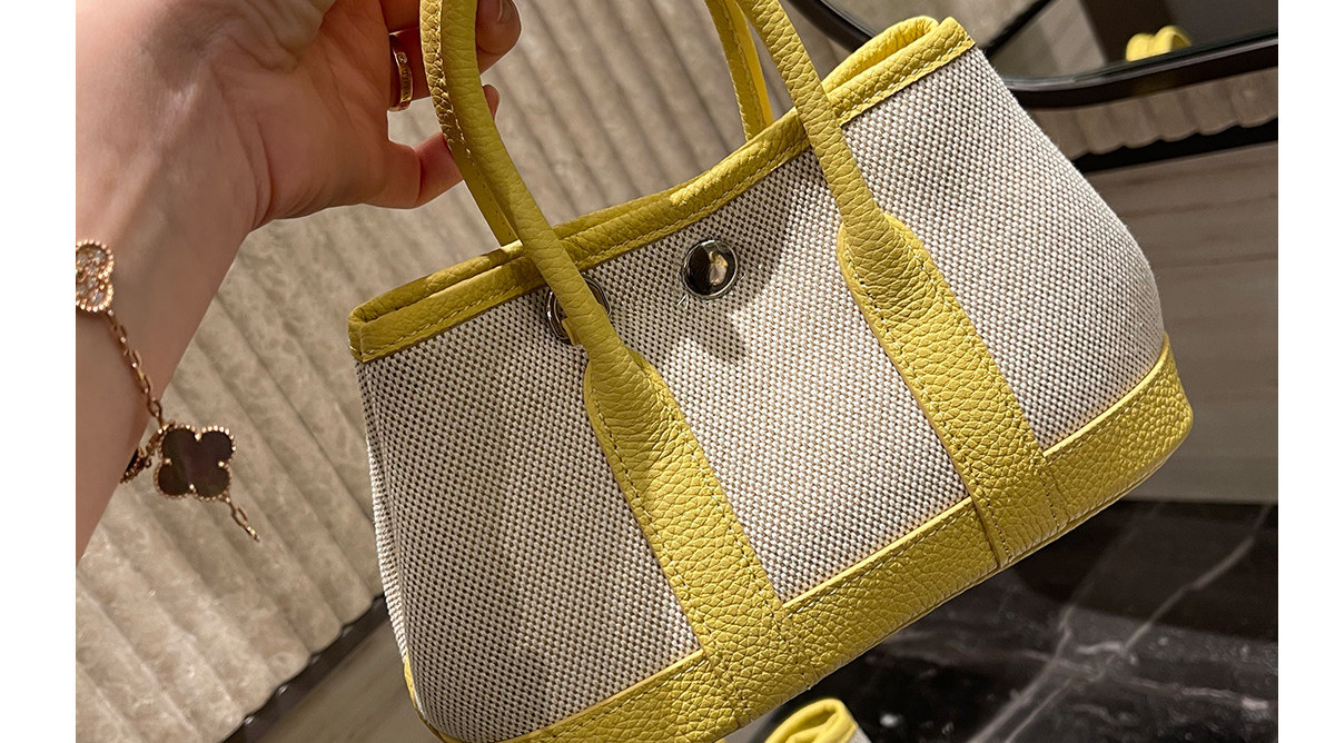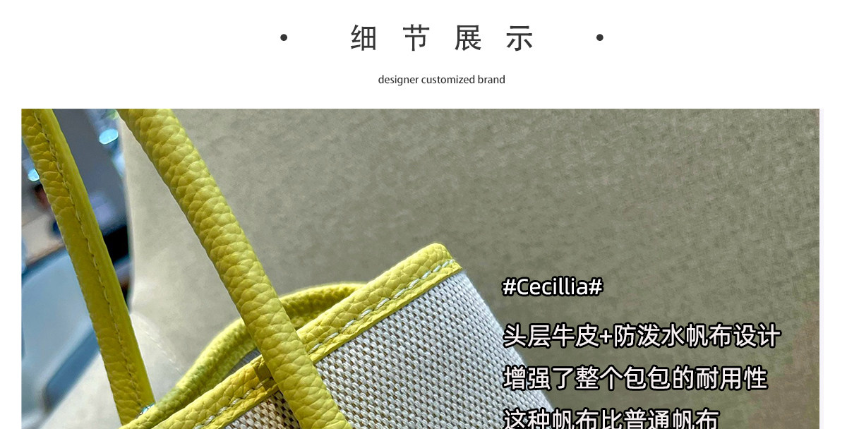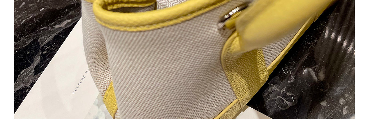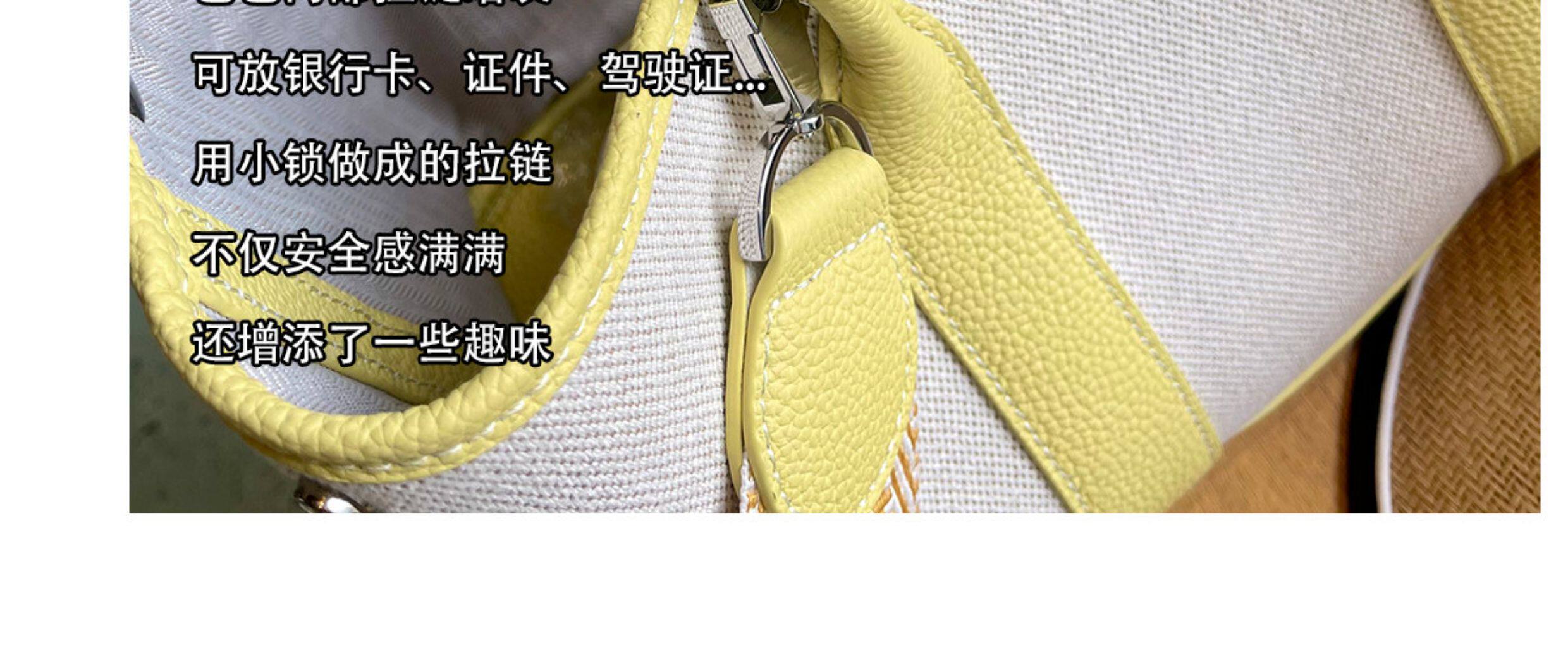 2026新款帆布拼頭層牛皮大容量花園包女真皮手提包黃色單肩斜後後背包