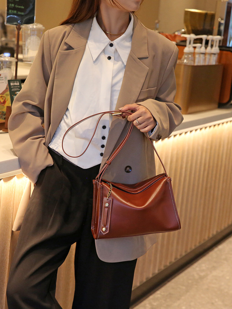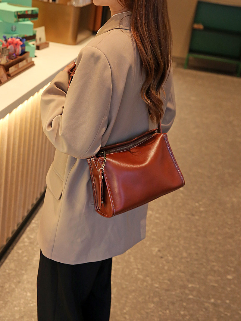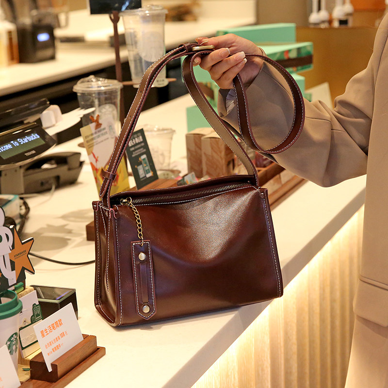 包包女包2026春夏新款真皮大容量單肩斜後後背包高級感寬皮肩帶休閒包