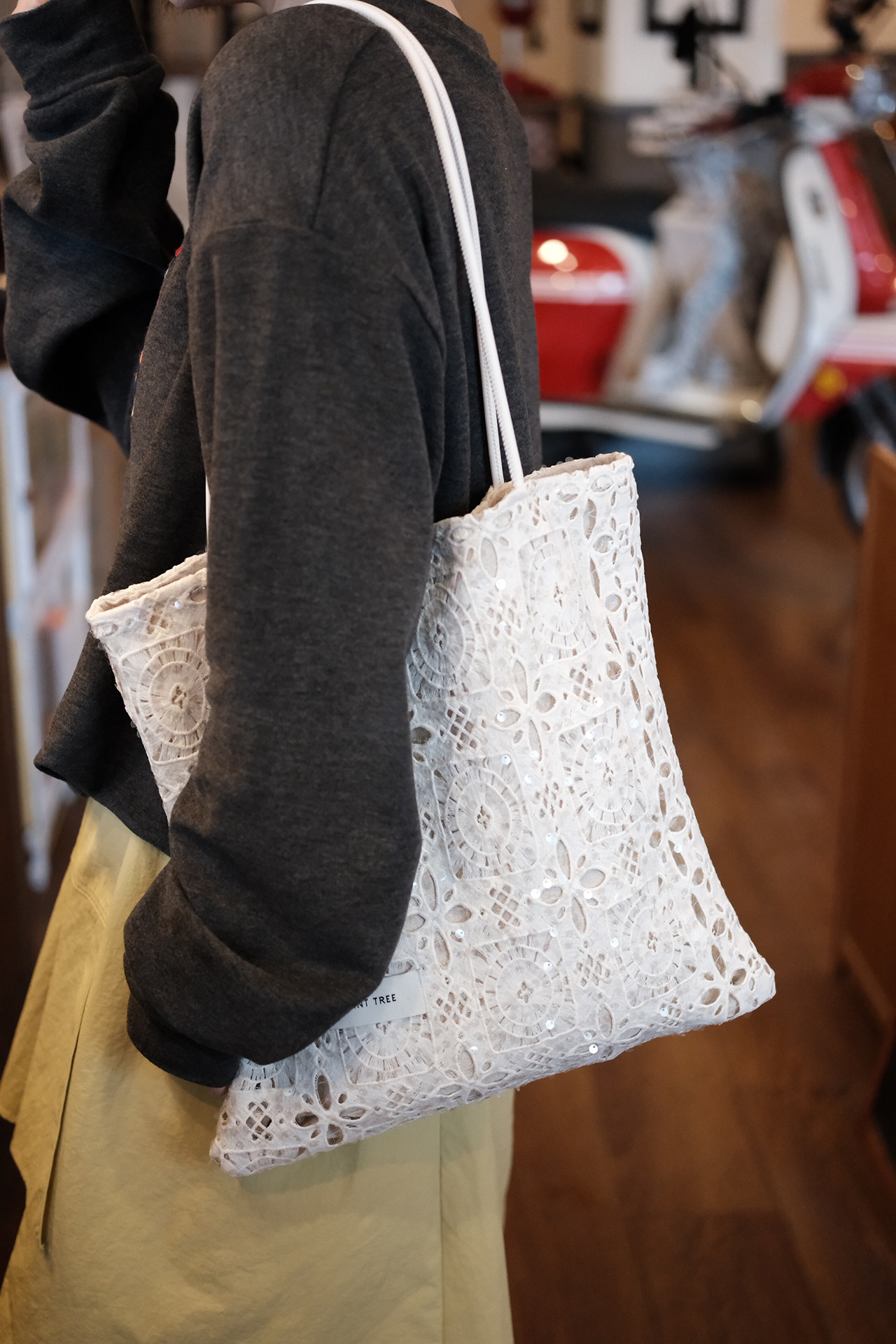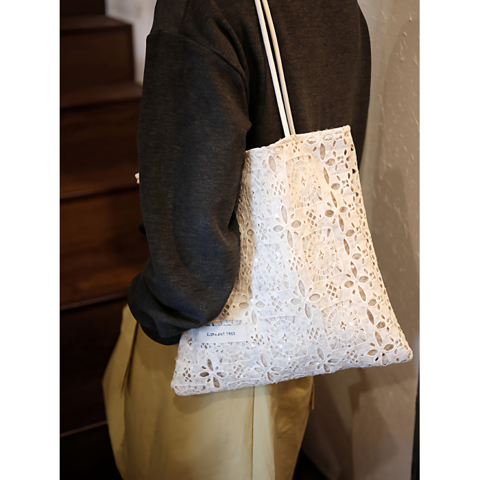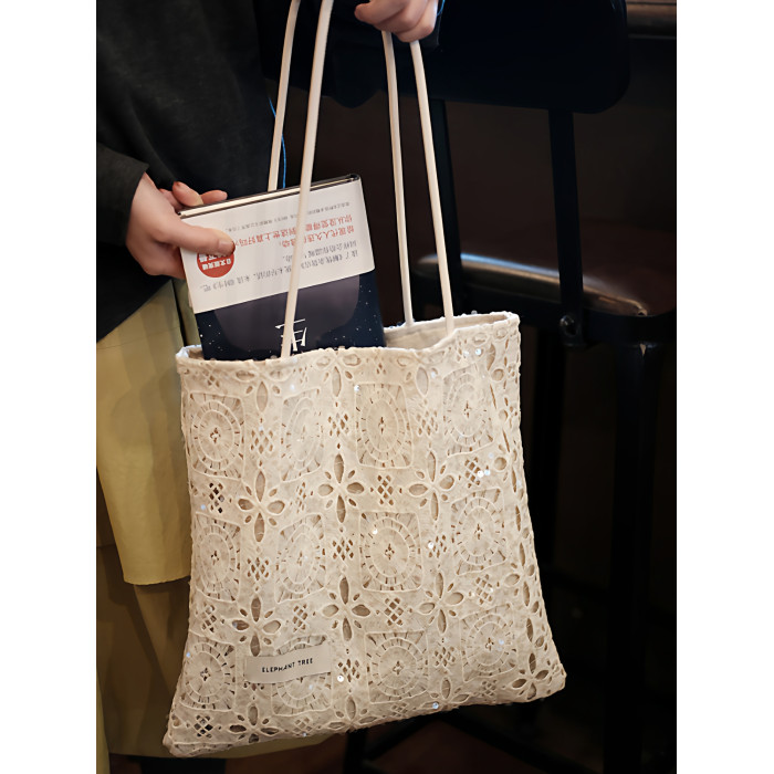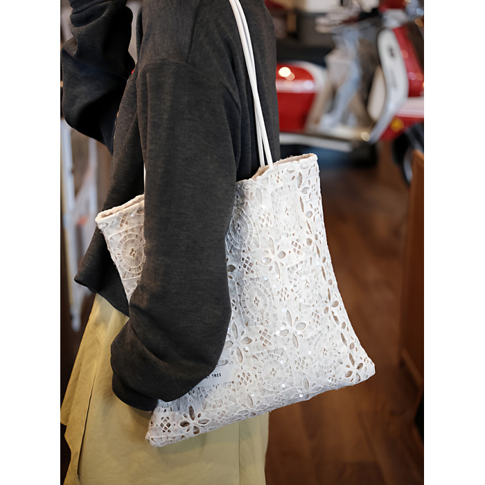 亮片白色蕾絲單肩包托特包大容量小衆設計通勤女2026春夏帆布包