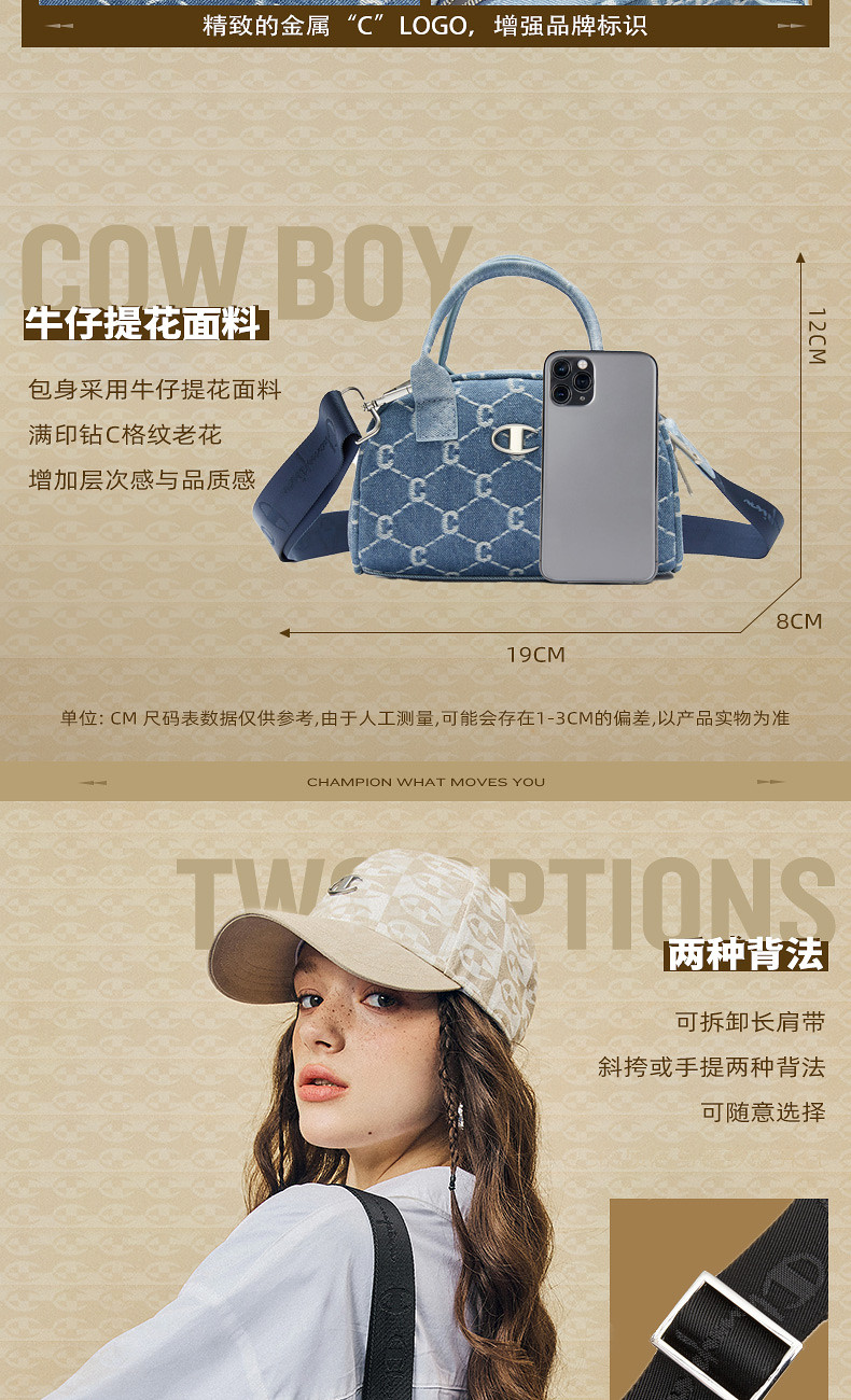 Champion冠軍官方保齡球包女老花單肩手提小拎包斜背通勤波士頓包