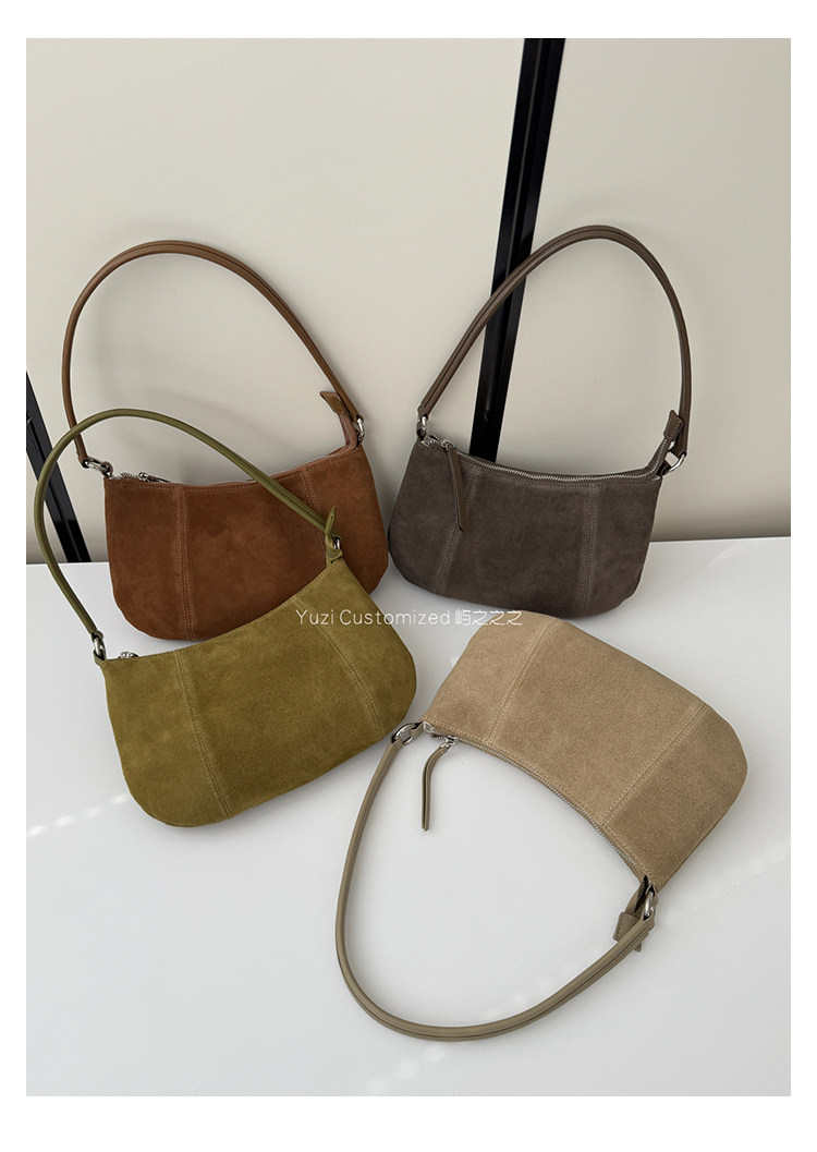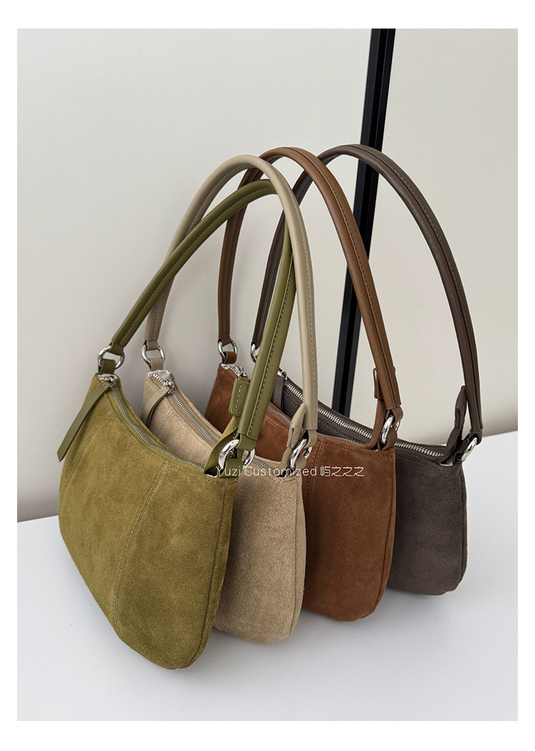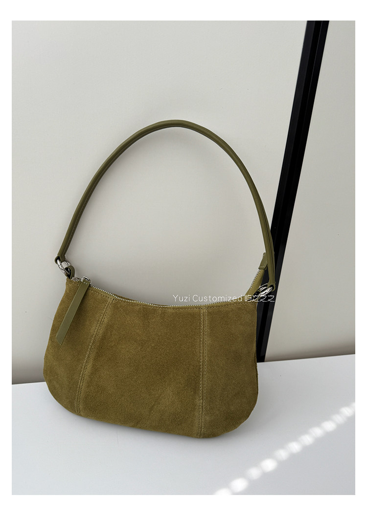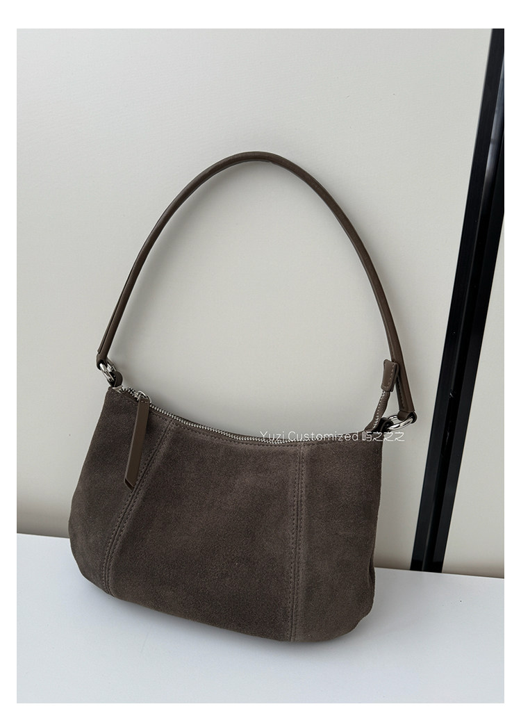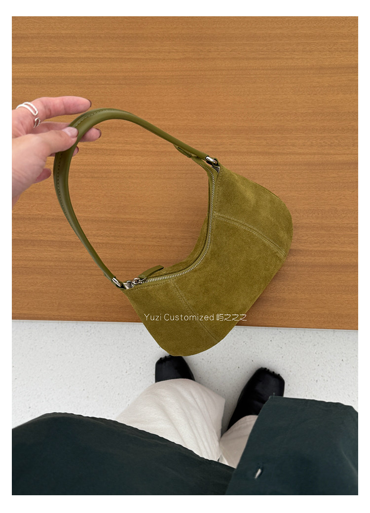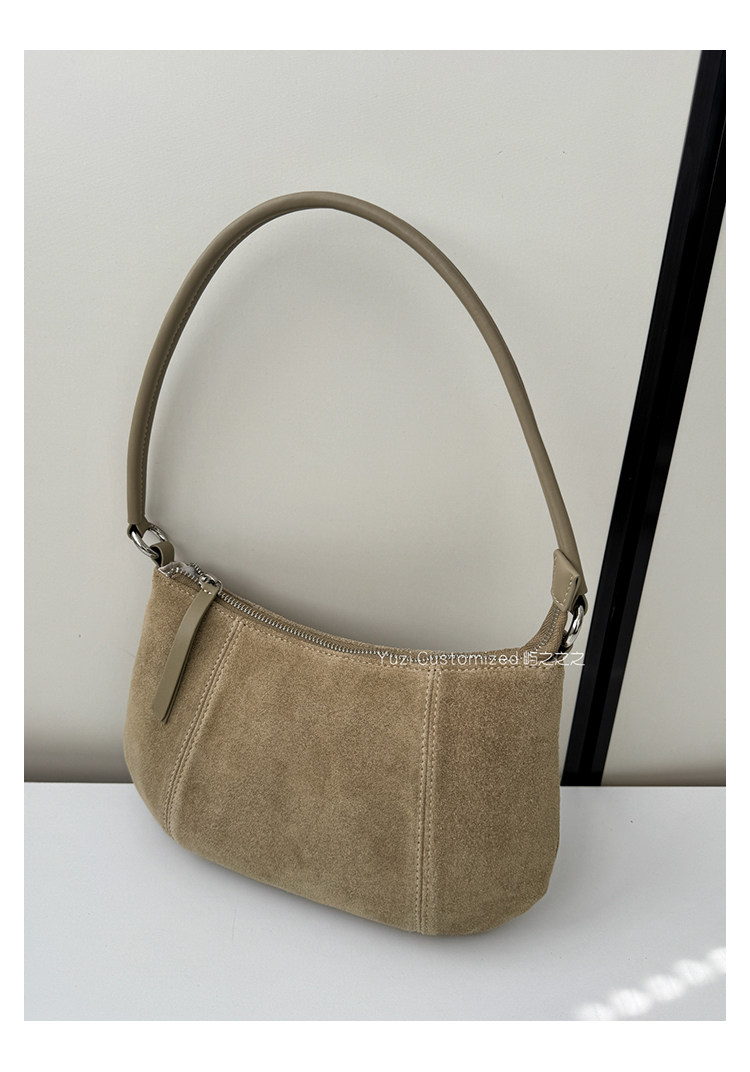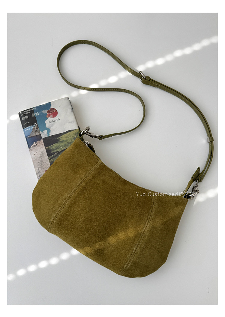 嶼之之之 2025秋冬新磨砂牛皮法式月牙包 輕奢小資新月斜背腋下包