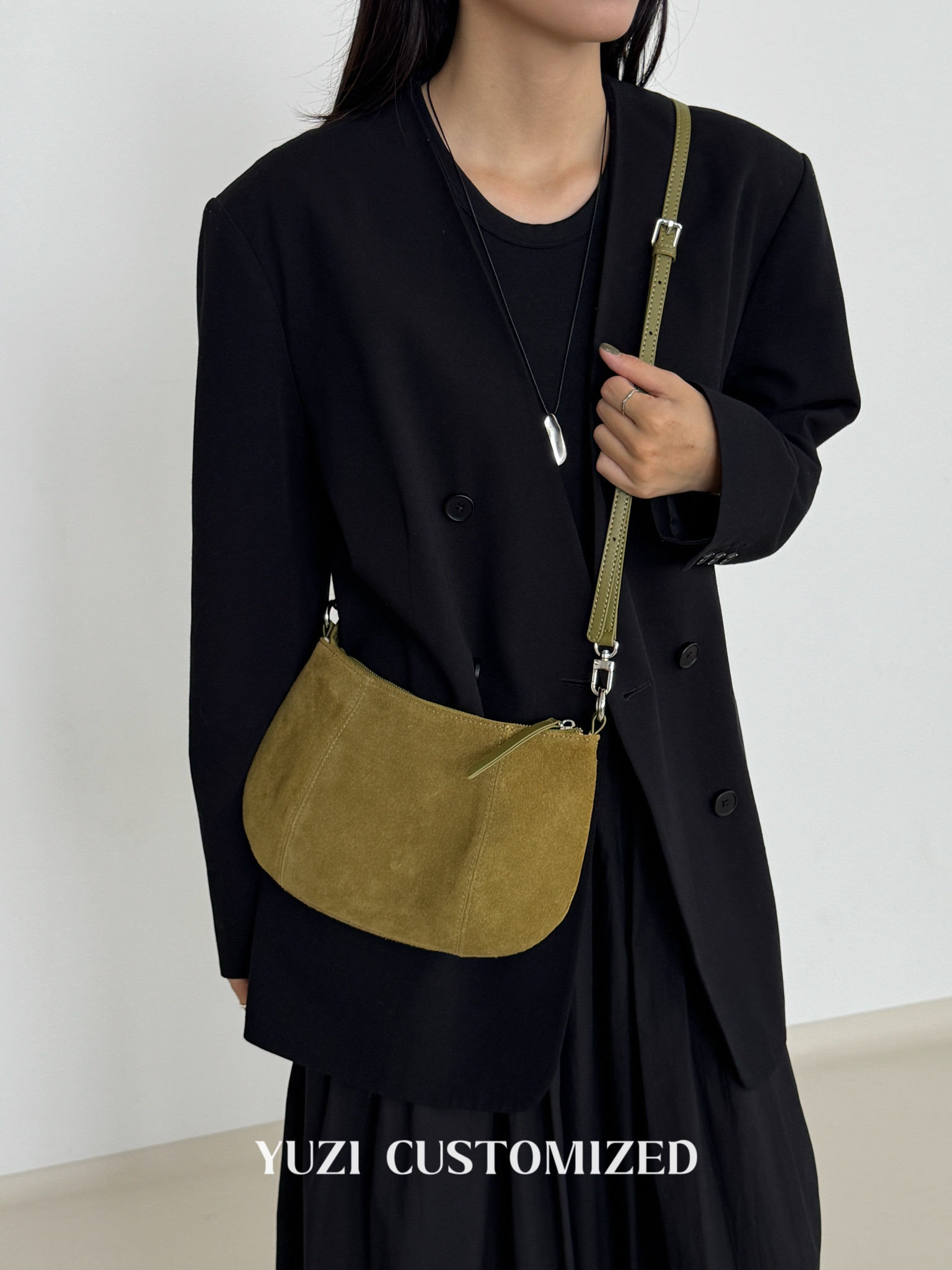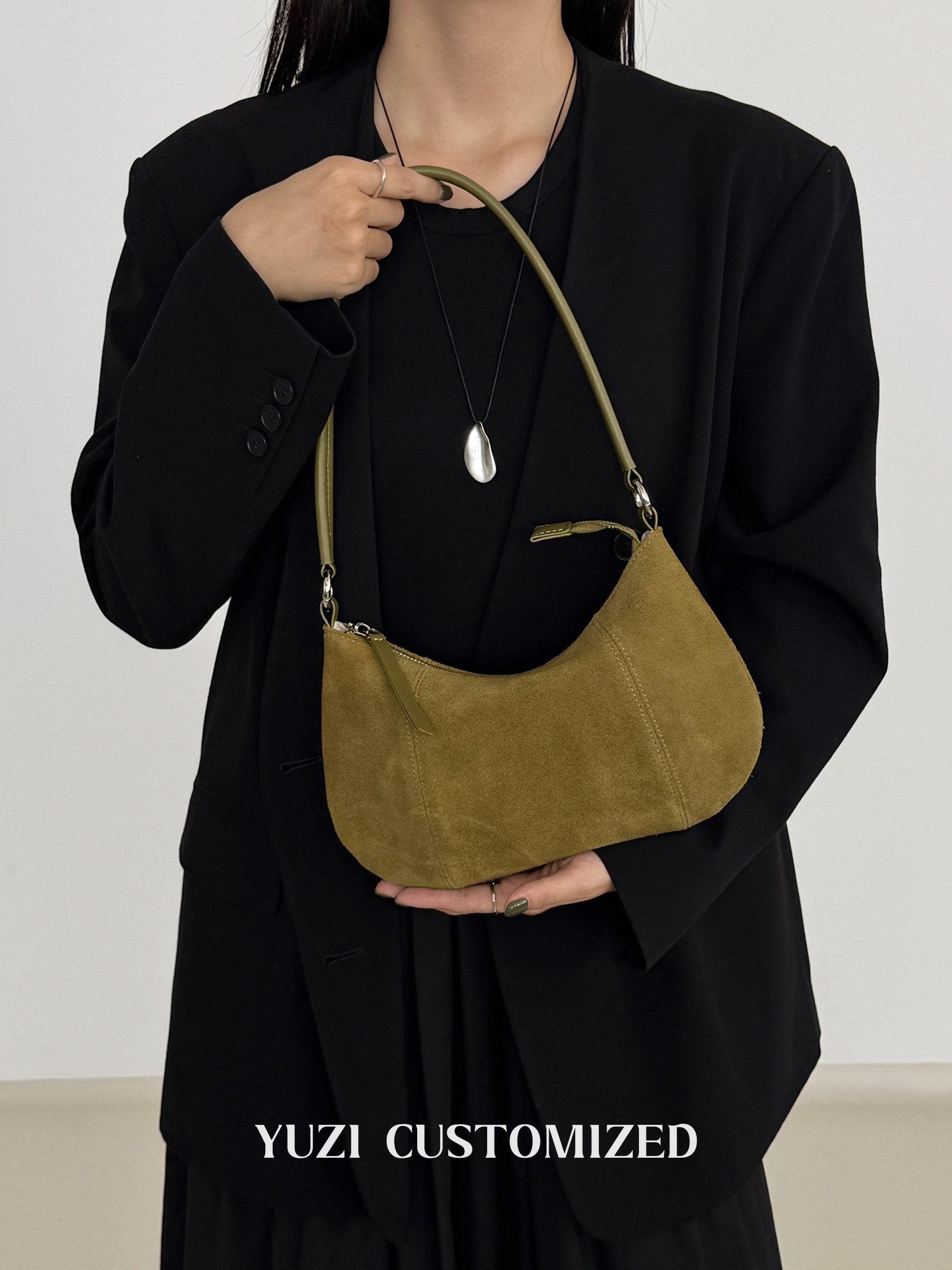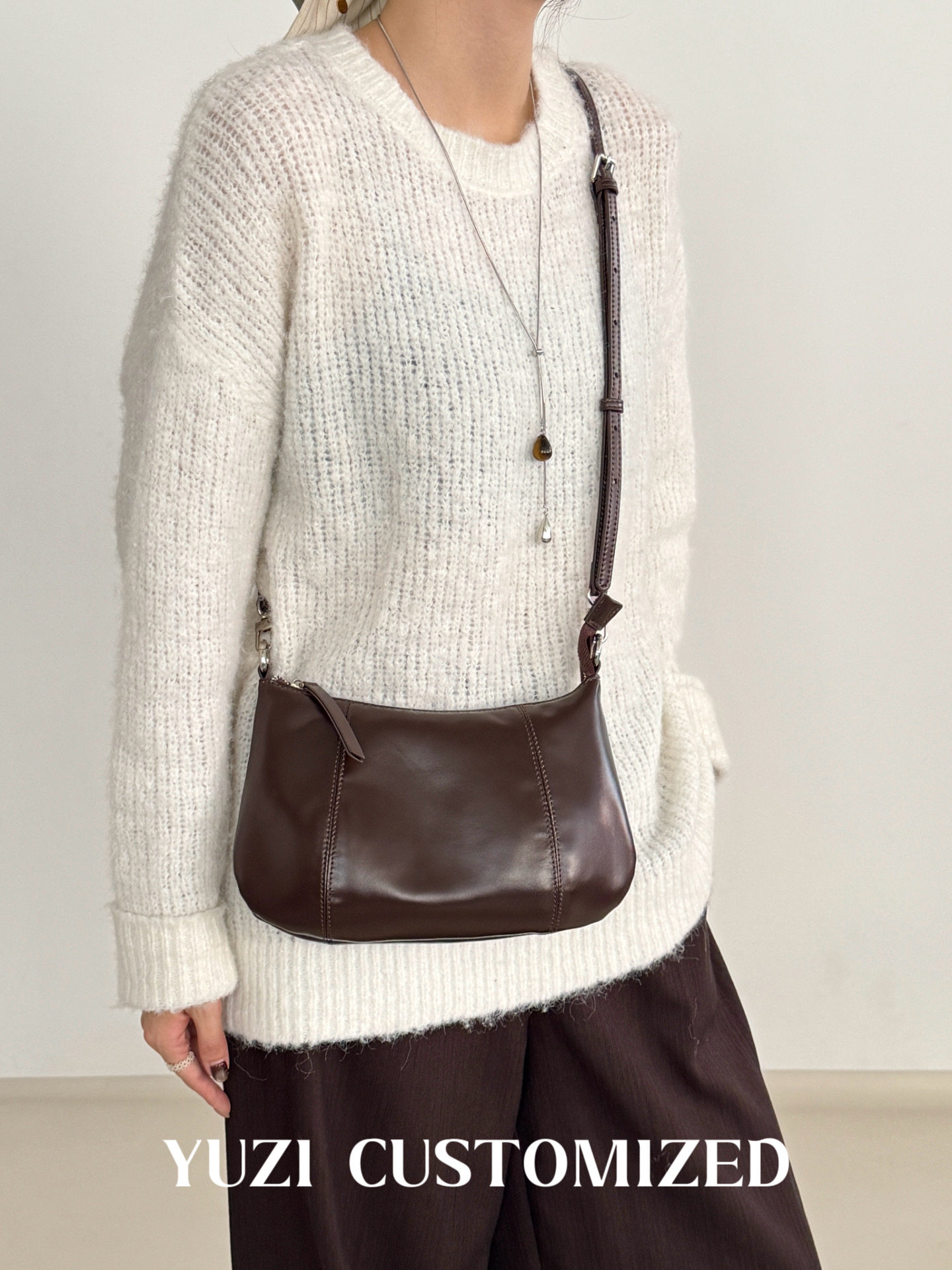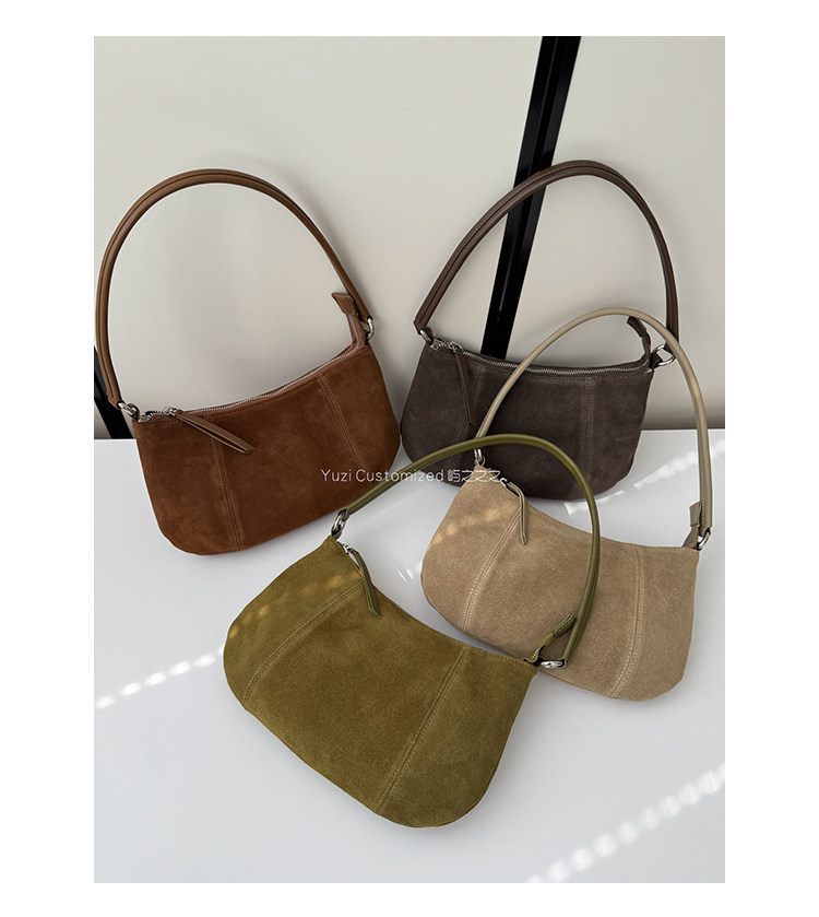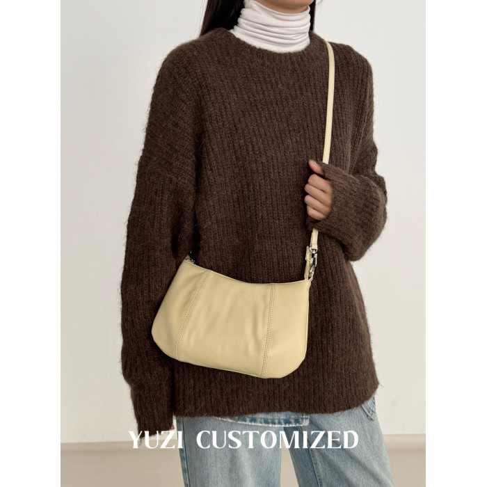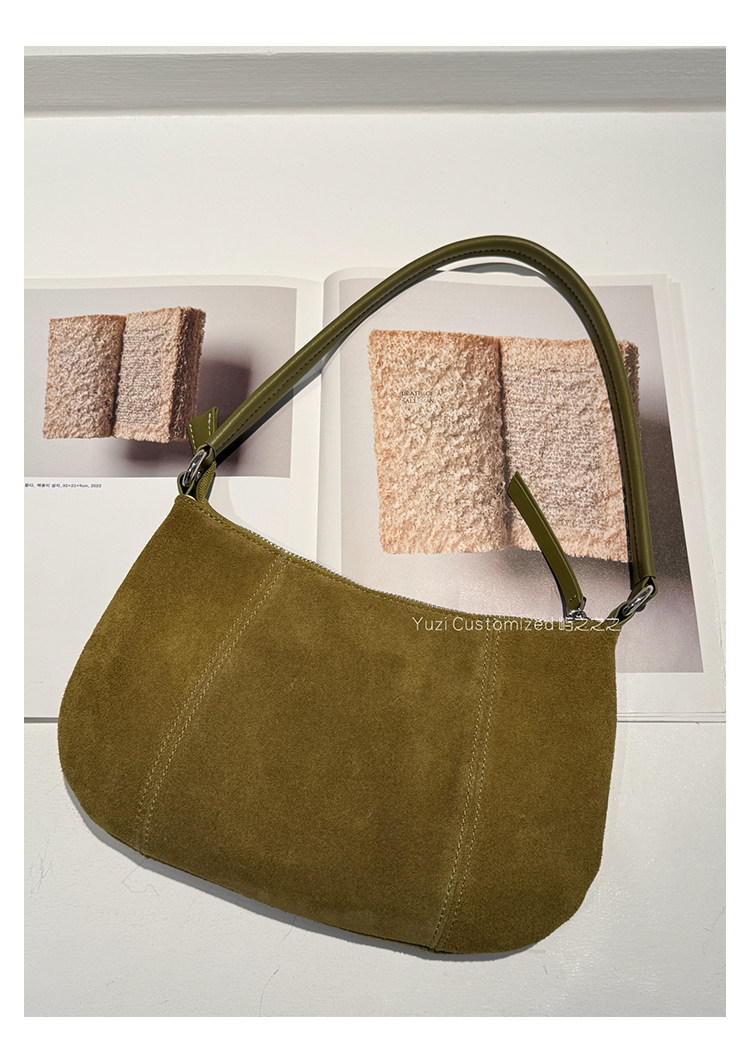 嶼之之之 2025秋冬新磨砂牛皮法式月牙包 輕奢小資新月斜背腋下包