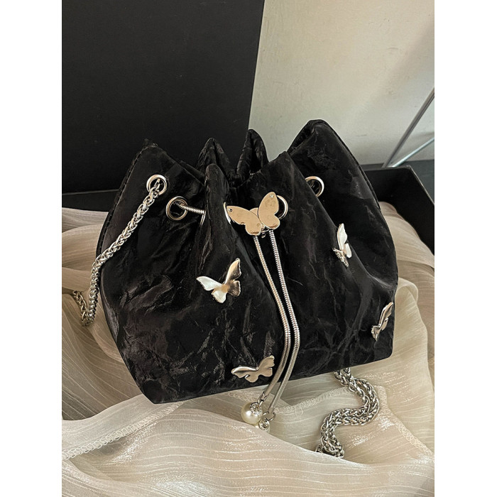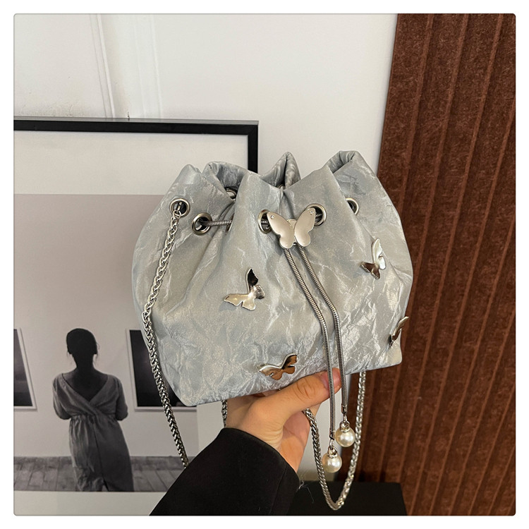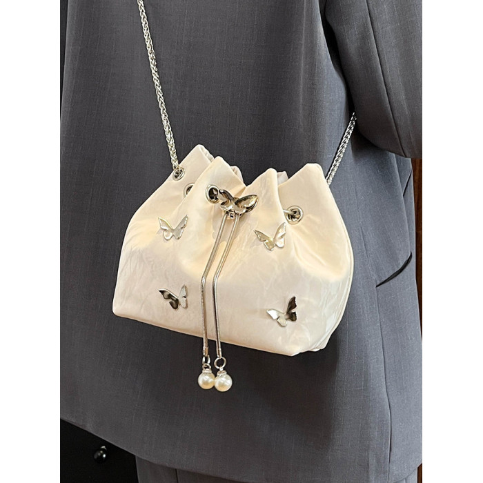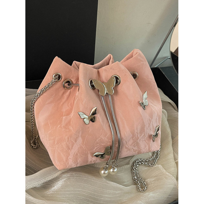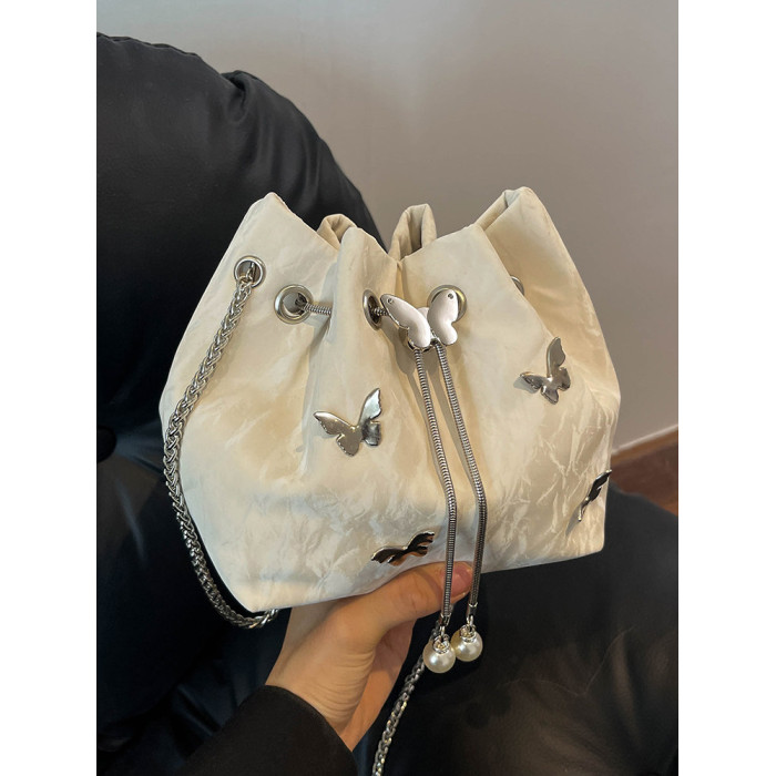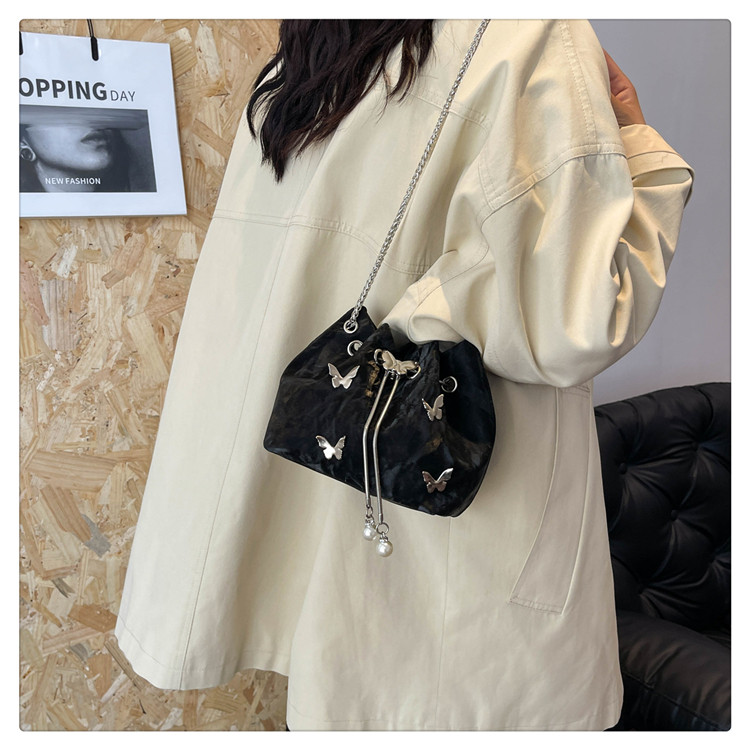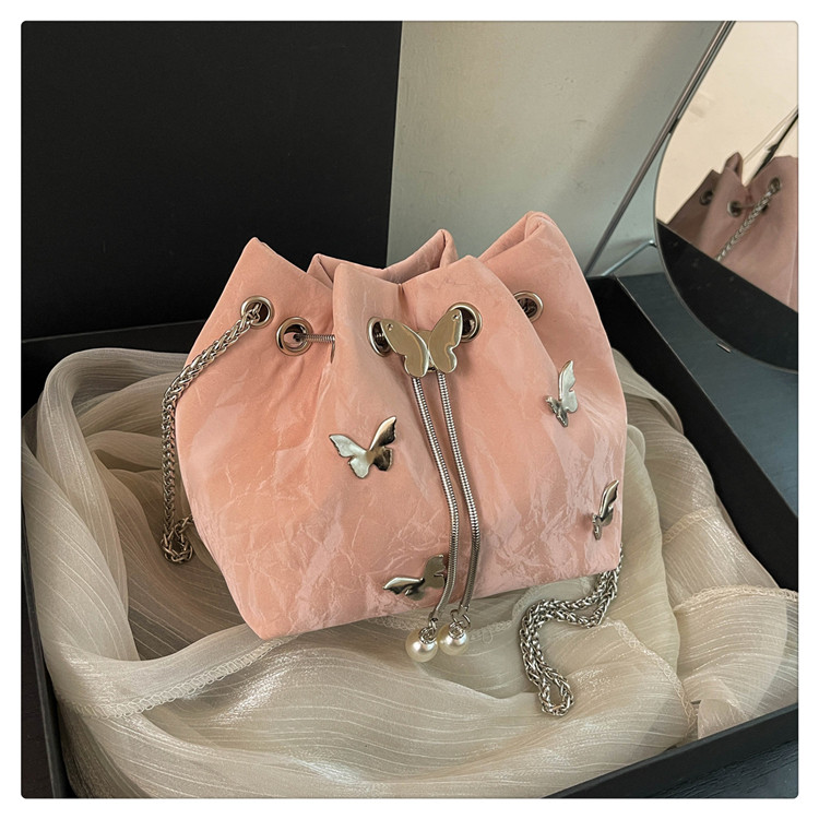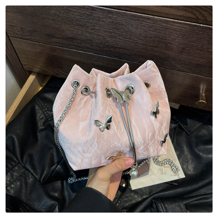 今年流行質感斜背小包包女2026超火新款時尚鏈條單肩包蝴蝶水桶包