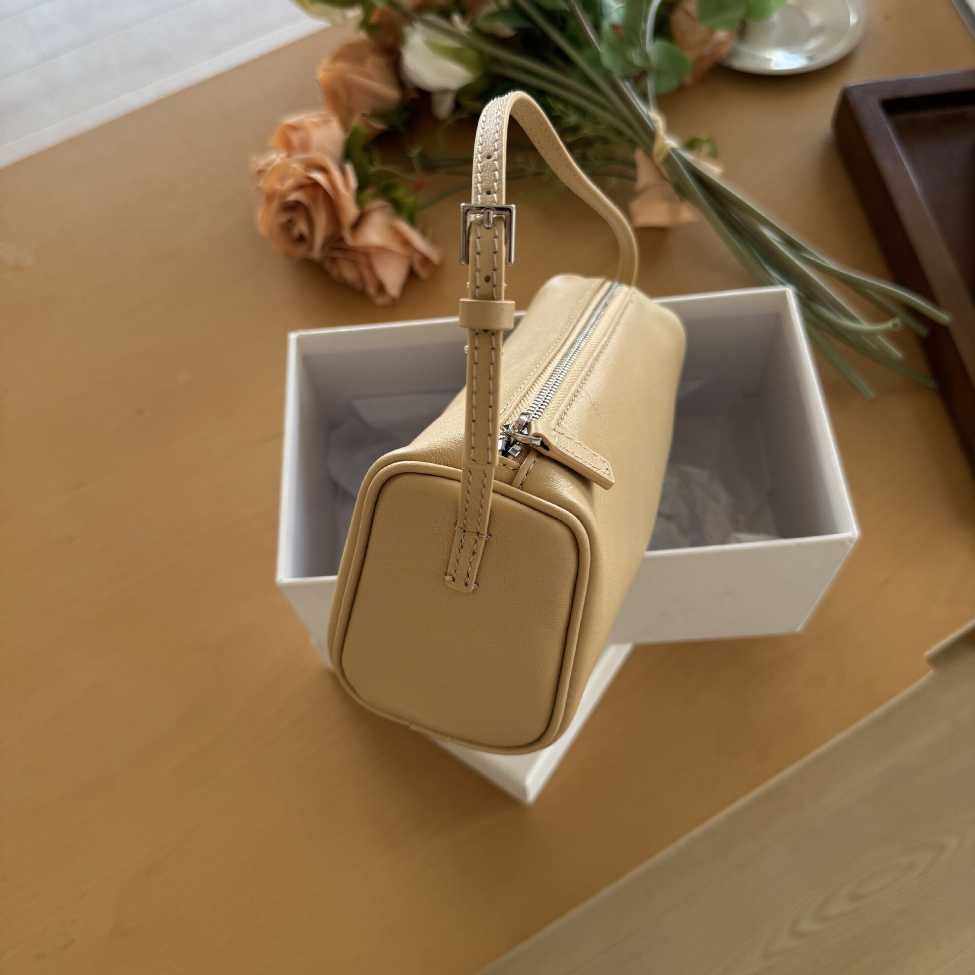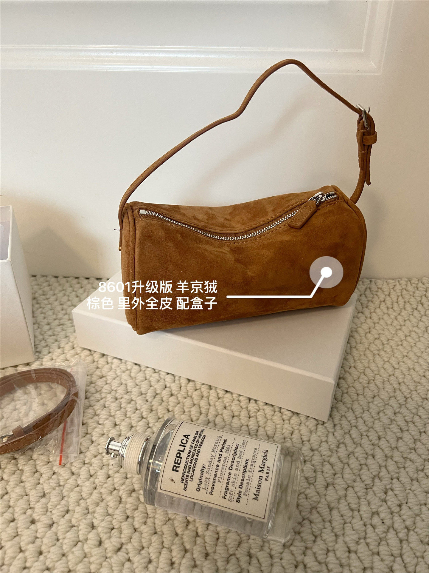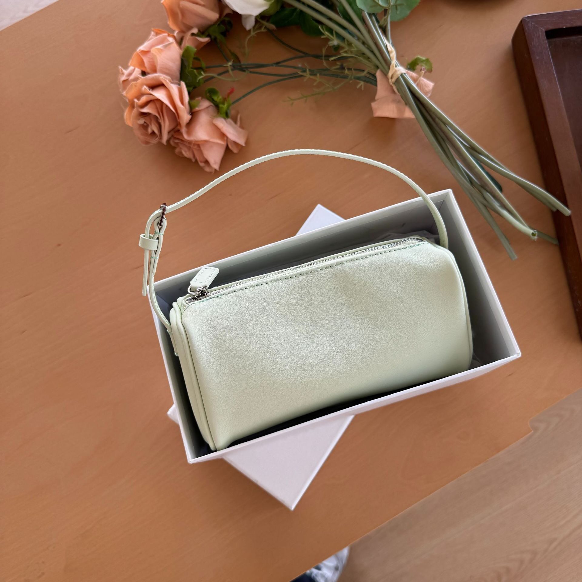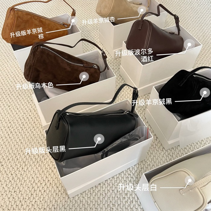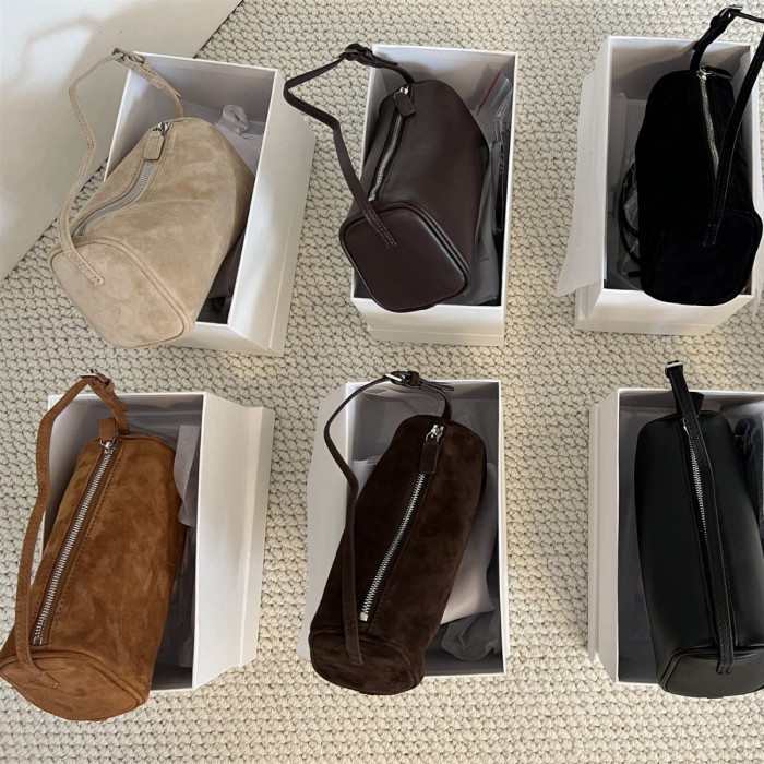 小衆row筆筒包麂皮絨腋下包90s秋冬季新款小方包真皮手提包筆袋包
