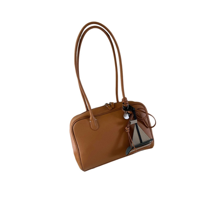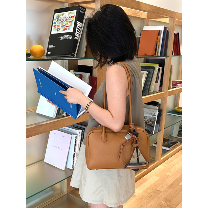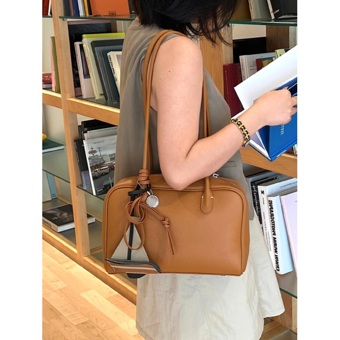 真皮大容量托特包包女式2026新款高級感復古通勤手提單肩波士頓包