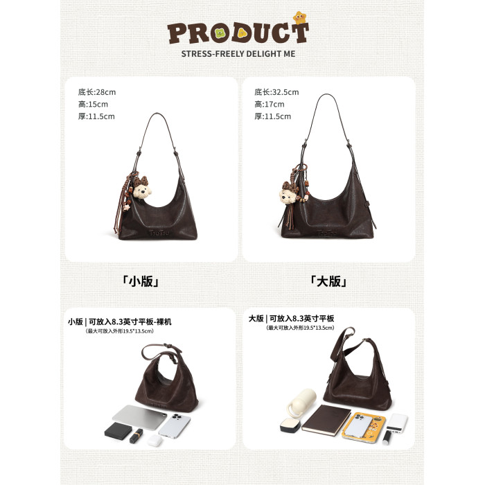 生日38禮物TOUTOU托特包大容量通勤hobo棕色腋下單肩斜後後背包女包包