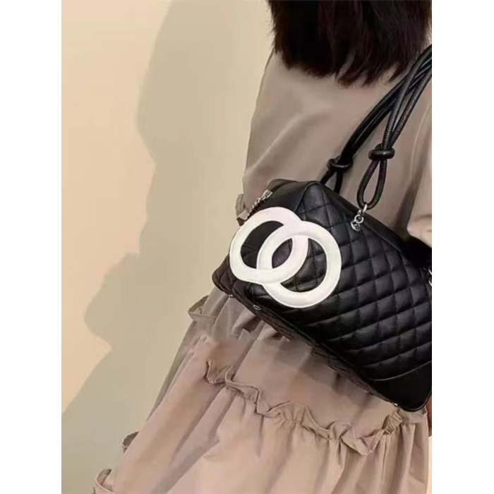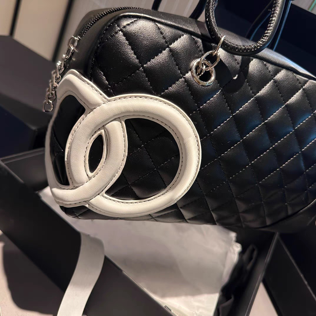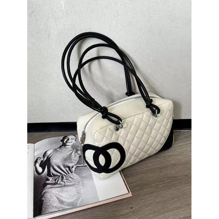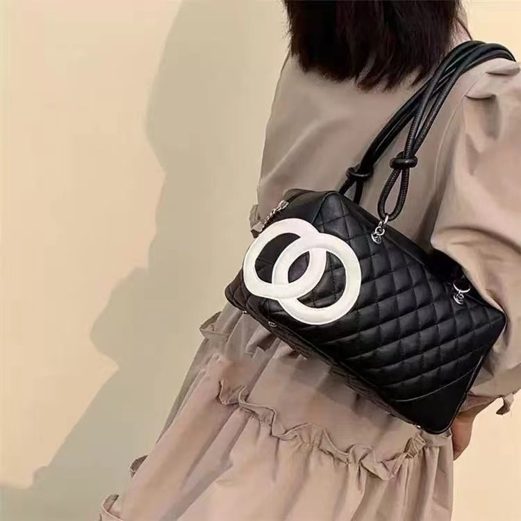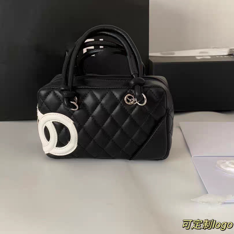 新品網紅同款時尚百搭撞色菱格拉鍊設計方形單肩手提包保齡球女包