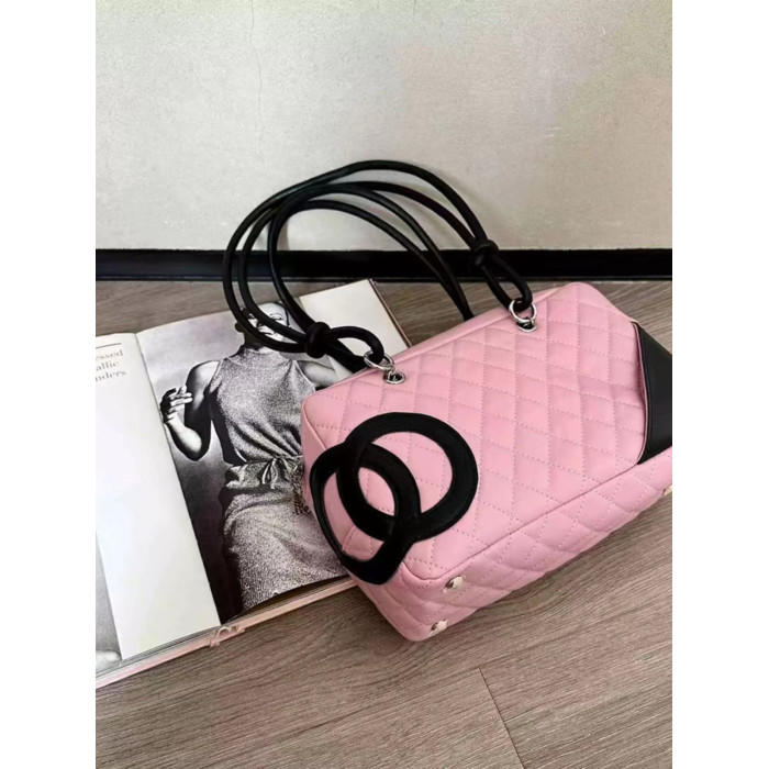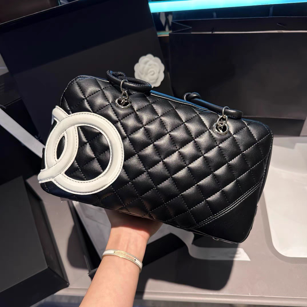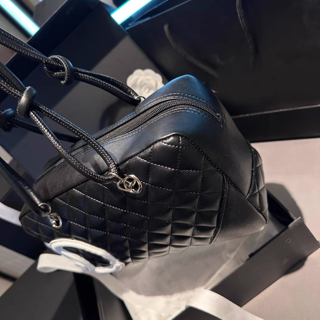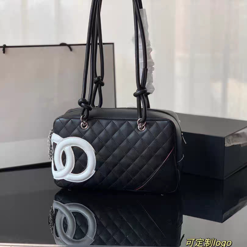 新品網紅同款時尚百搭撞色菱格拉鍊設計方形單肩手提包保齡球女包