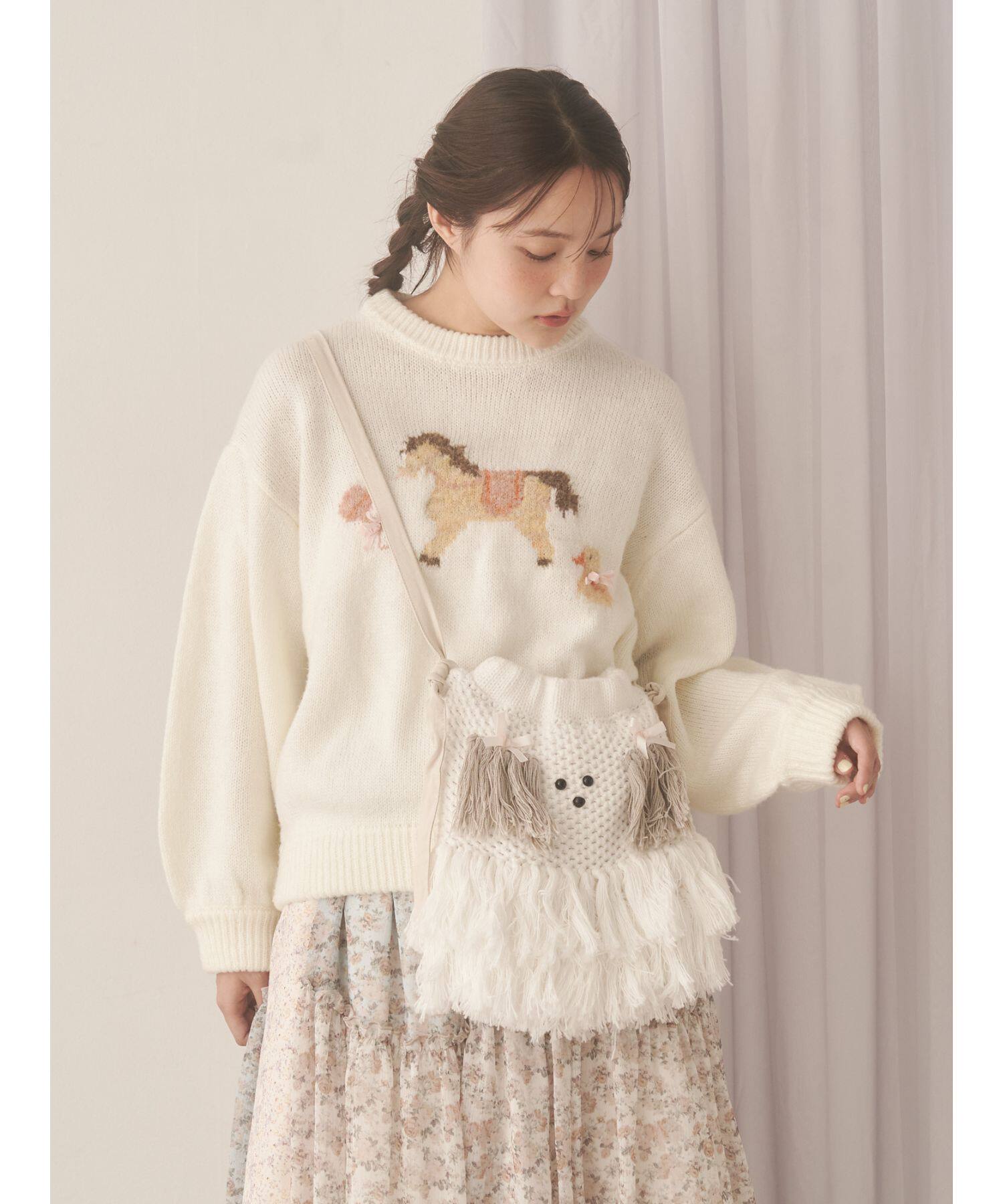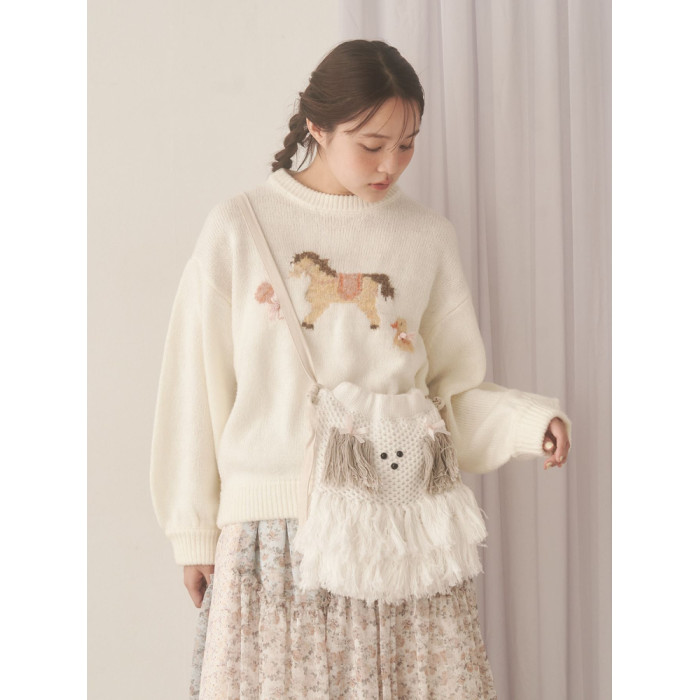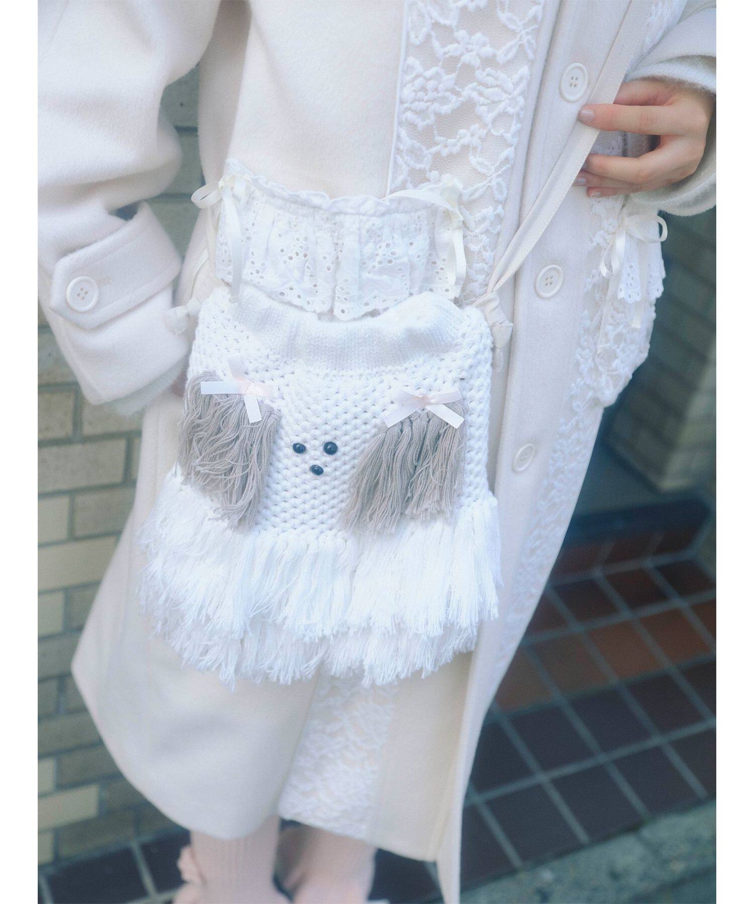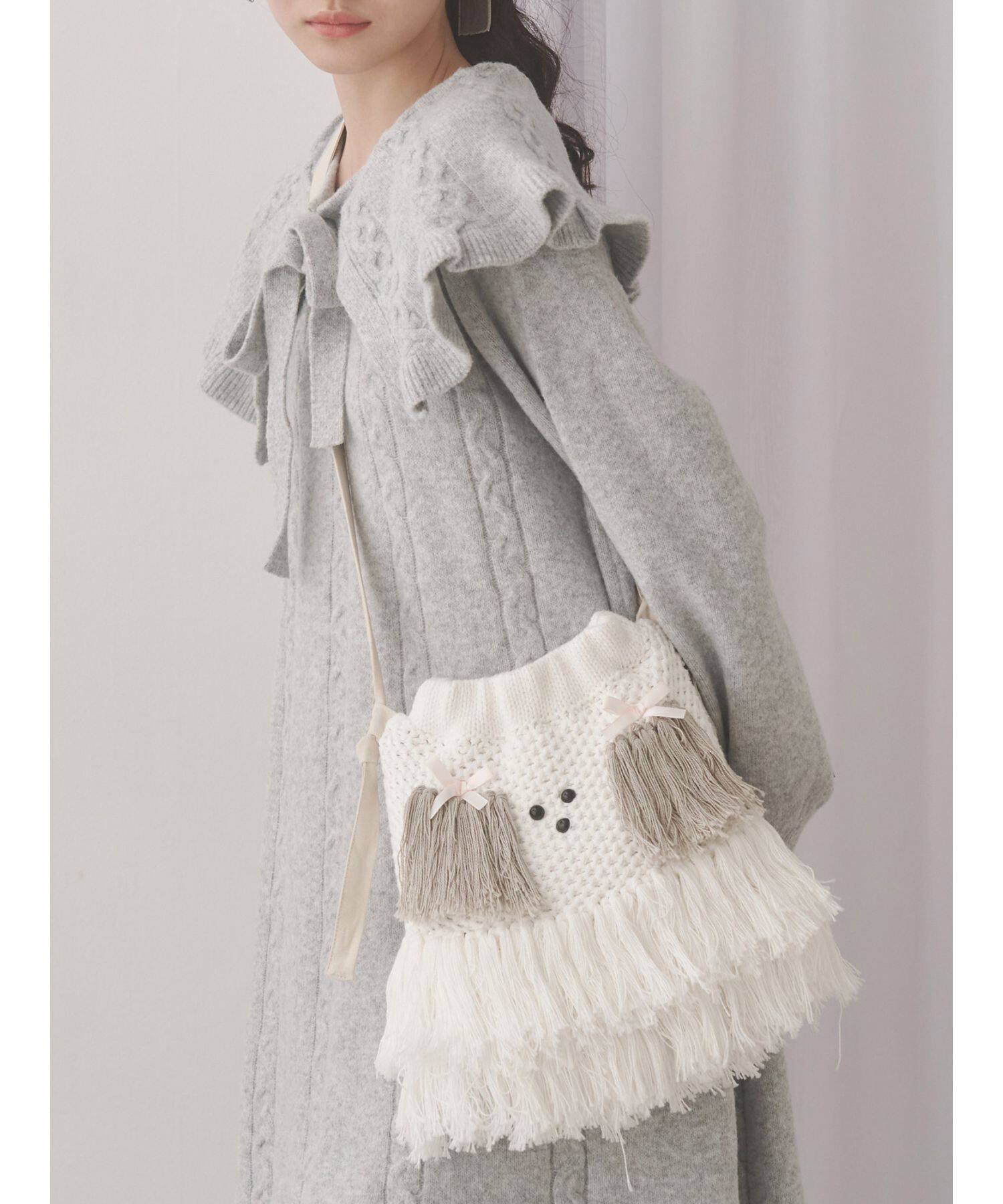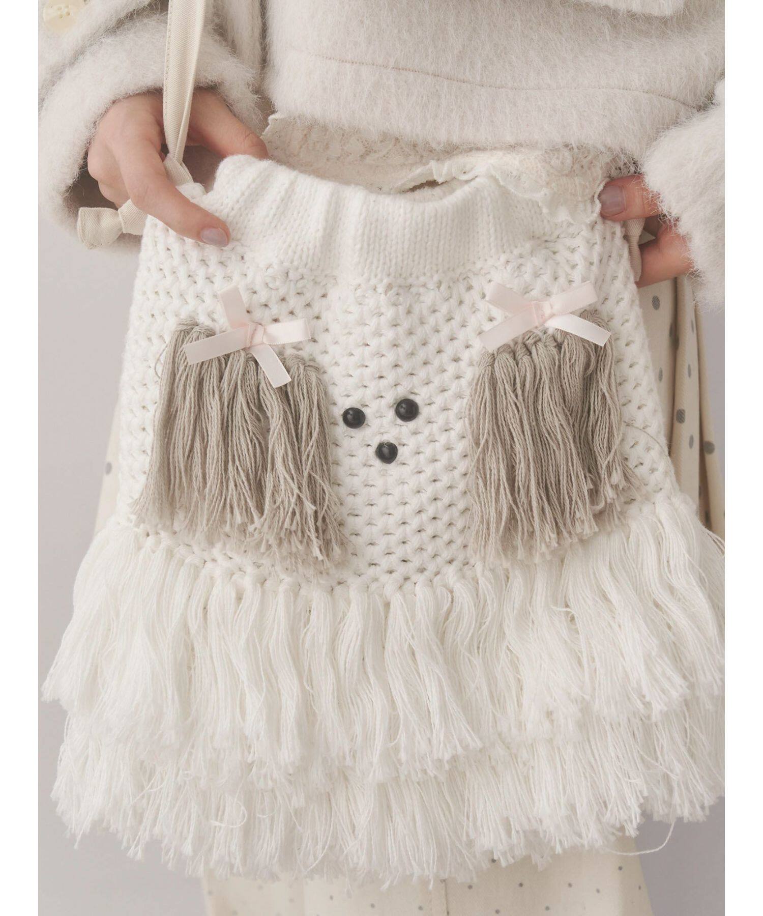 獨元merry 25年新款甜美可愛毛絨狗狗流蘇斜後後背包女針織包包單肩包