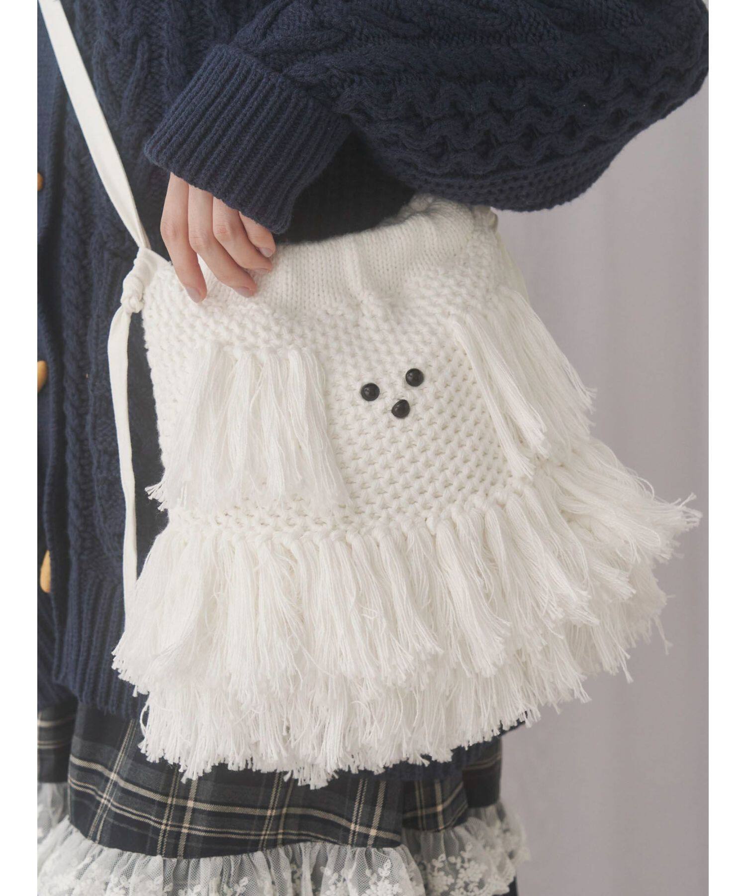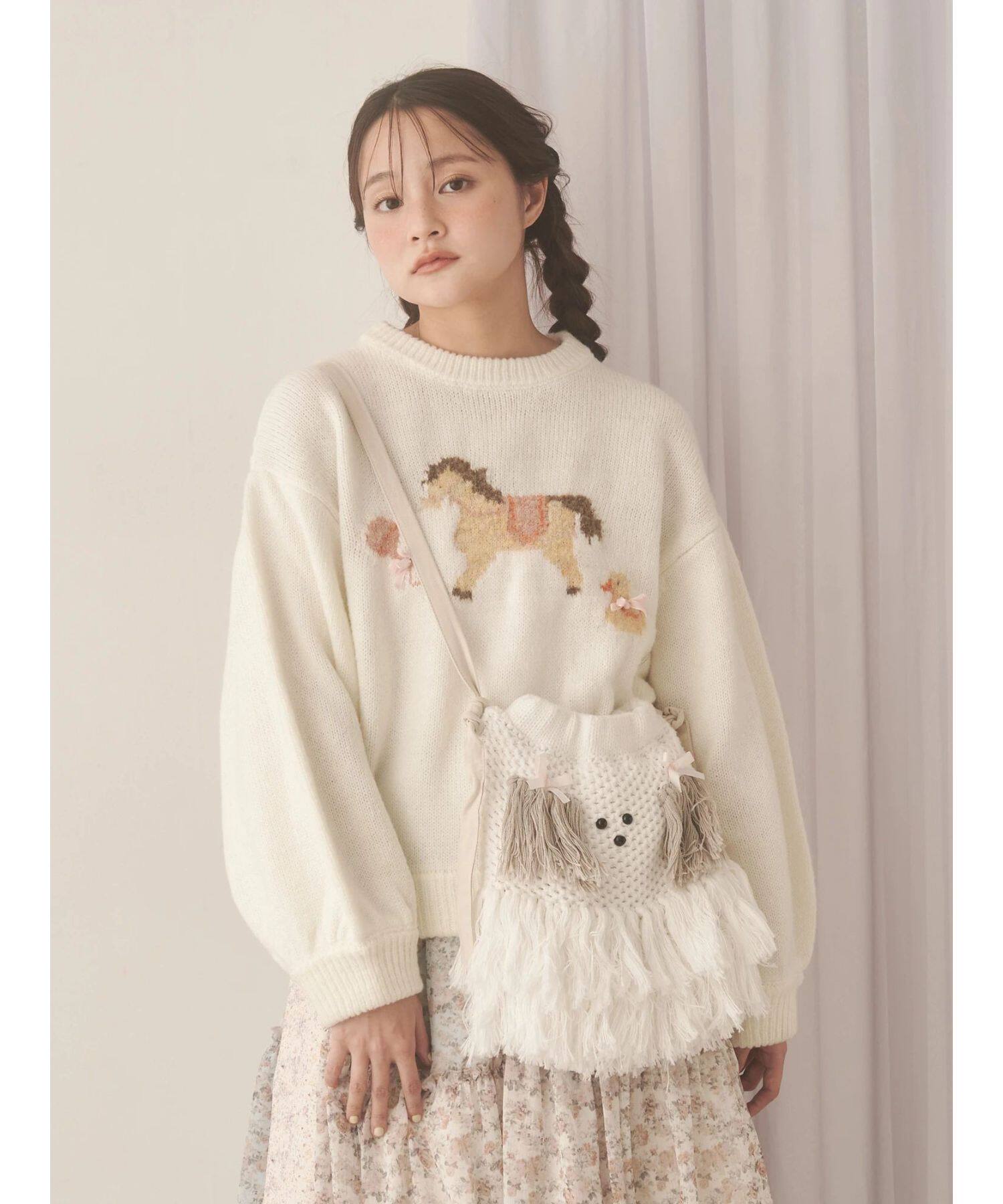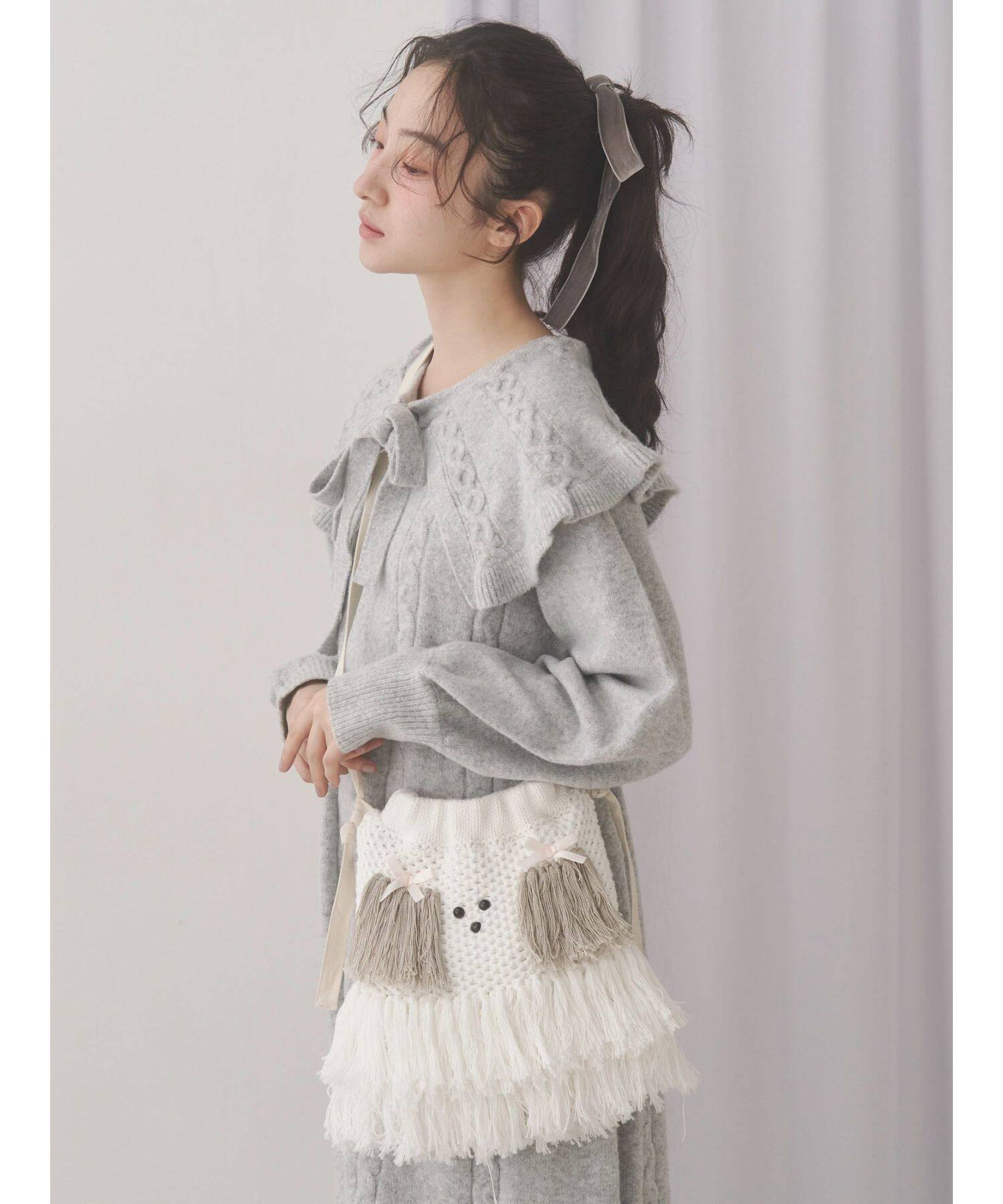 獨元merry 25年新款甜美可愛毛絨狗狗流蘇斜後後背包女針織包包單肩包