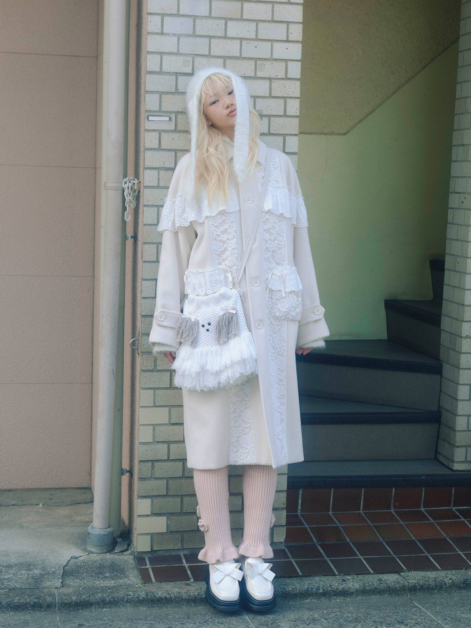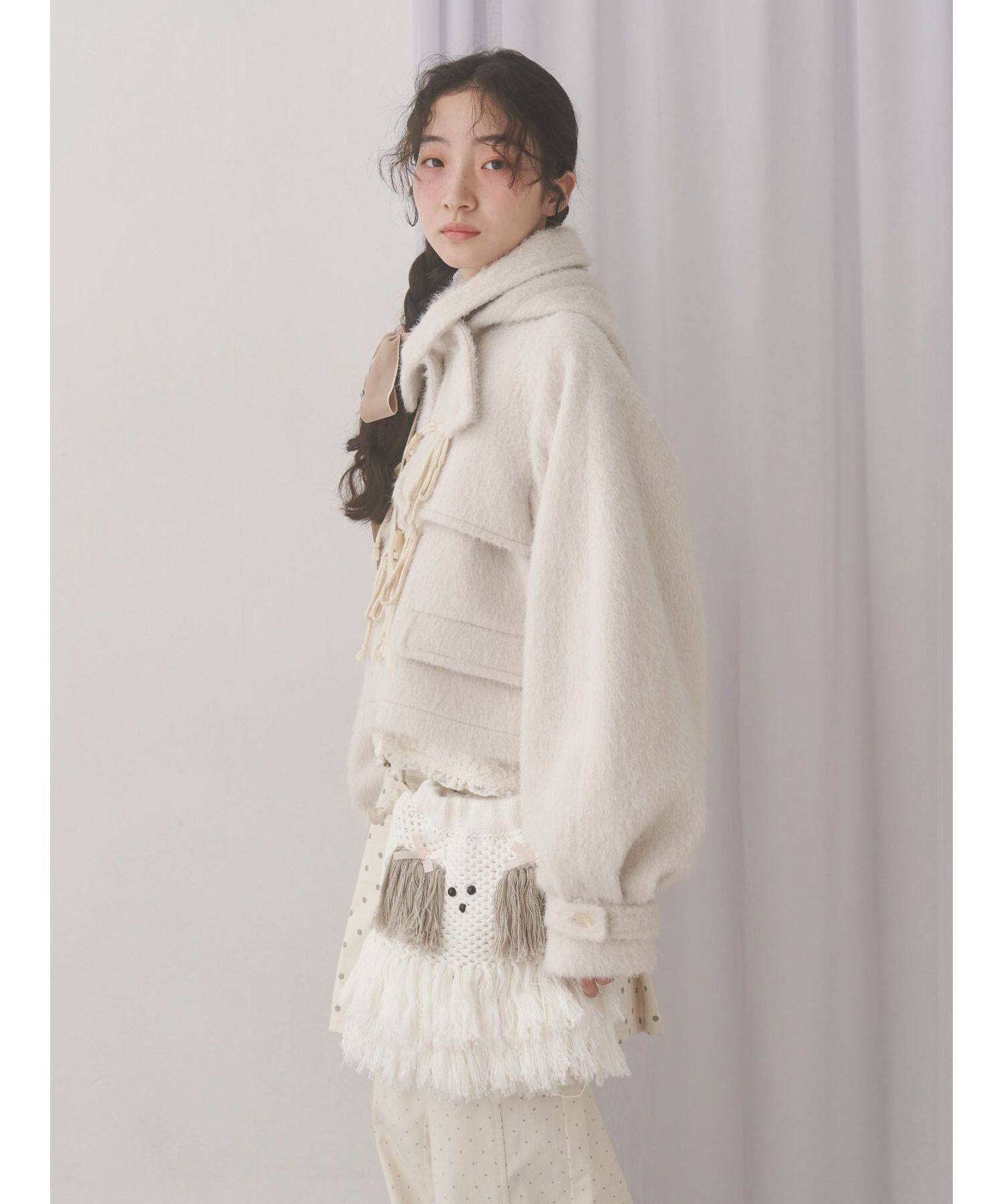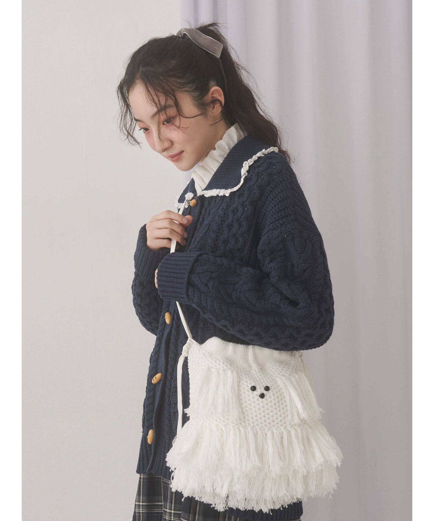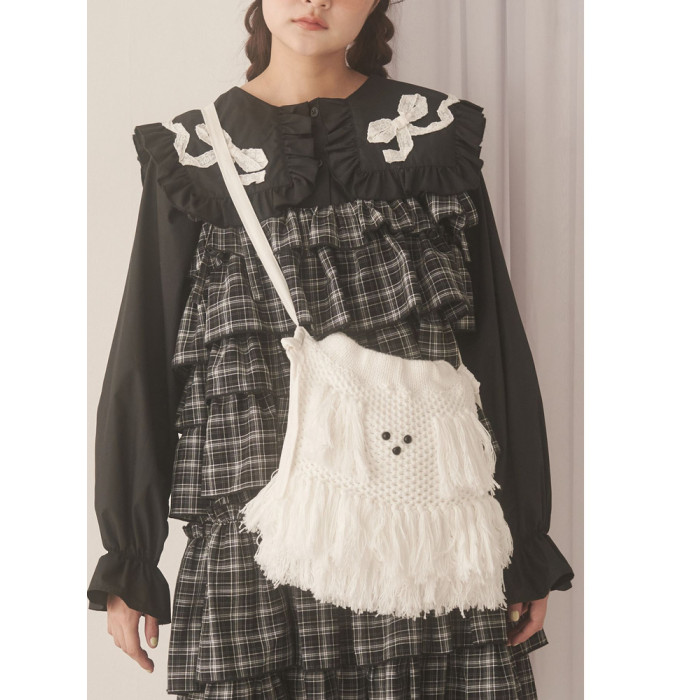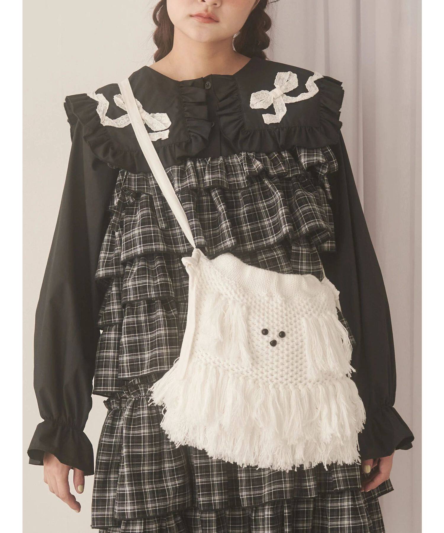 獨元merry 25年新款甜美可愛毛絨狗狗流蘇斜後後背包女針織包包單肩包