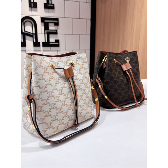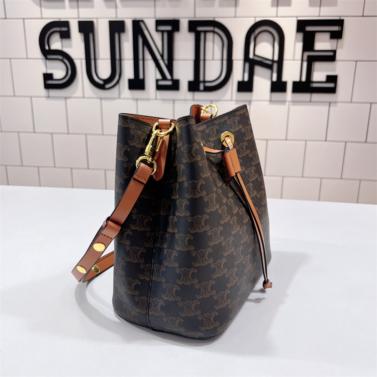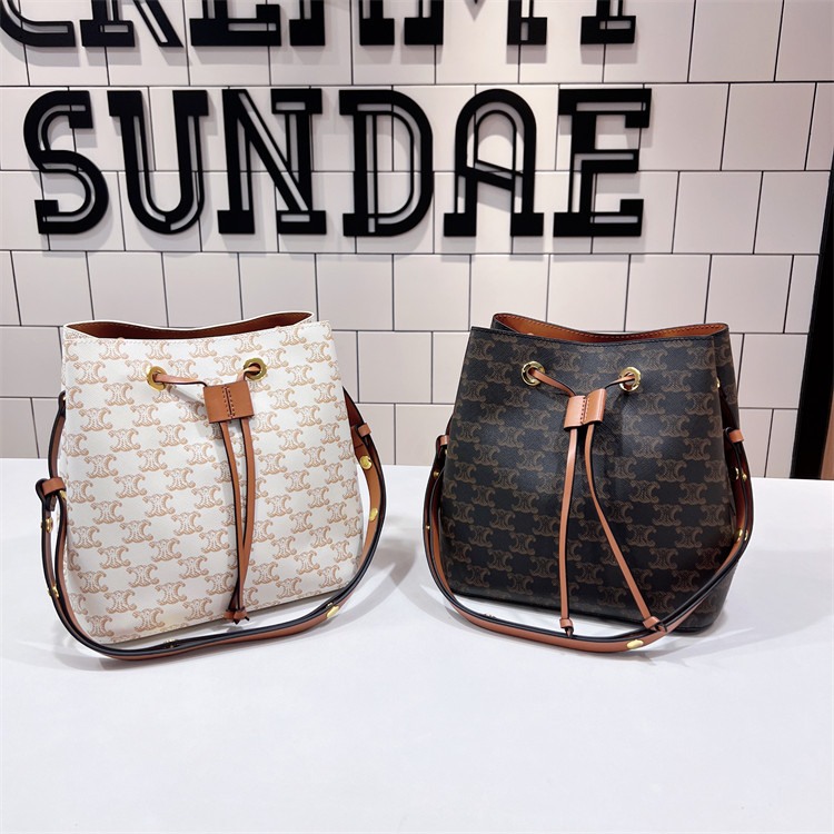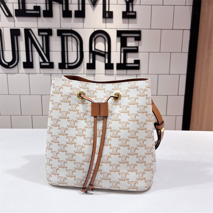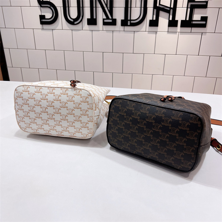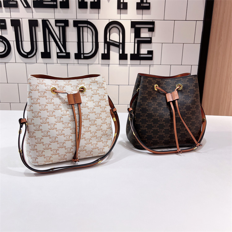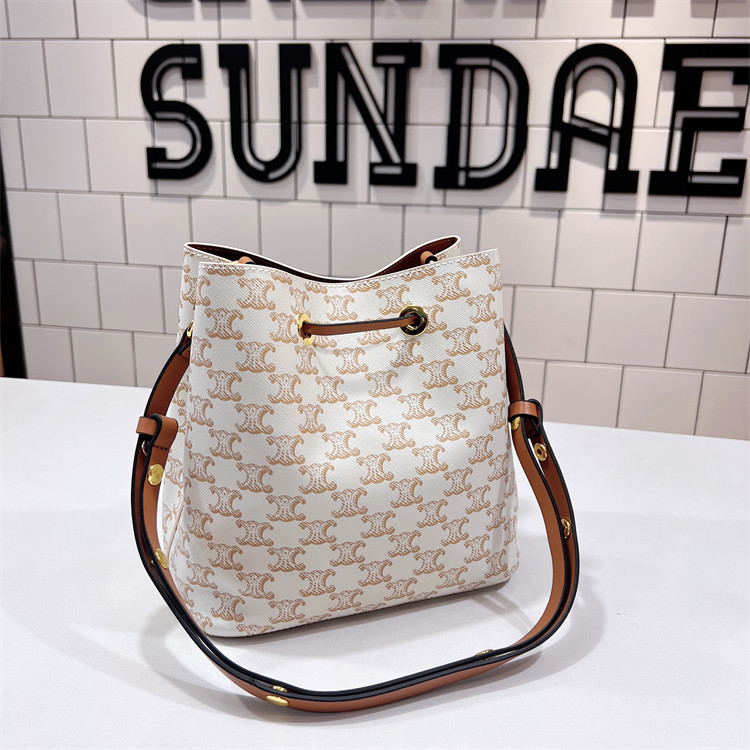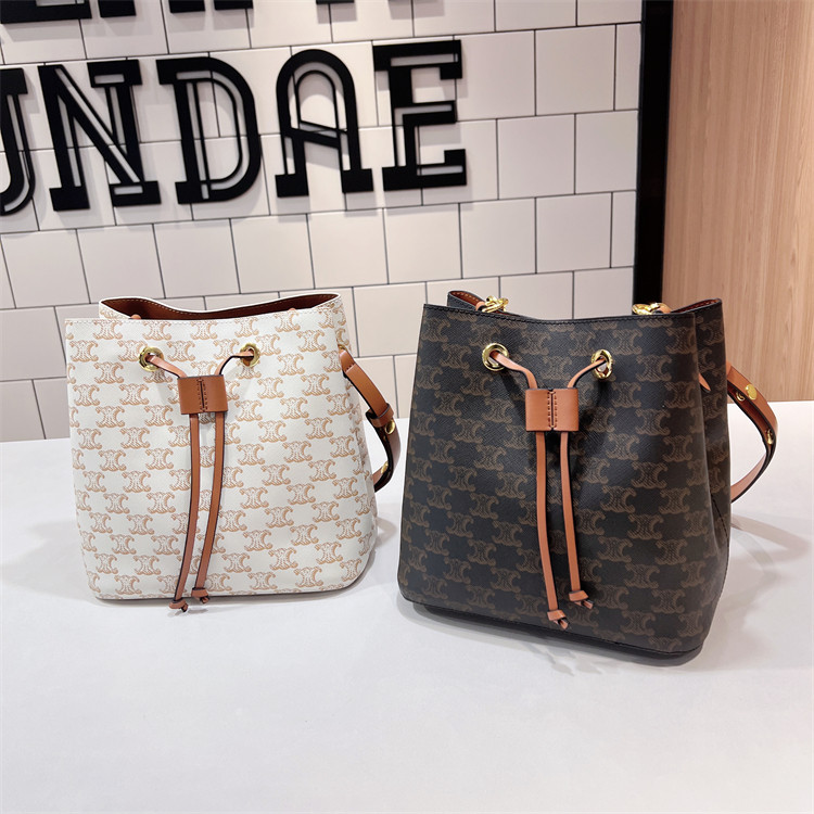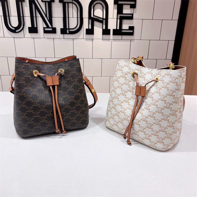2023潮流印花托特配皮抽繩水桶包單肩包大容量時尚休閒斜後後背包包
