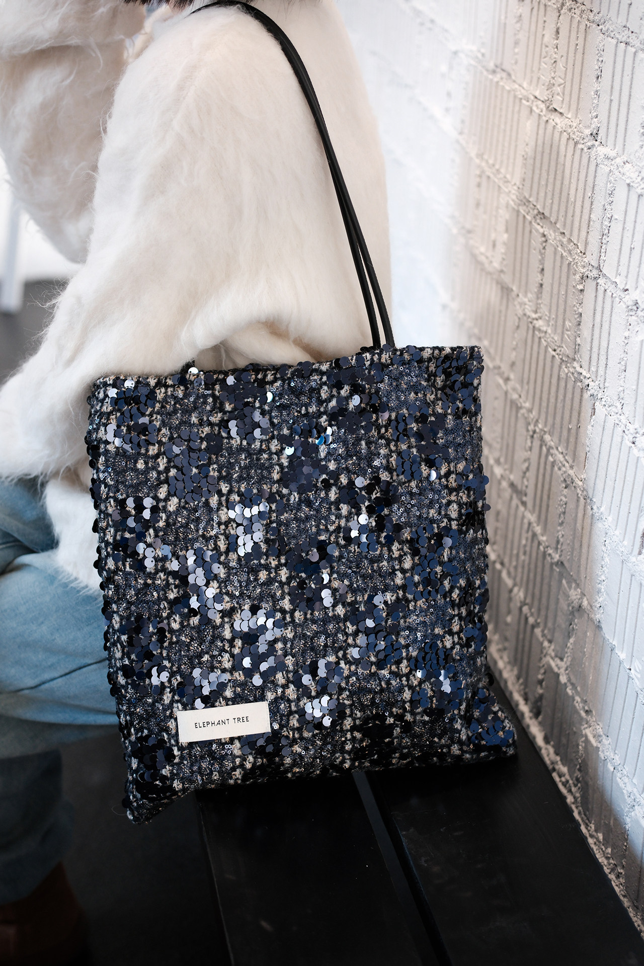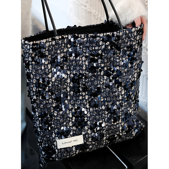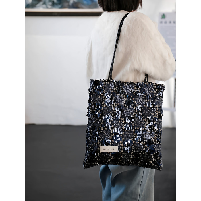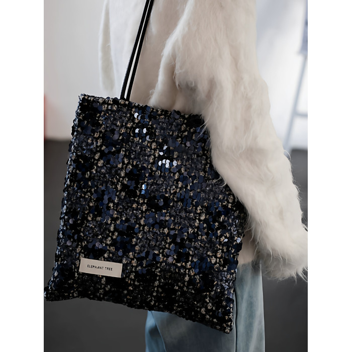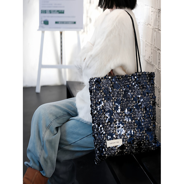 亮片藍色時尚百搭女生單肩包帆布包大容量小設計輕奢巨好看通勤