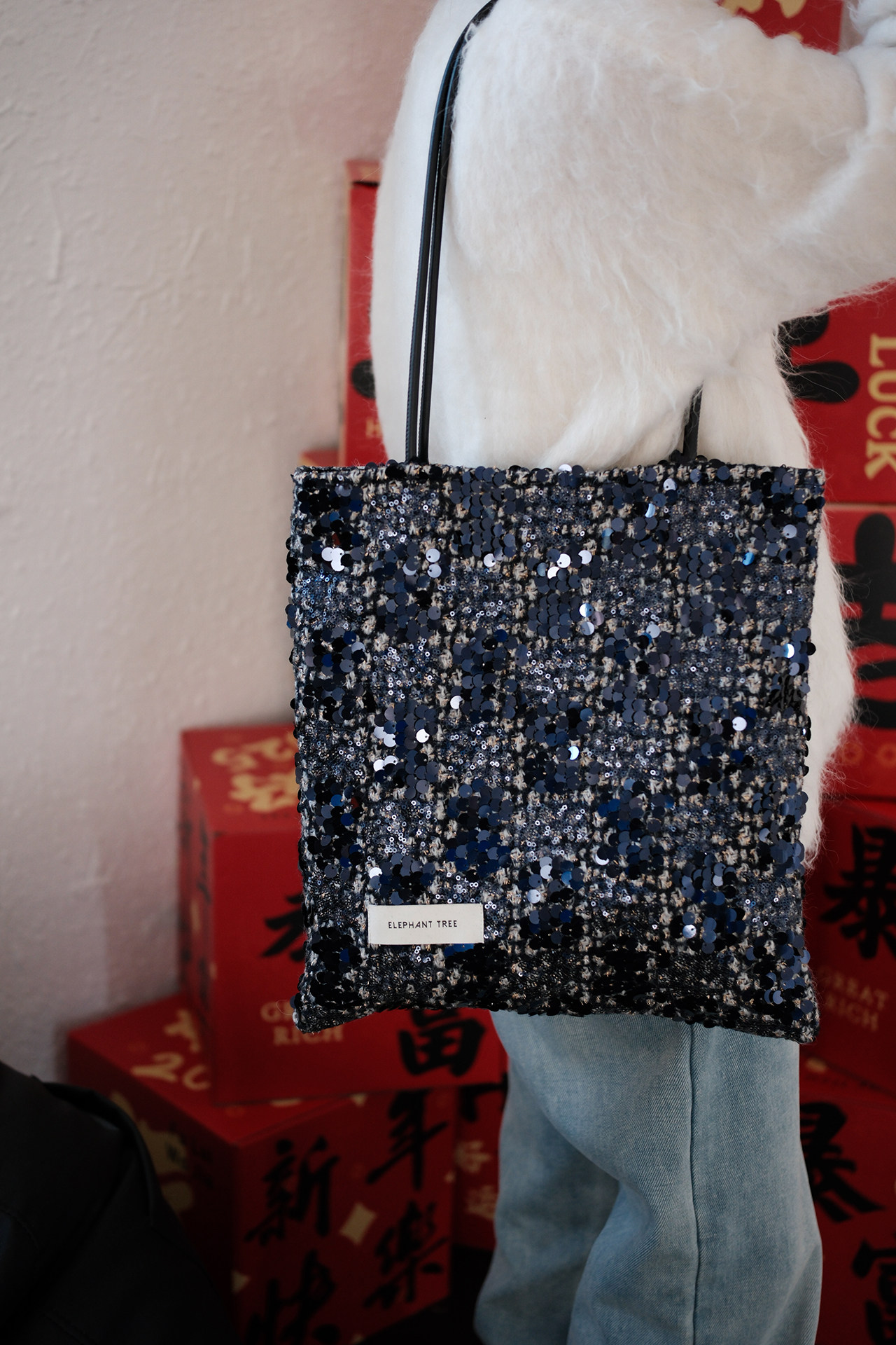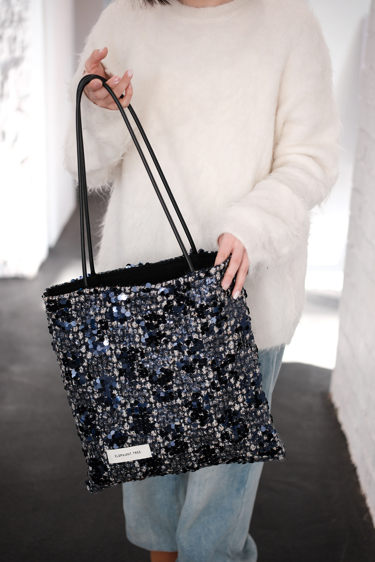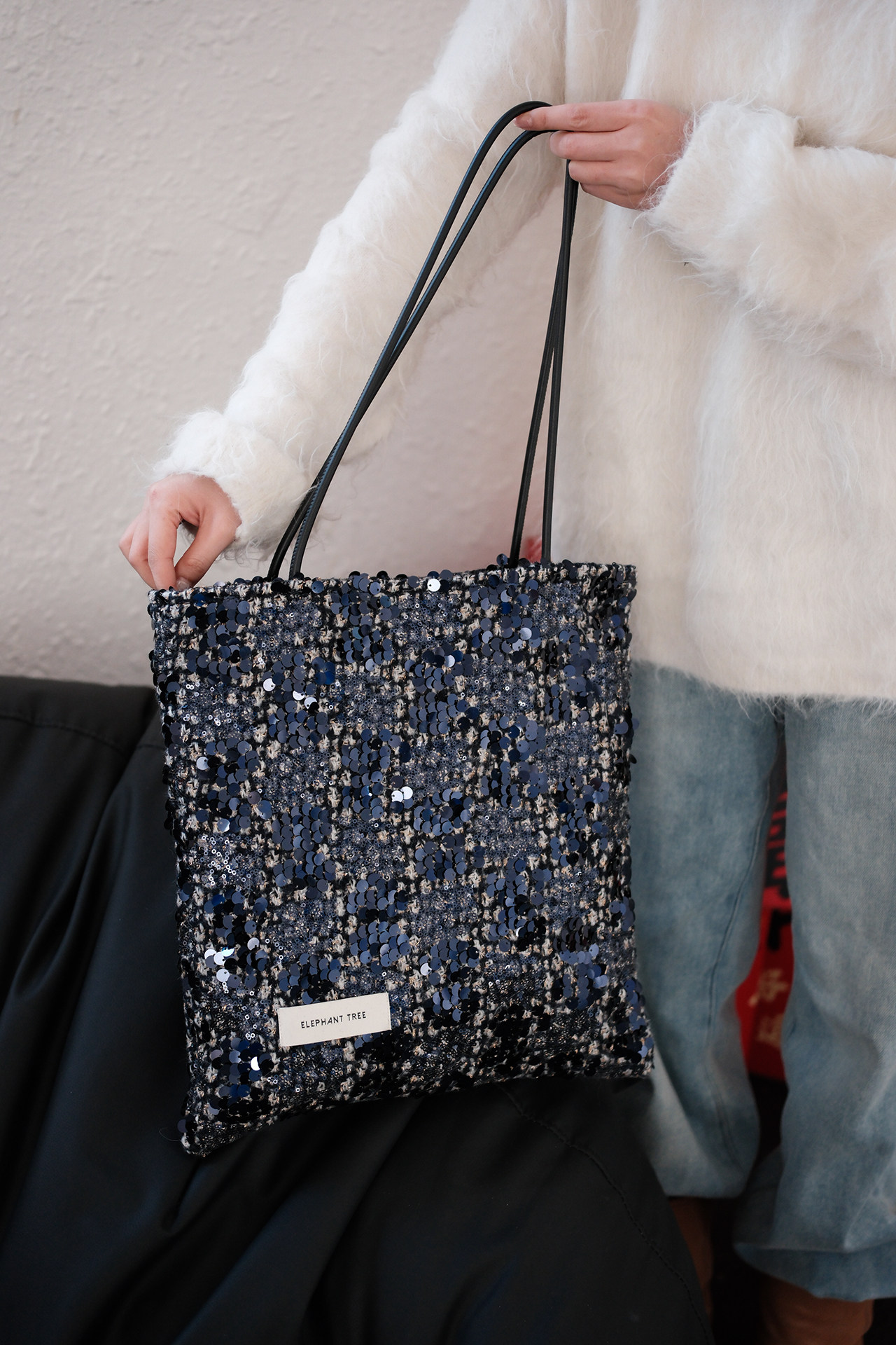 亮片藍色時尚百搭女生單肩包帆布包大容量小設計輕奢巨好看通勤
