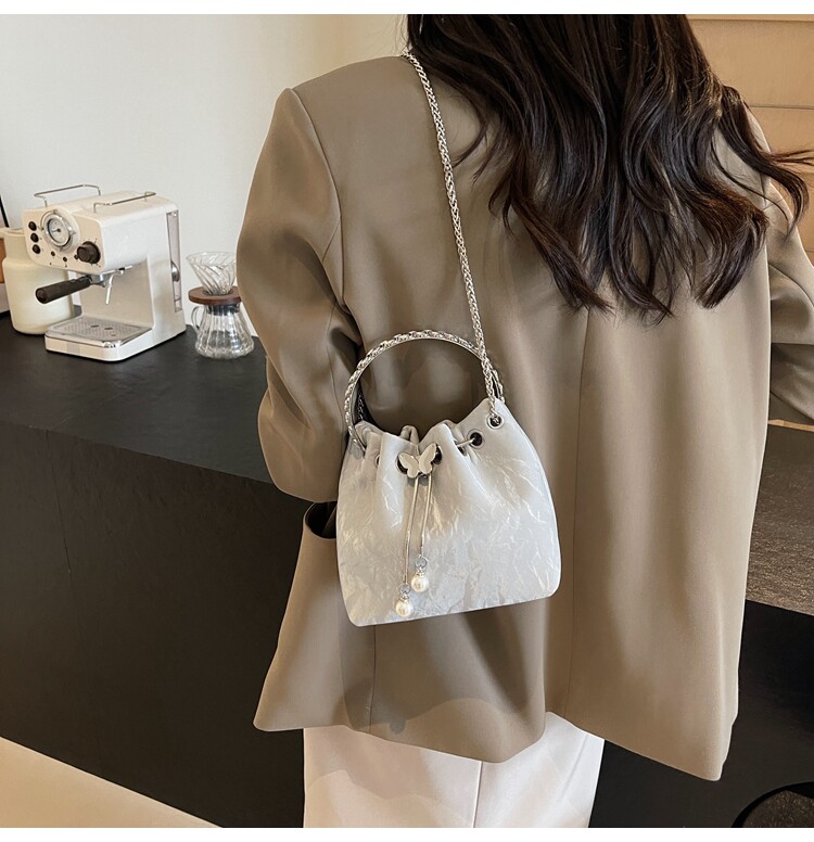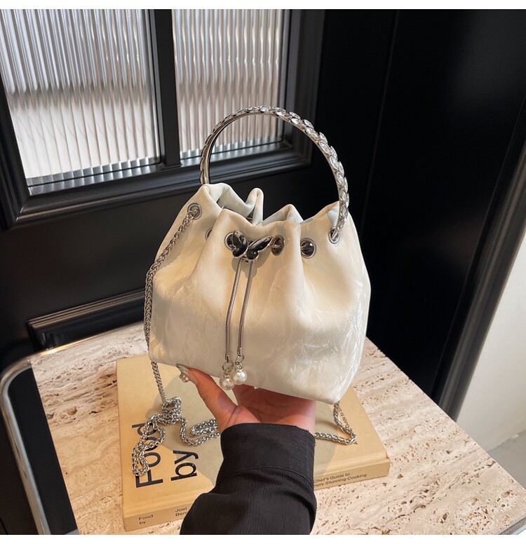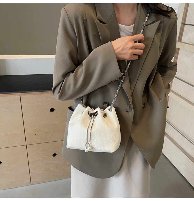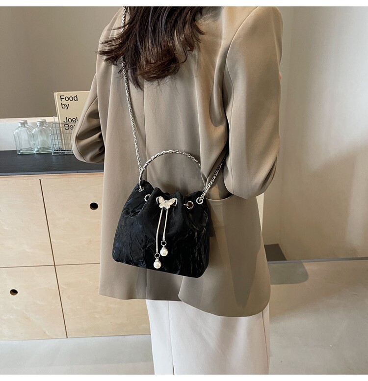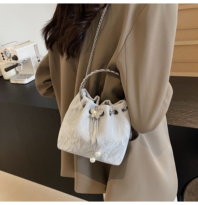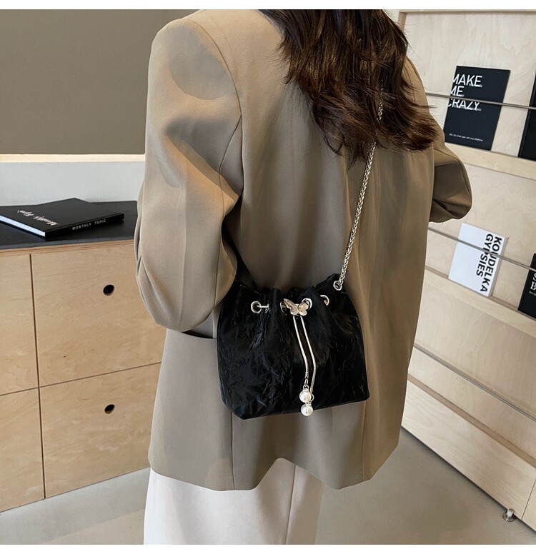 今年流行爆款包包女秋冬2026新款小衆鏈條斜背小包手提褶皺水桶包