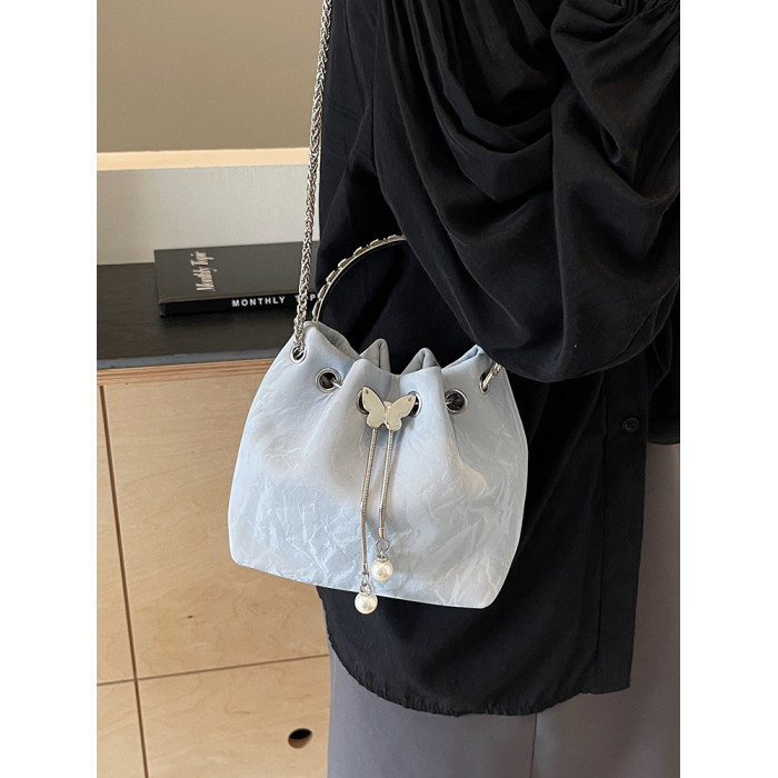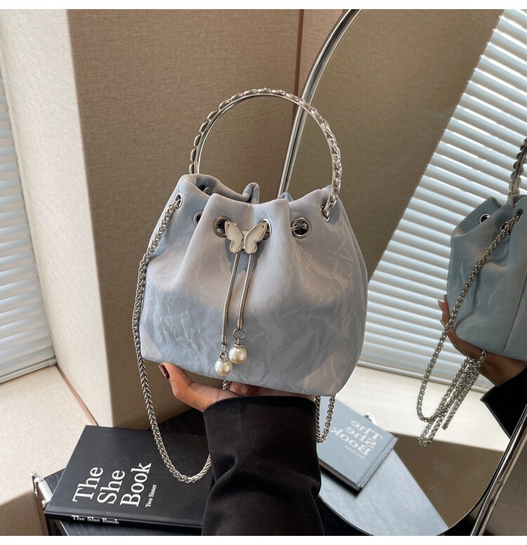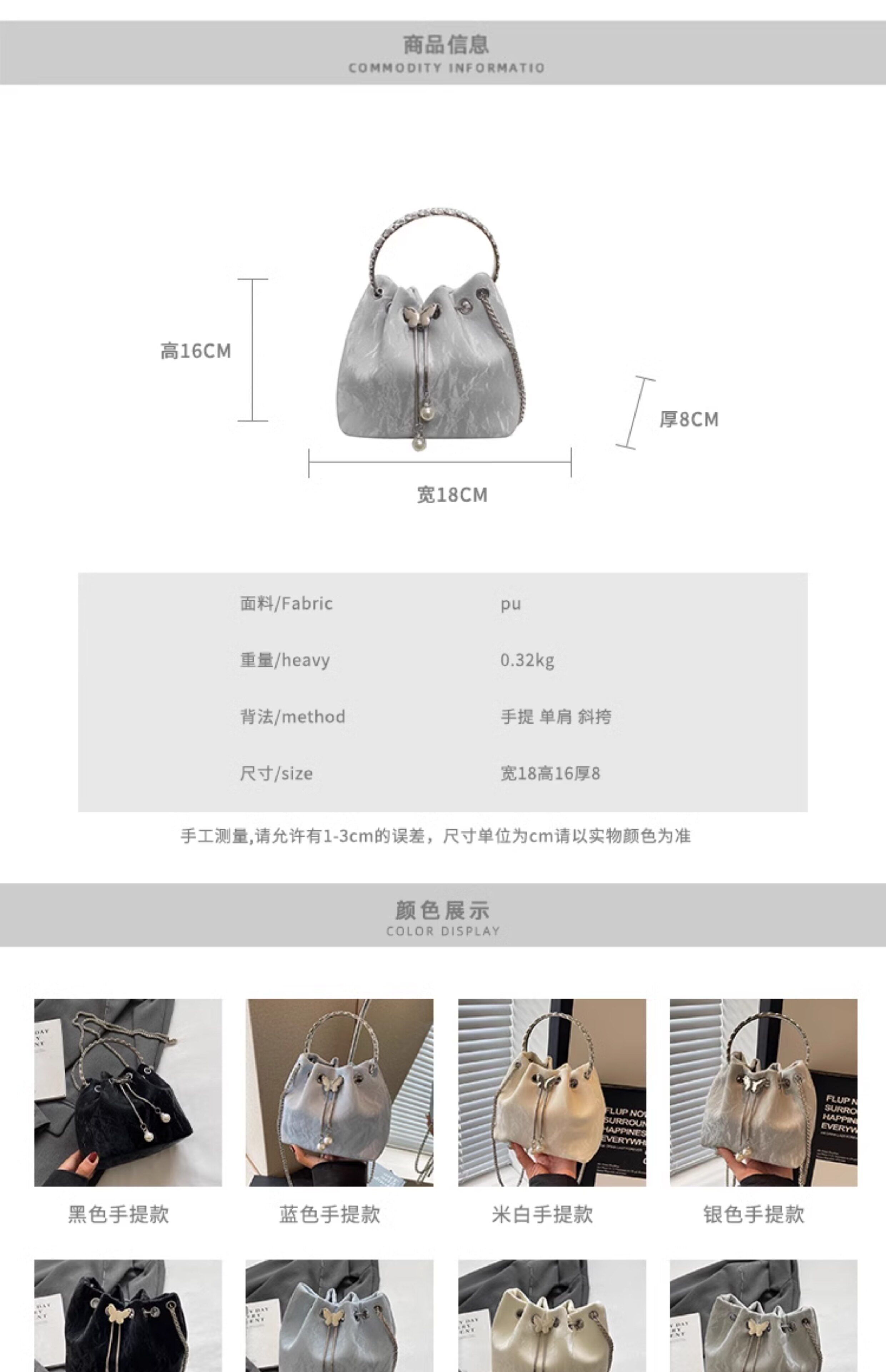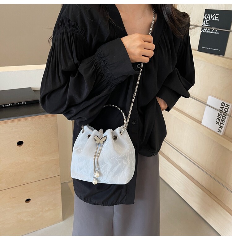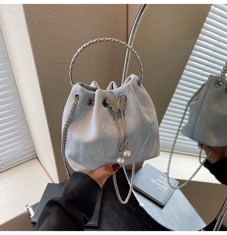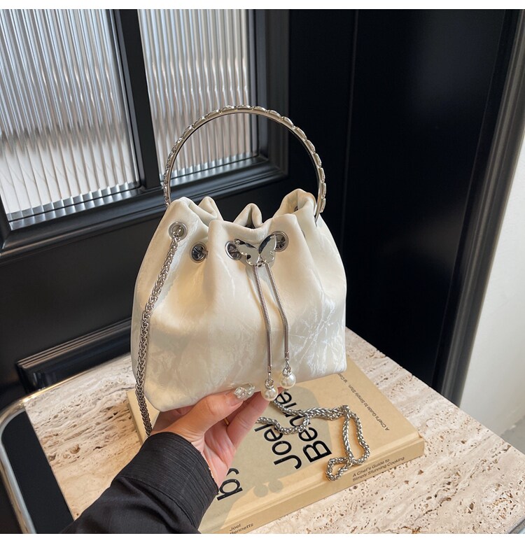 今年流行爆款包包女秋冬2026新款小衆鏈條斜背小包手提褶皺水桶包