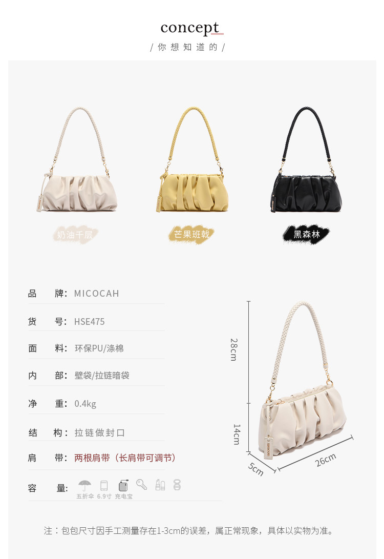 Micocah 單肩包2025原創雲朵包小方包褶皺包腋下包斜後後背包包女小衆