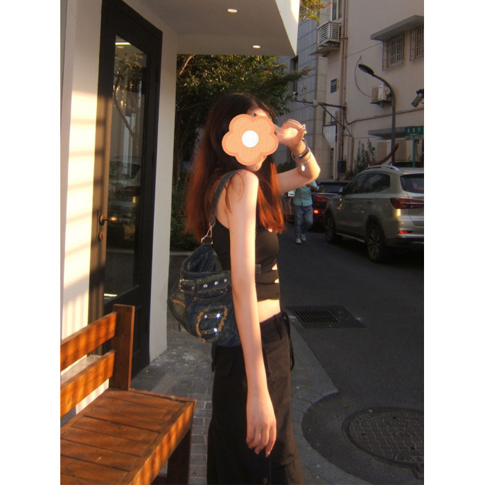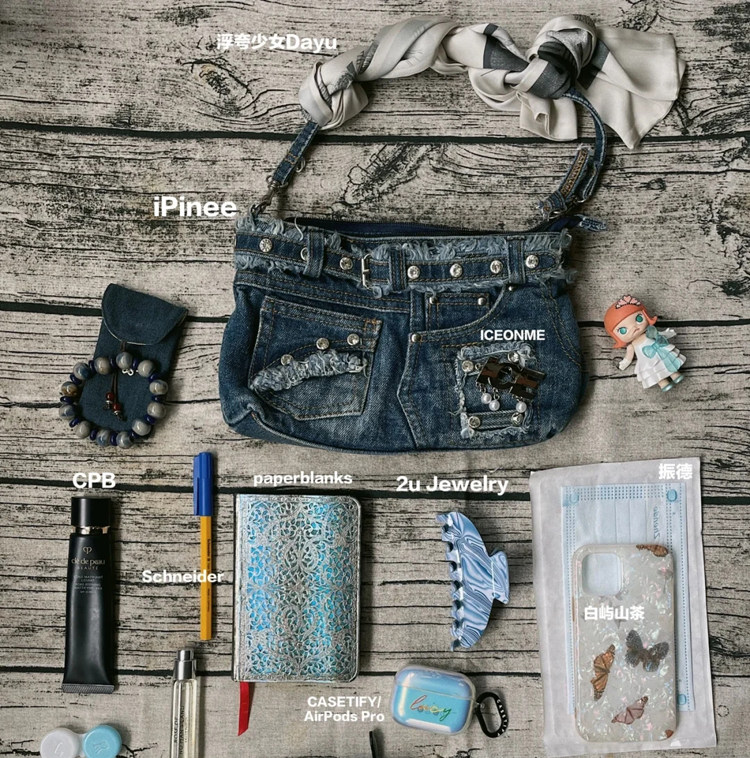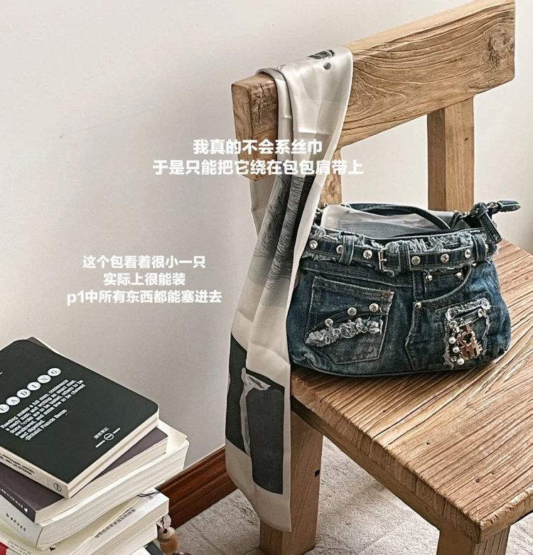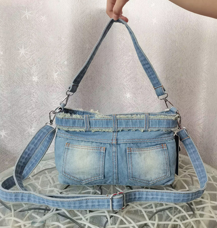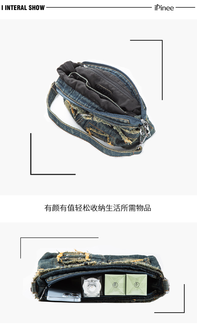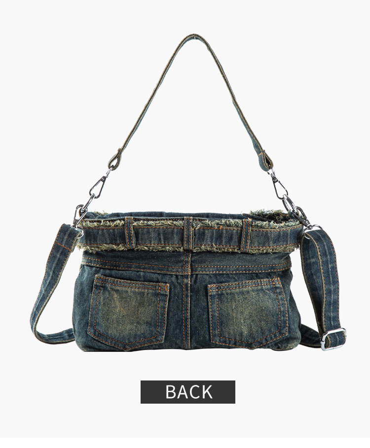iPinee原創復古懷舊水洗牛仔布腋下包鑲鑽牛仔褲造型手提斜背女包