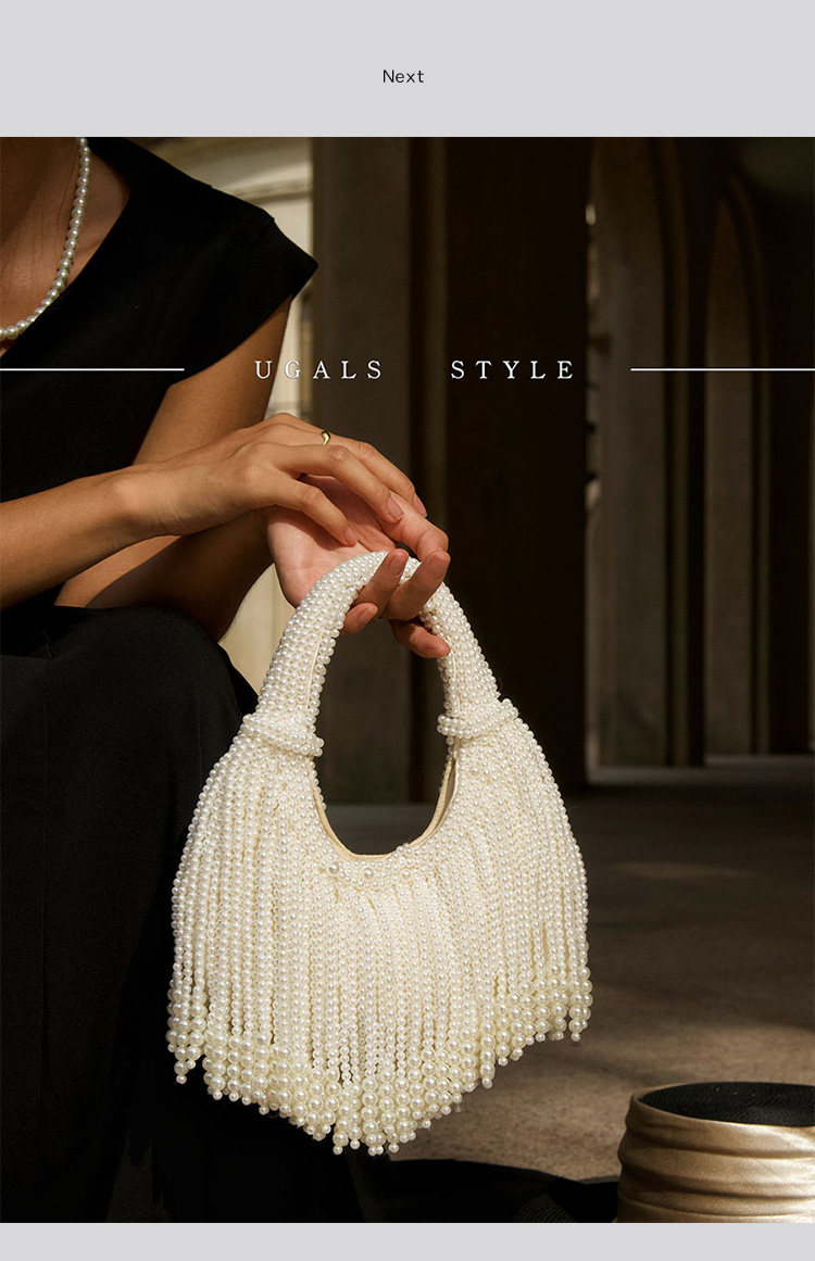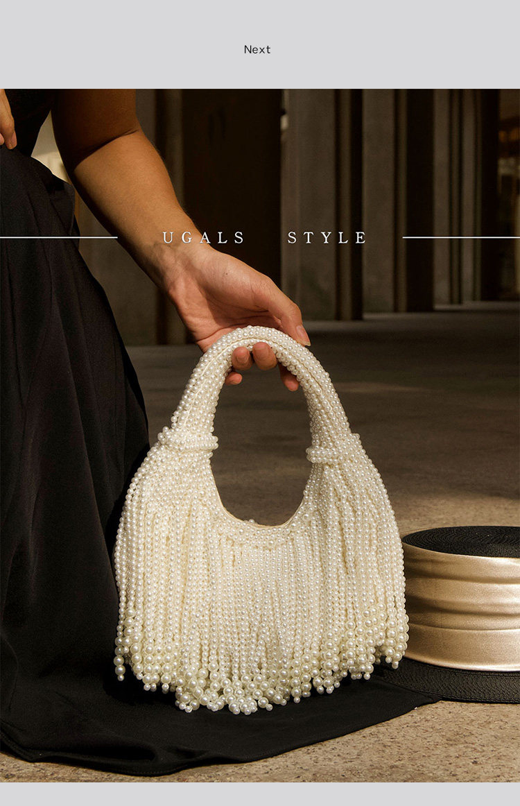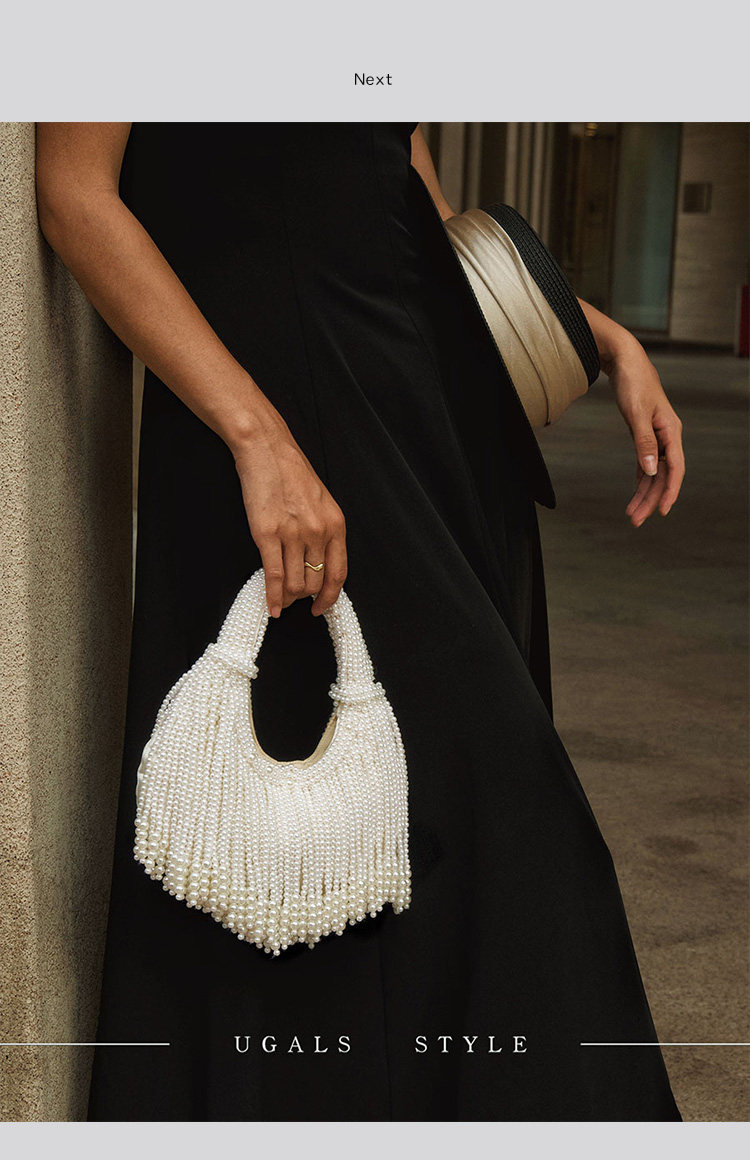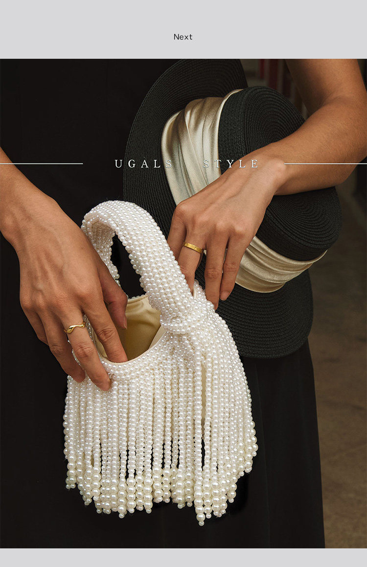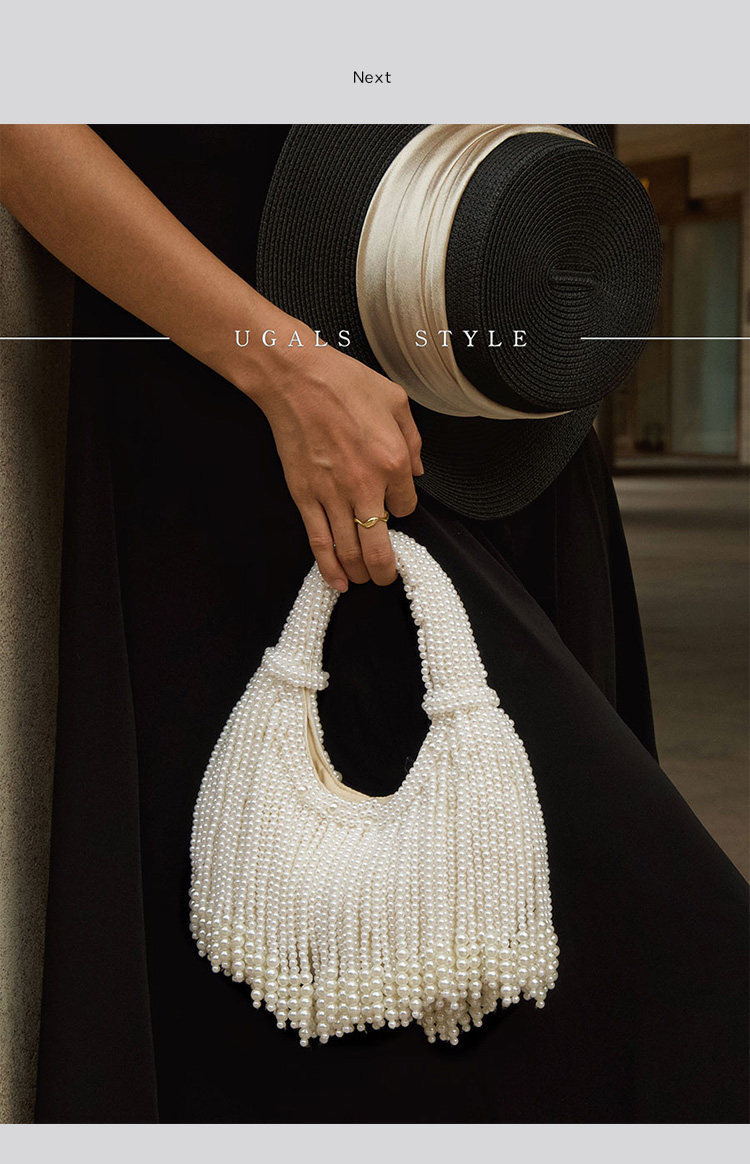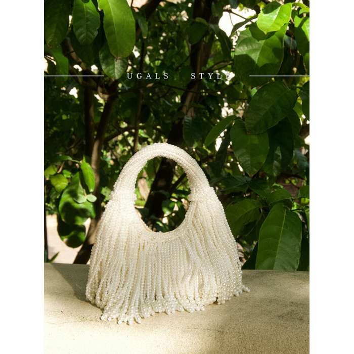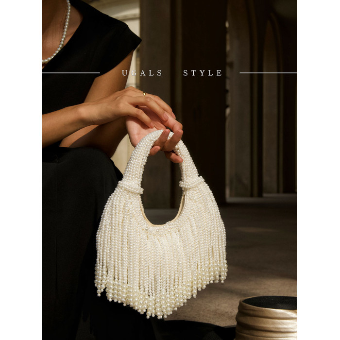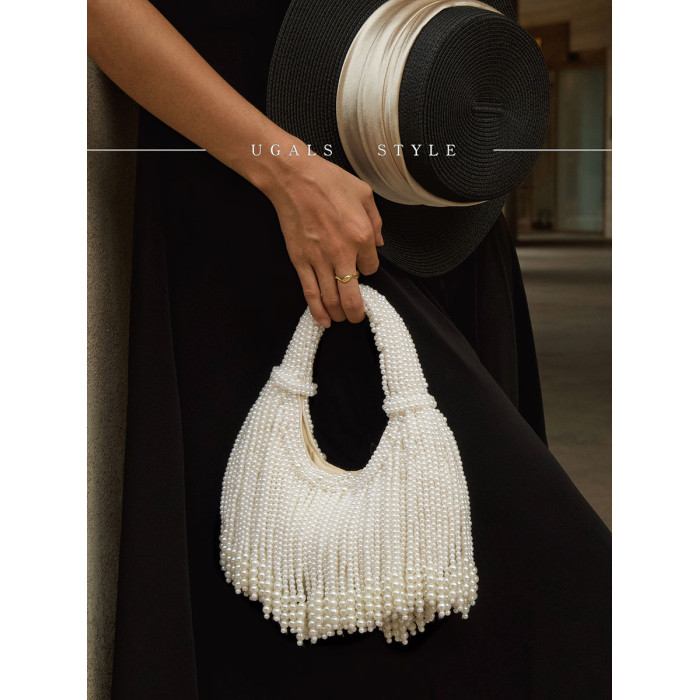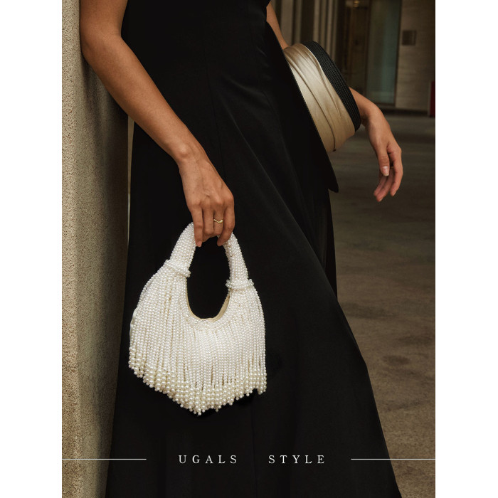 UGALS法式復古高級感重工手工編織串珍珠流蘇餃子托特宴會手拿包
