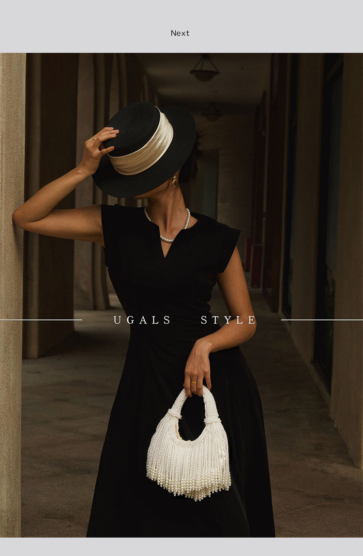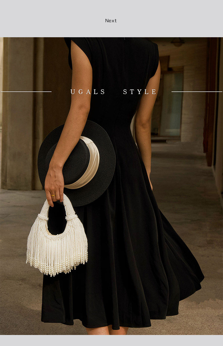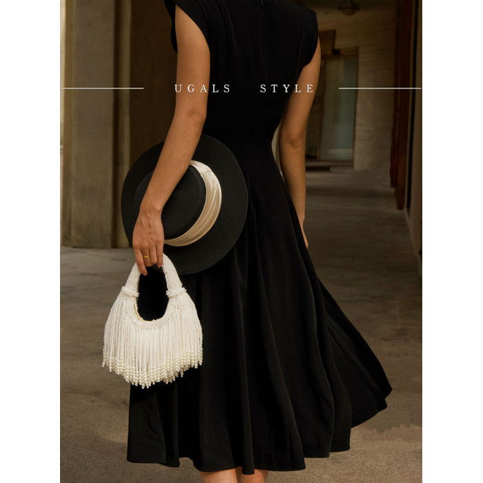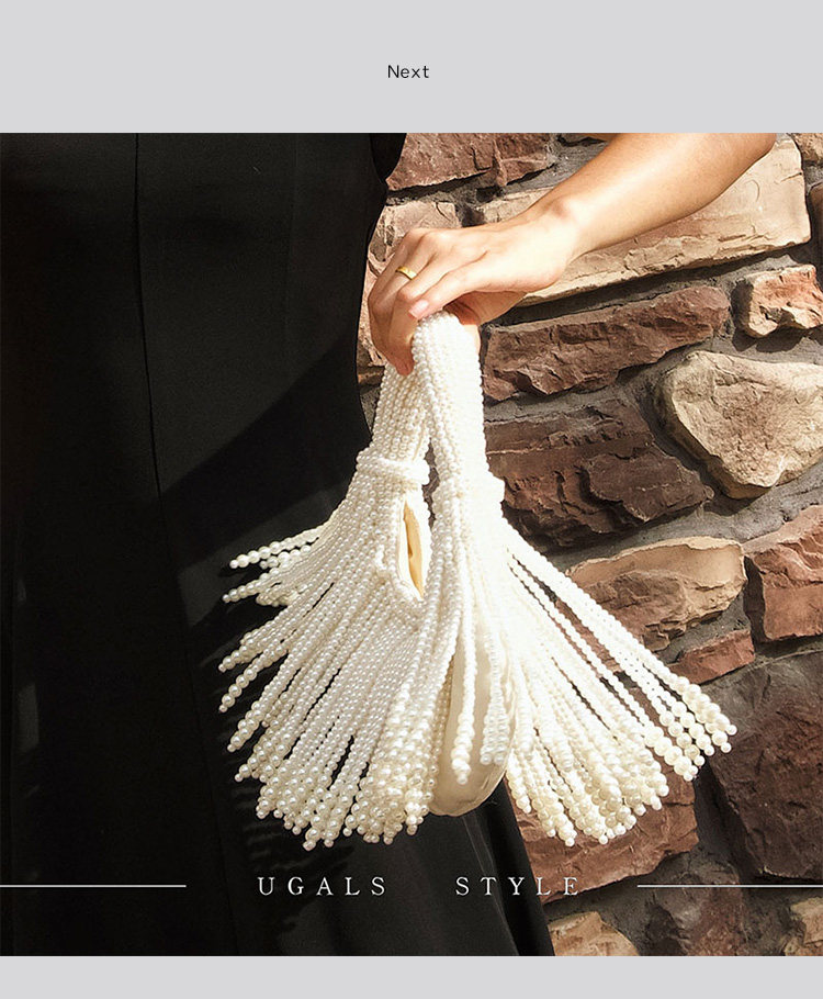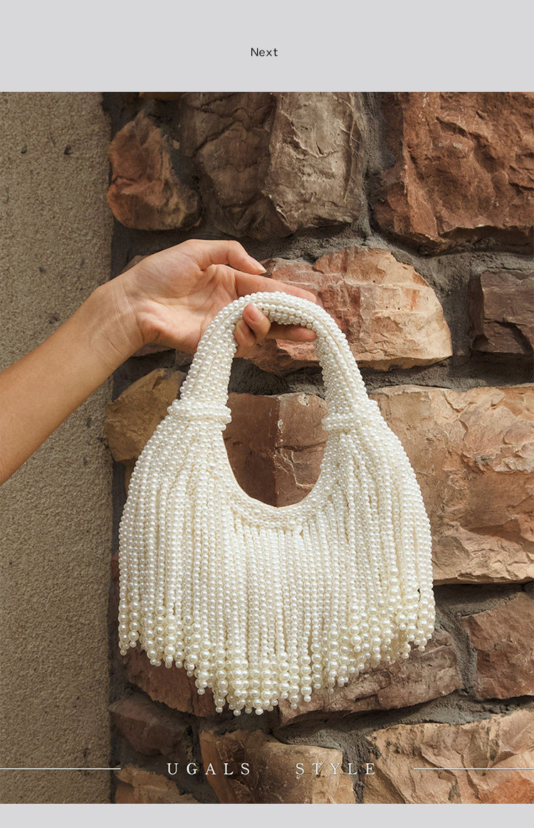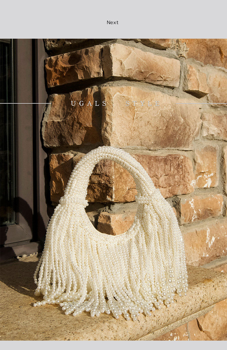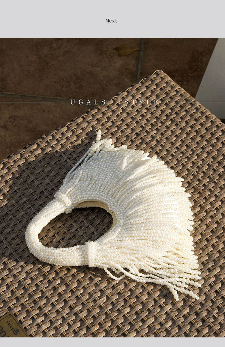 UGALS法式復古高級感重工手工編織串珍珠流蘇餃子托特宴會手拿包