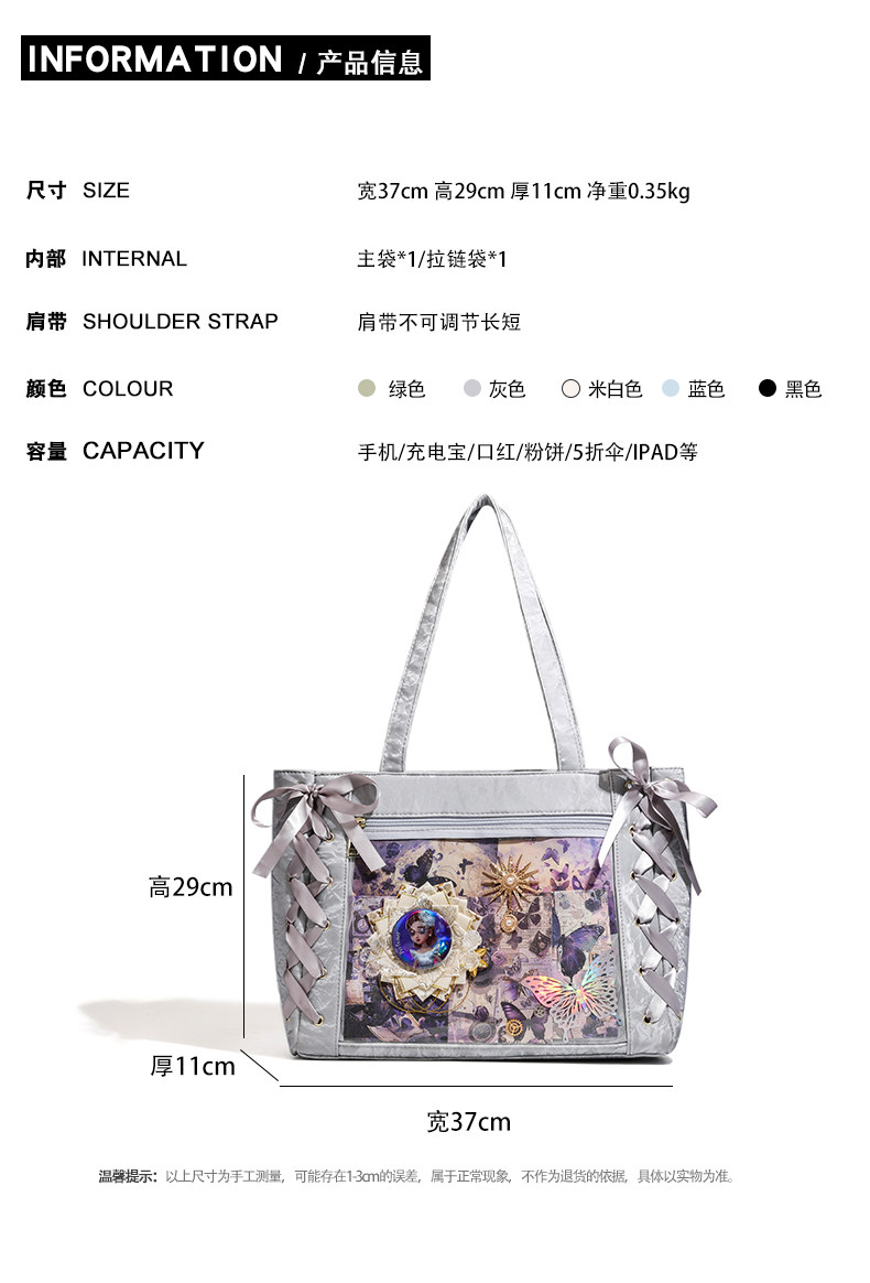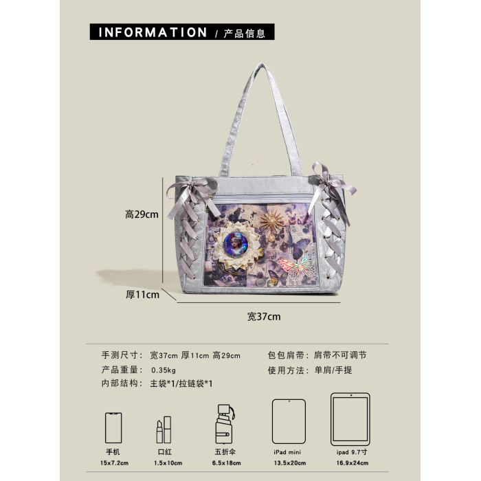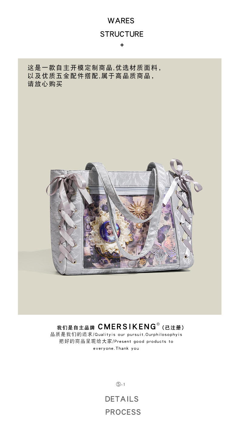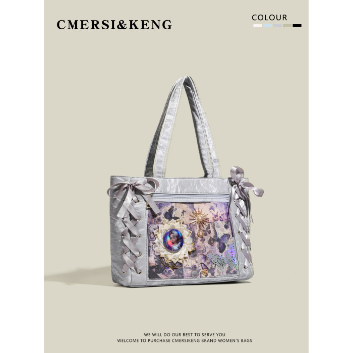 CMERSI&KENG原創動漫二次元少女絲帶痛包大食量單肩托特包大容量