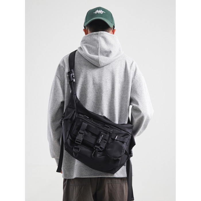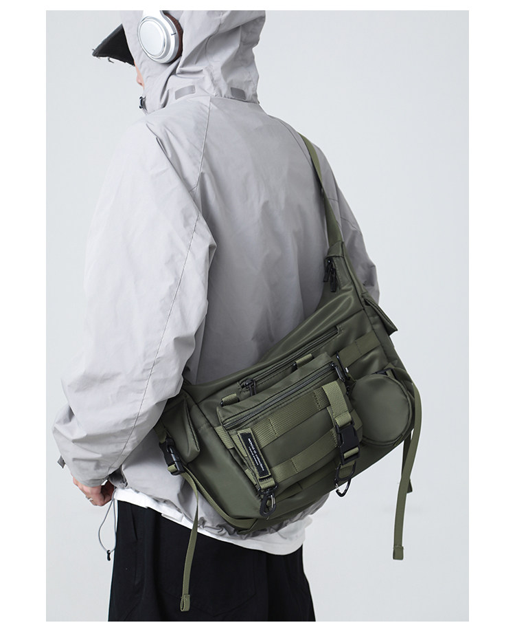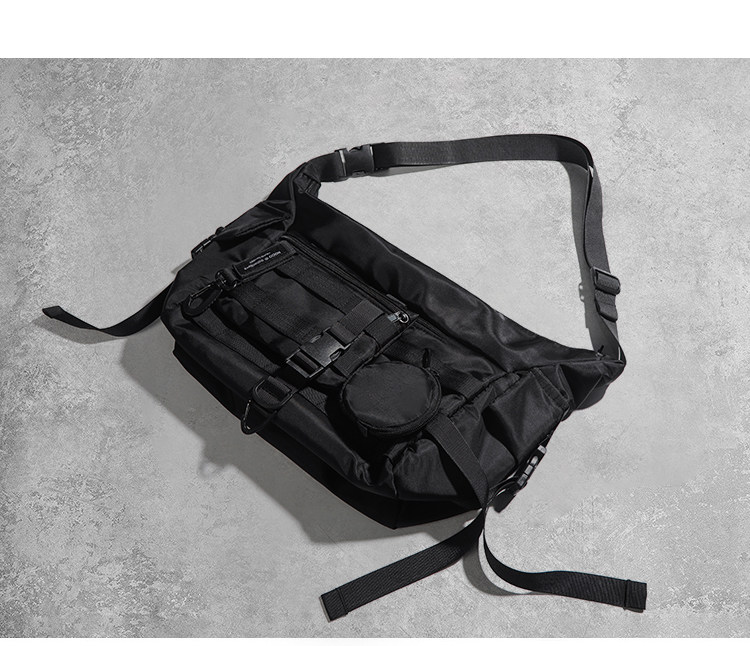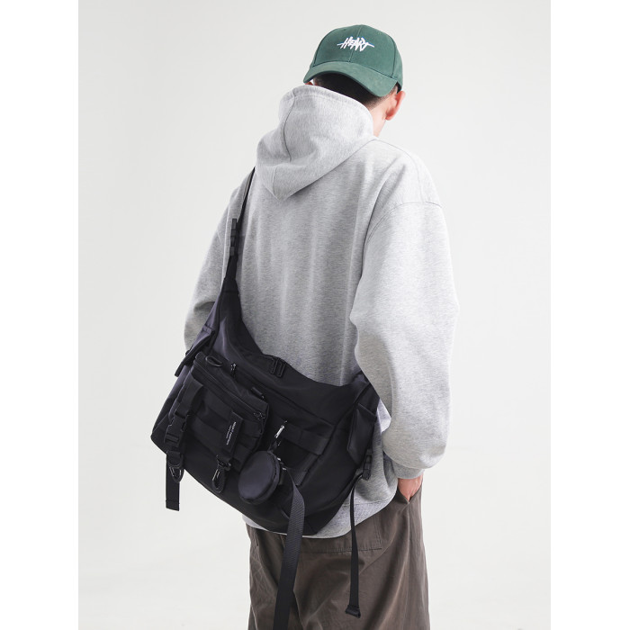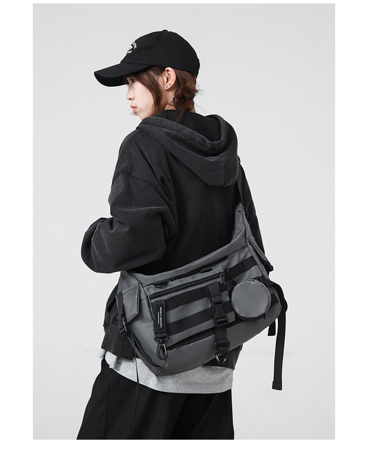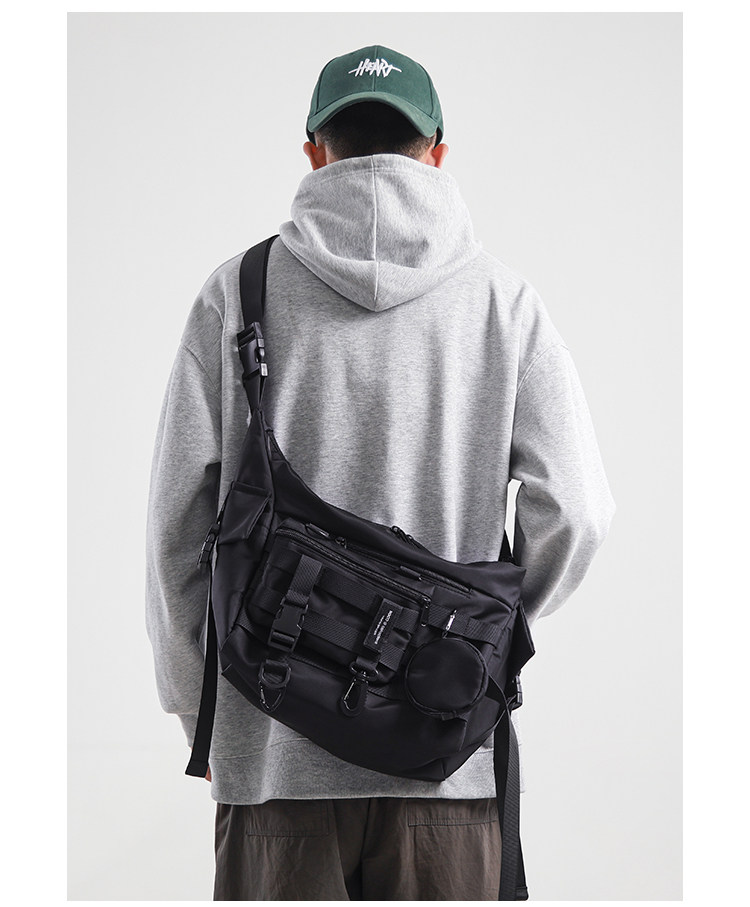 機能潮牌斜後後背包男生ins工裝街頭單肩包女運動騎行後後背包通勤郵差包