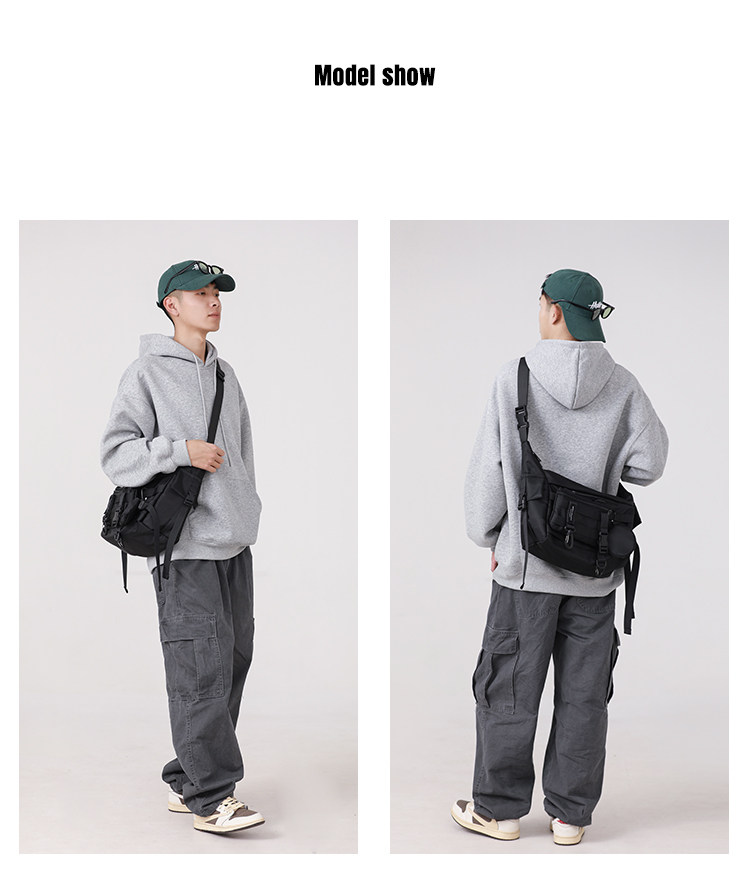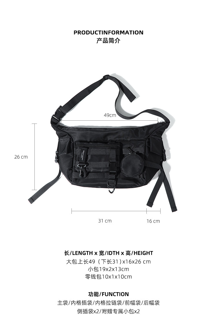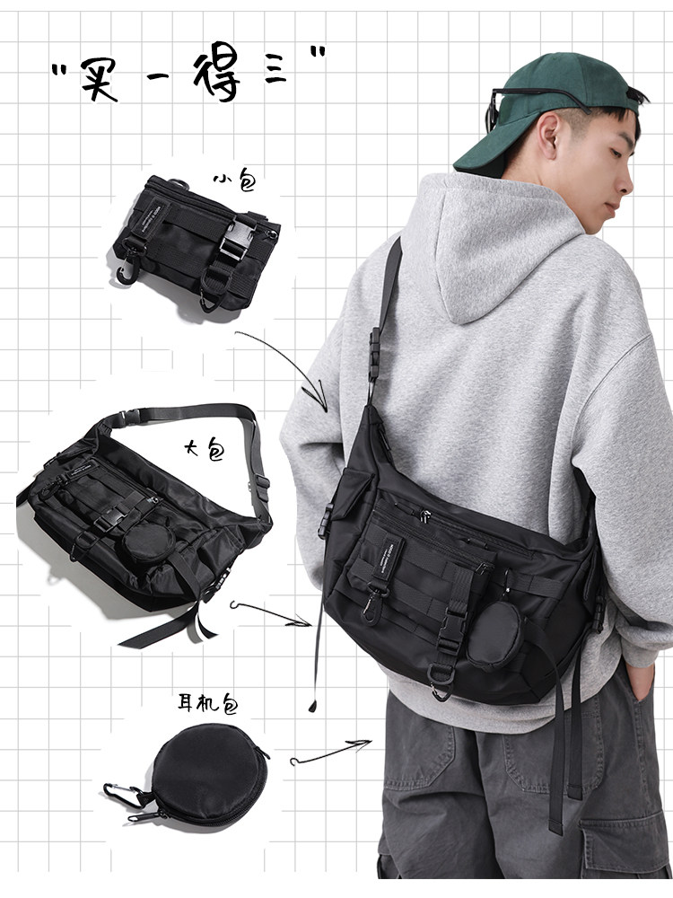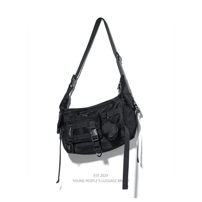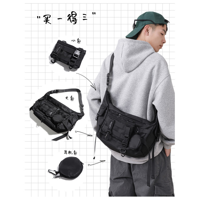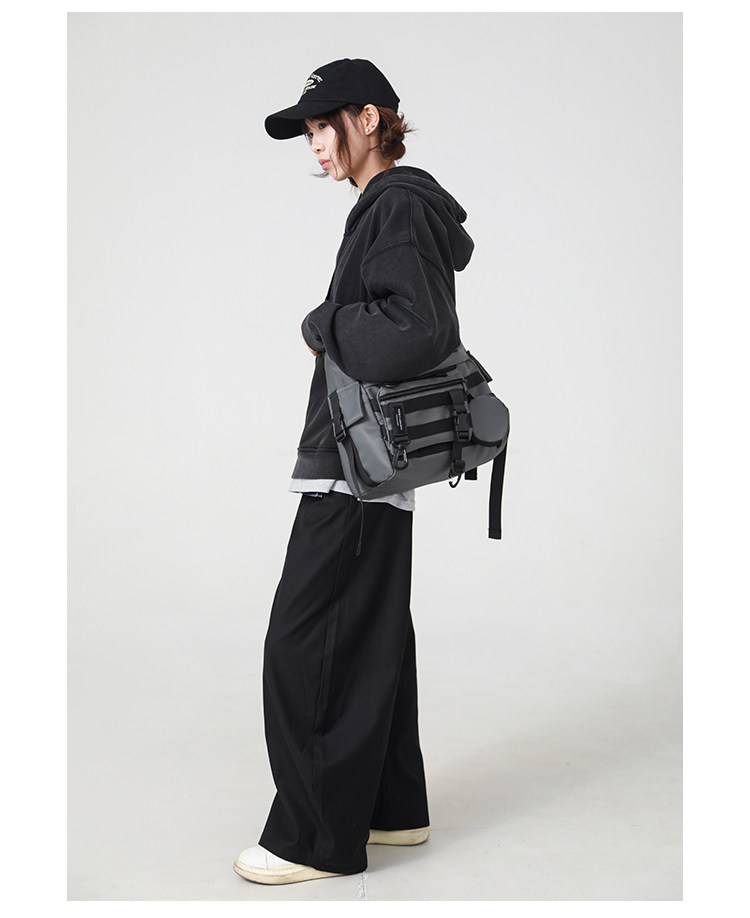 機能潮牌斜後後背包男生ins工裝街頭單肩包女運動騎行後後背包通勤郵差包