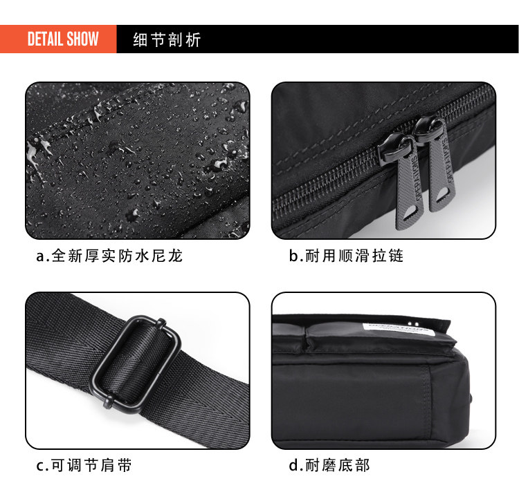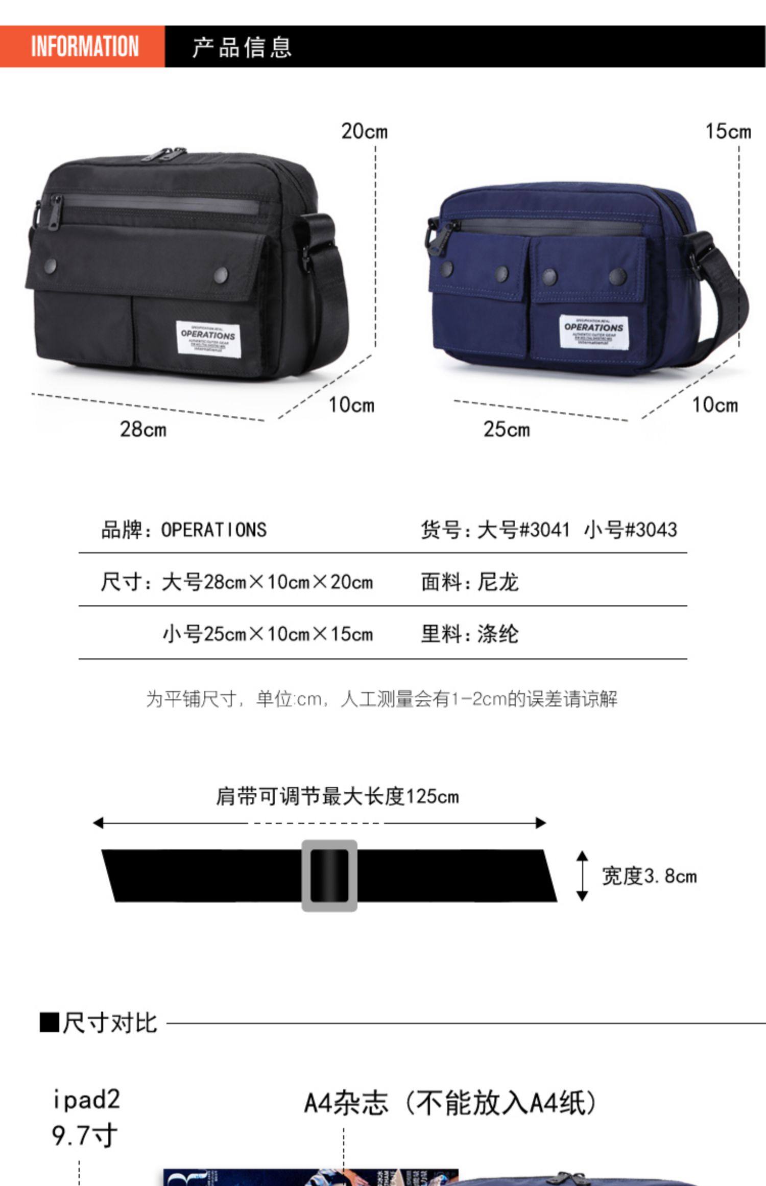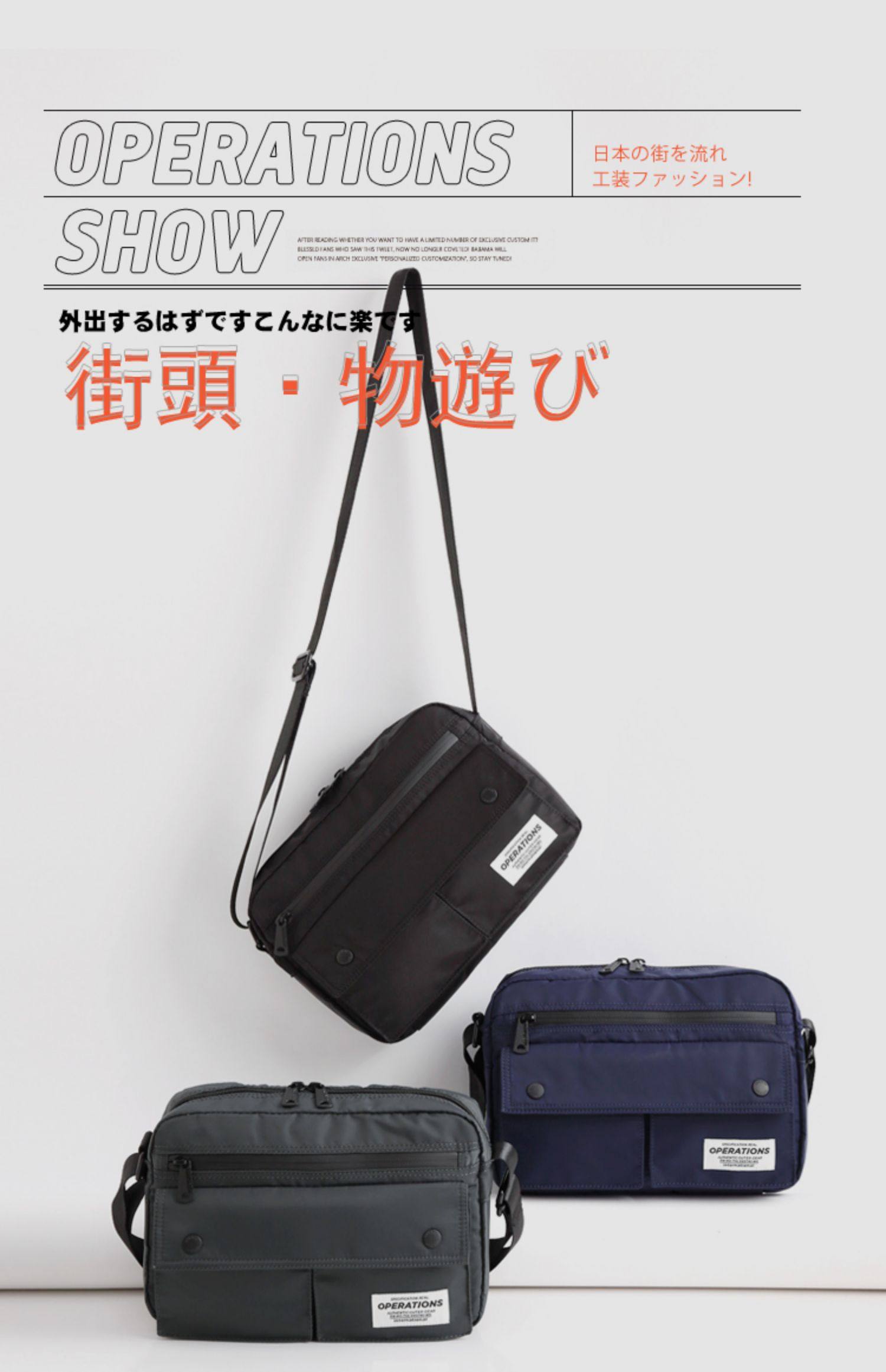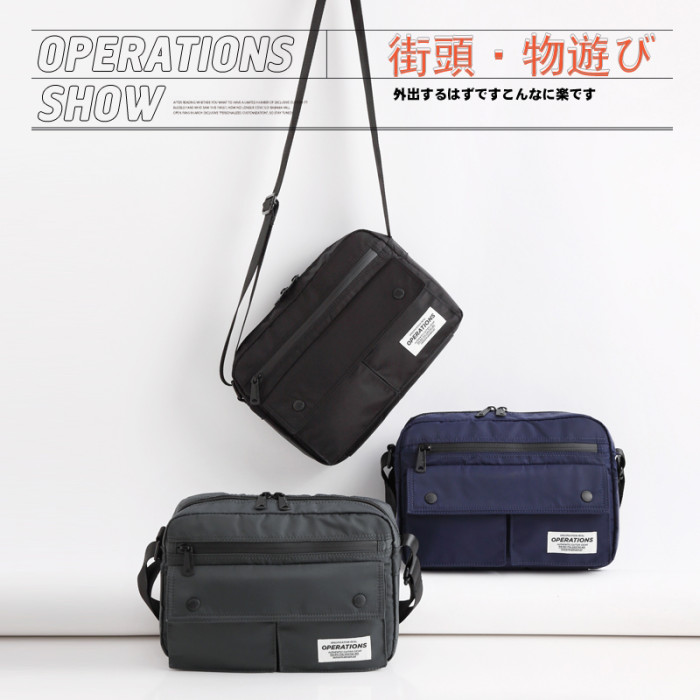 日系純色拉鍊潮牌尼龍郵差包男女休閒工裝多層功能防水單肩斜後後背包