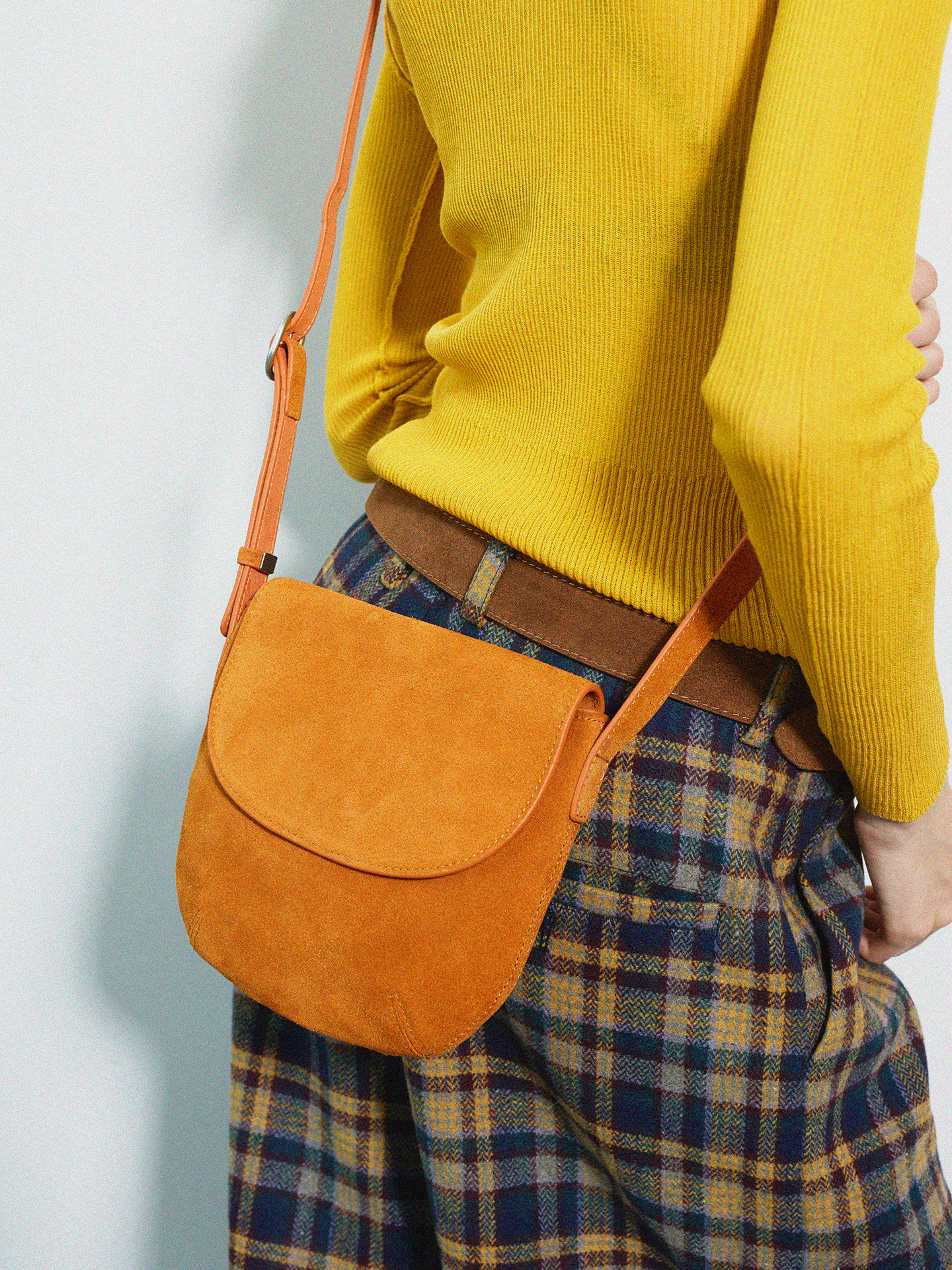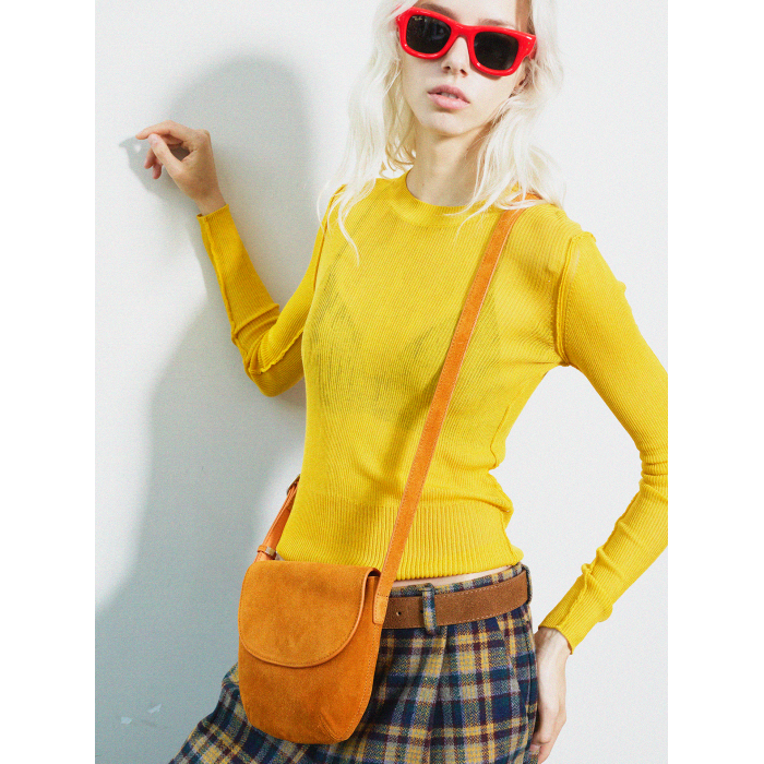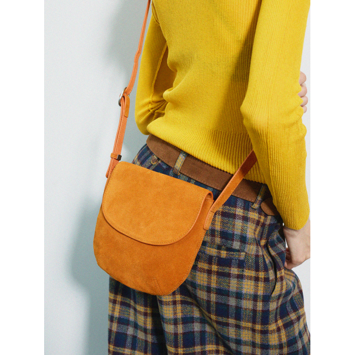 Momogigi 街頭藝術 原創設計復古絲絨磨砂牛皮簡約斜後後背包馬鞍包