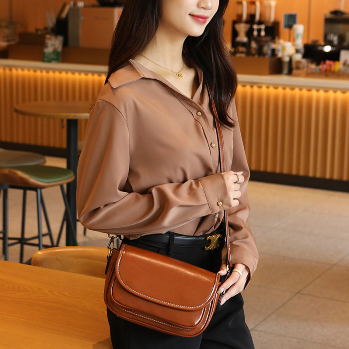 2025女包新款斜後後背包款潮真皮小方包植鞣牛皮單肩包復古時尚小包包