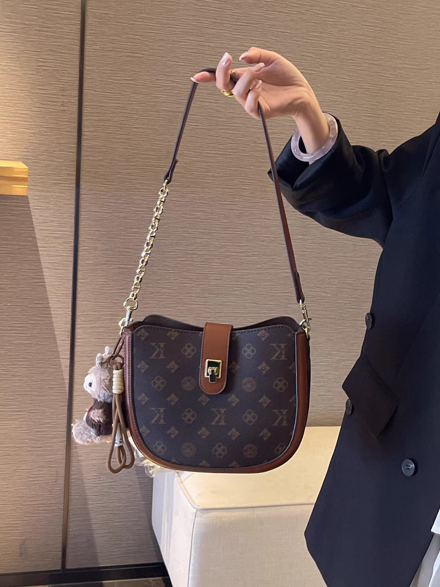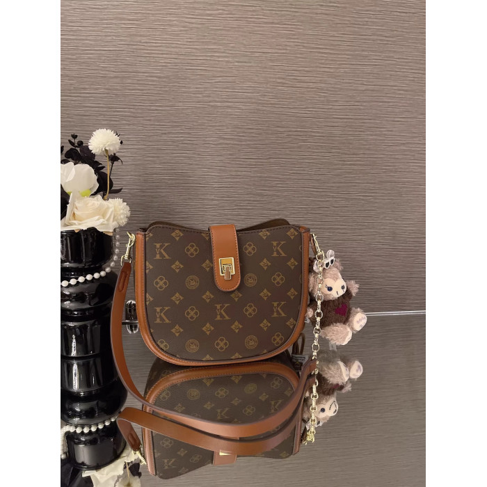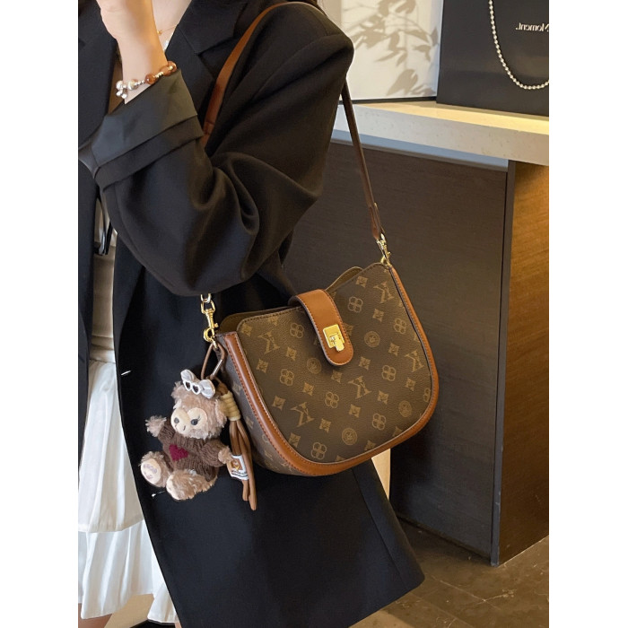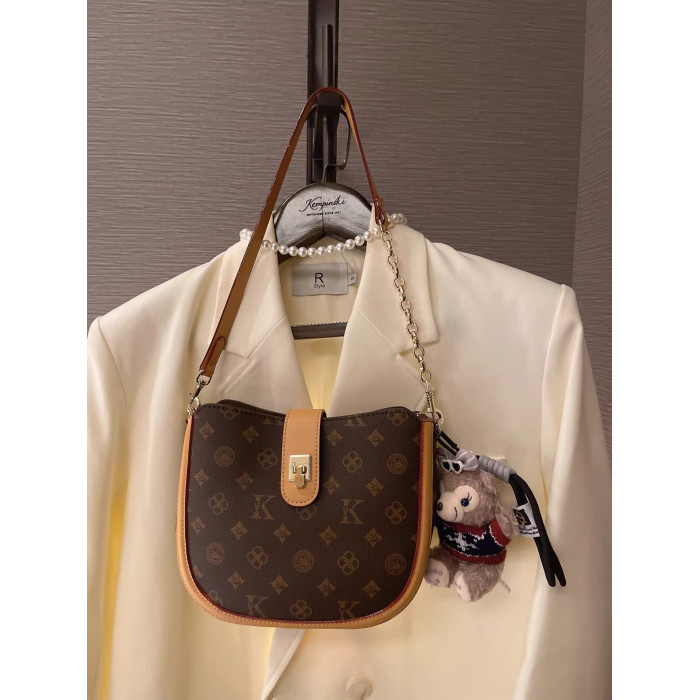 法國復古老花半圓馬鞍包女2026春新款高級感真皮老花腋下包斜後後背包