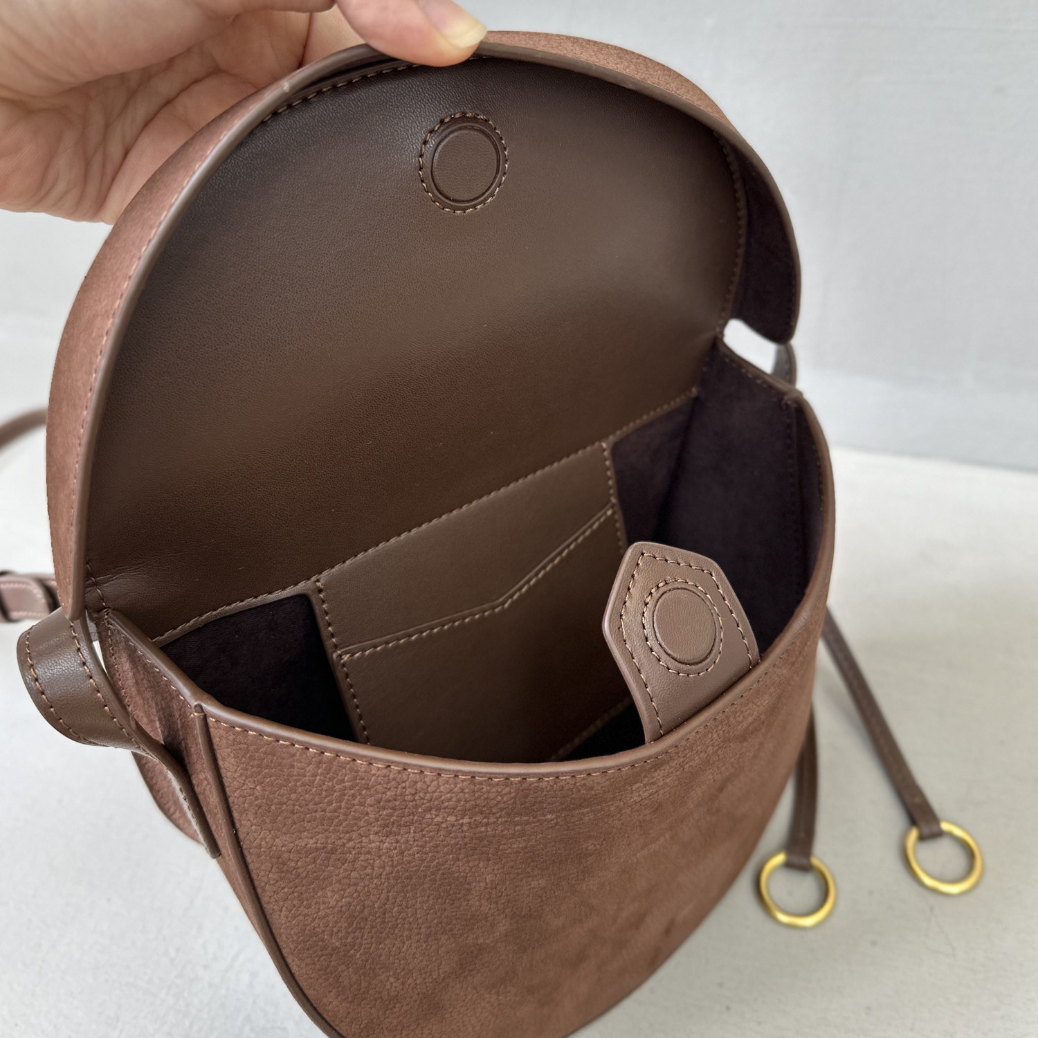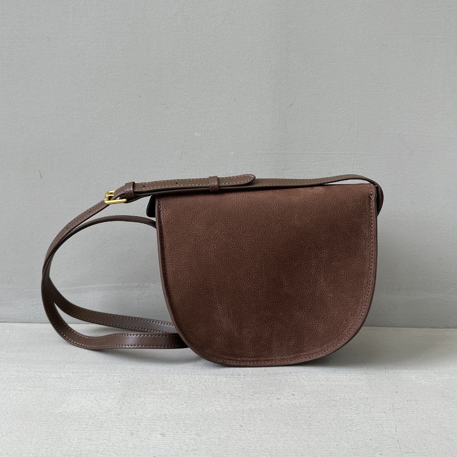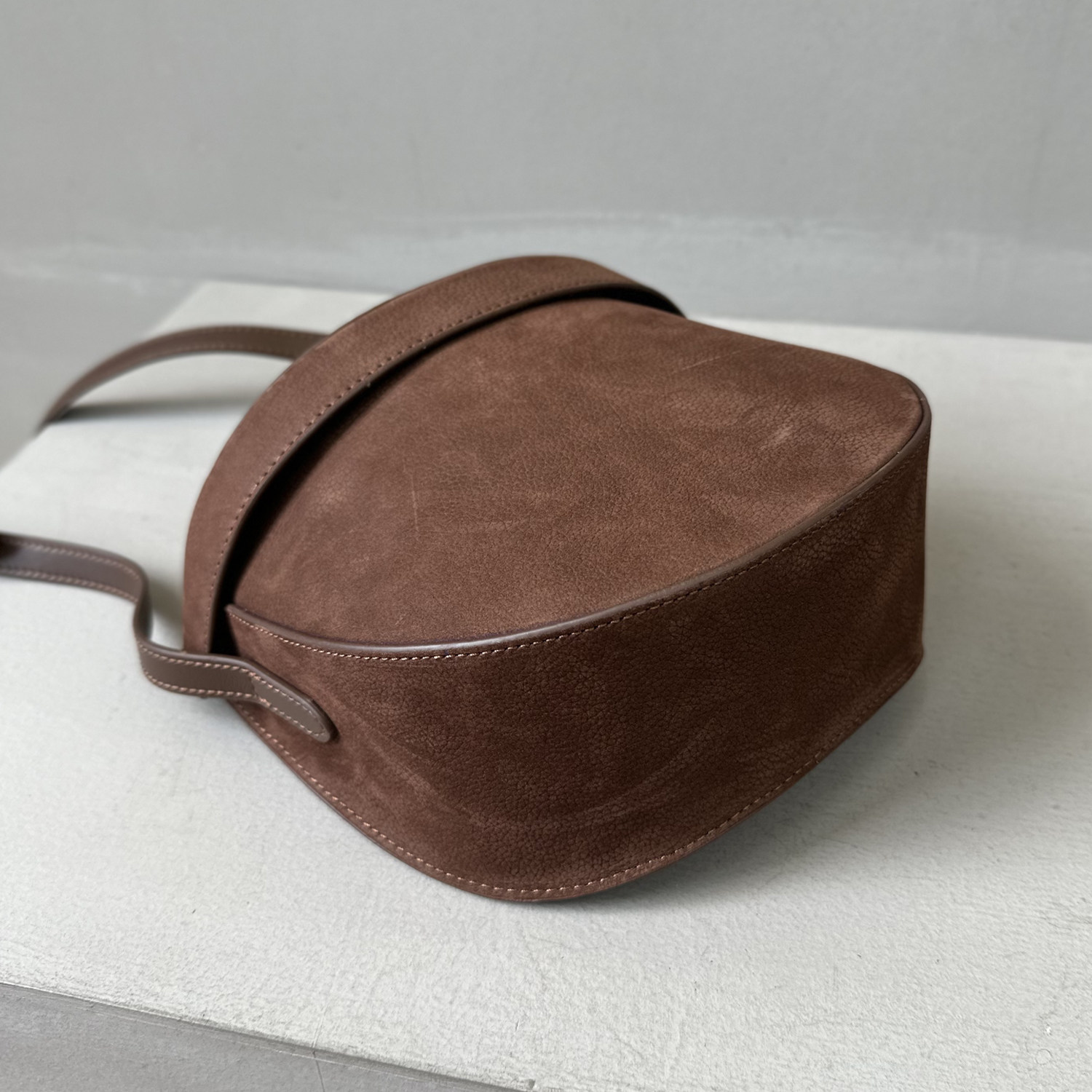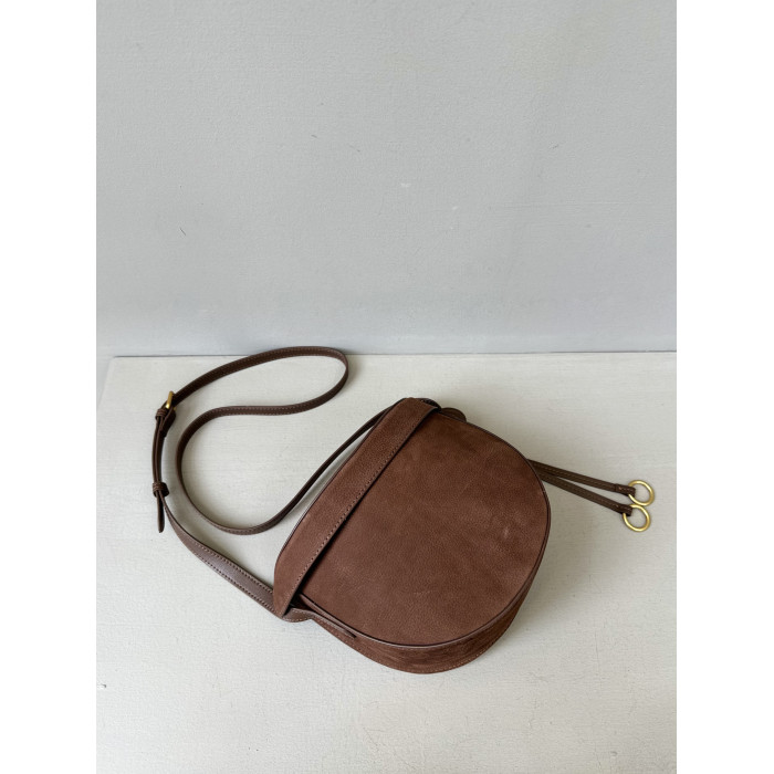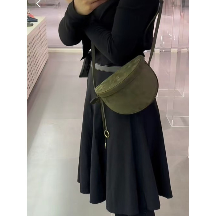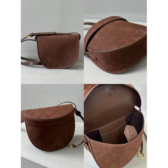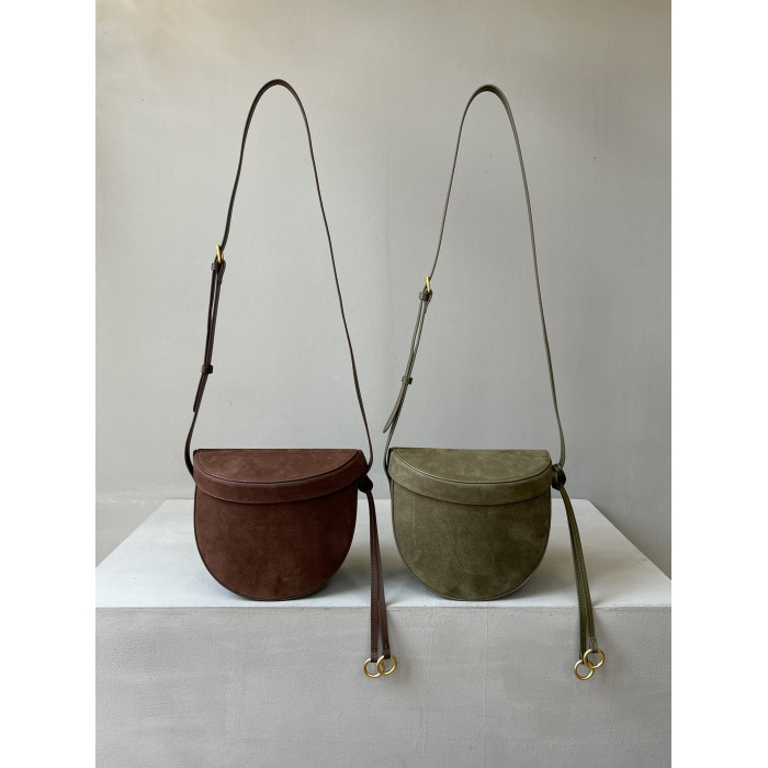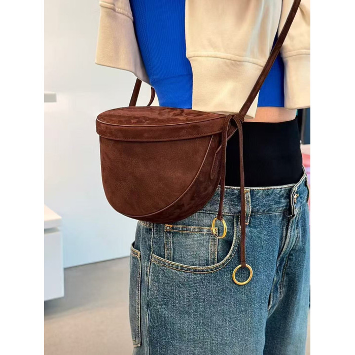 特價麂皮磨砂牛皮盒子包真皮裝飾馬鞍包半月包高級感單肩斜後後背包女