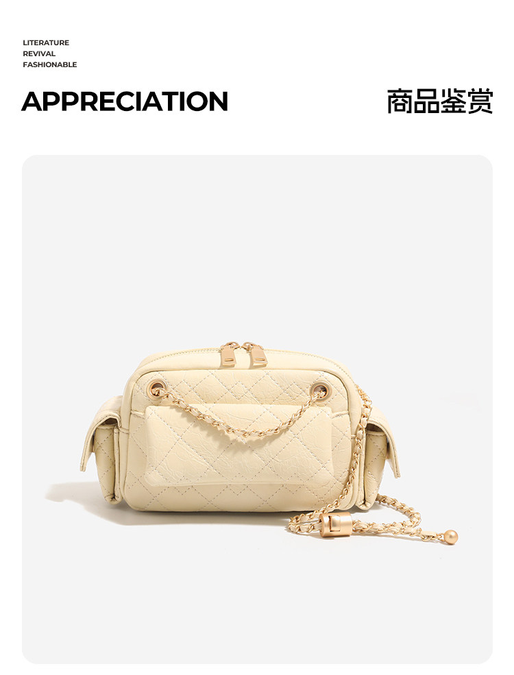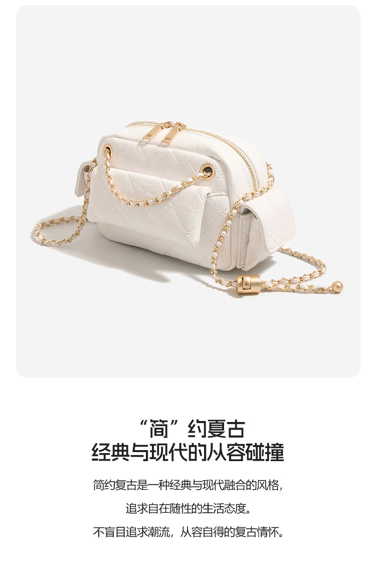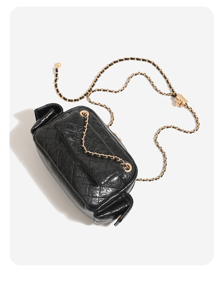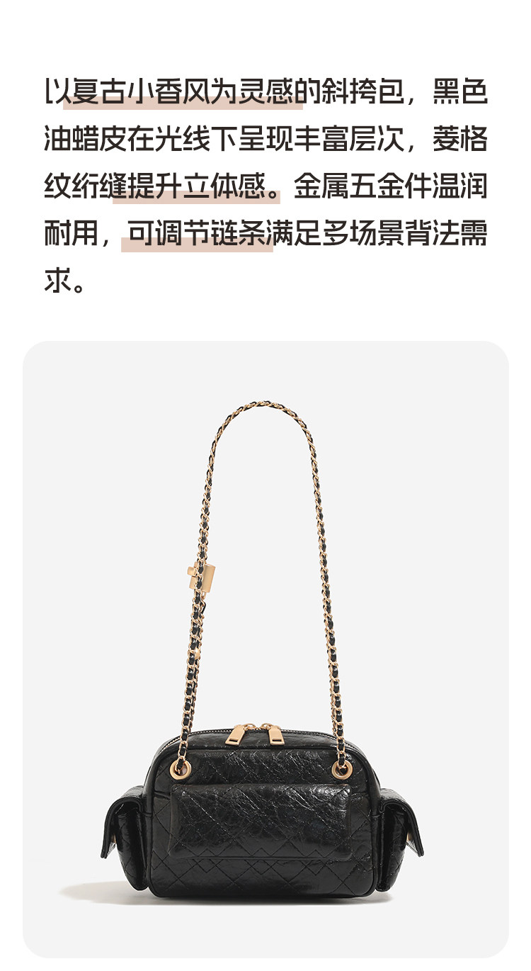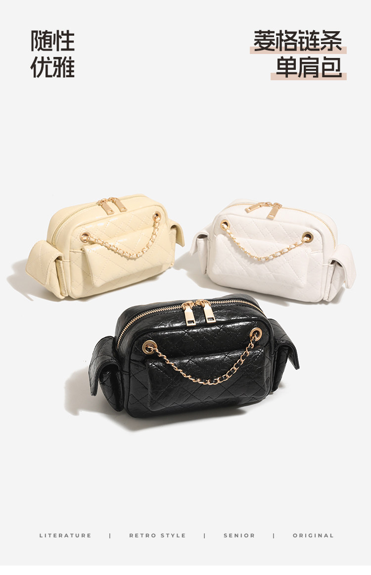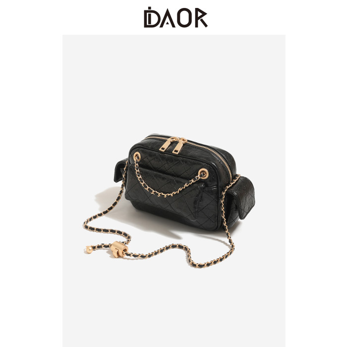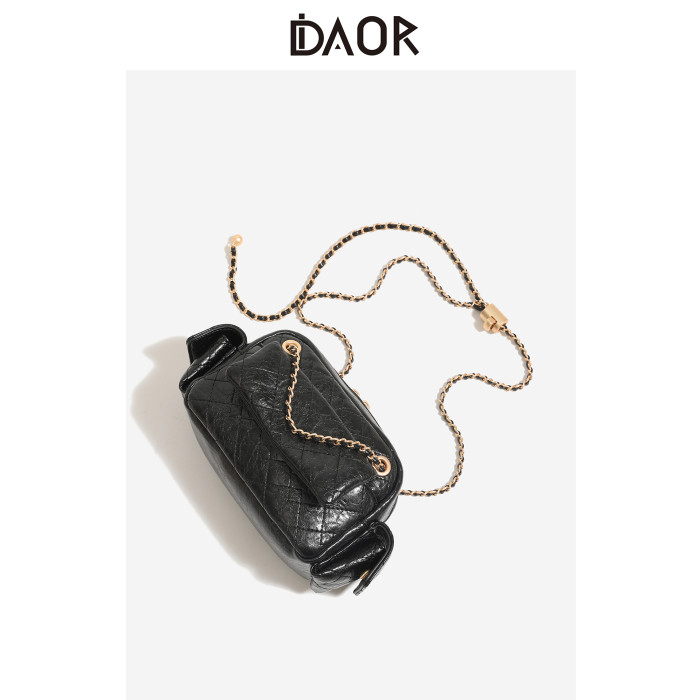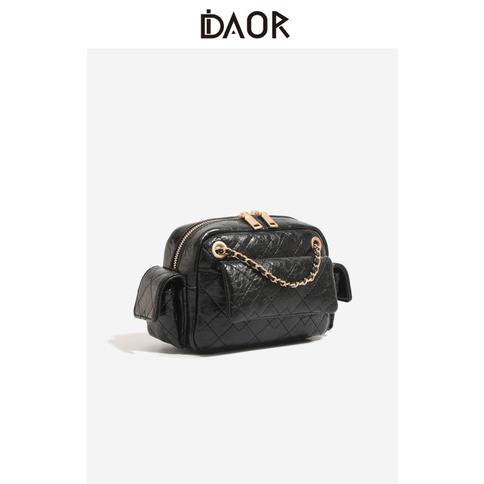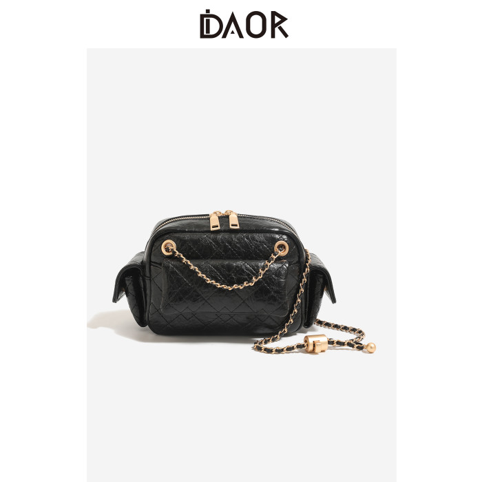 DAOR油蠟牛皮多口袋菱格鏈條腋下包女2025新款辣妹單肩斜背機車包